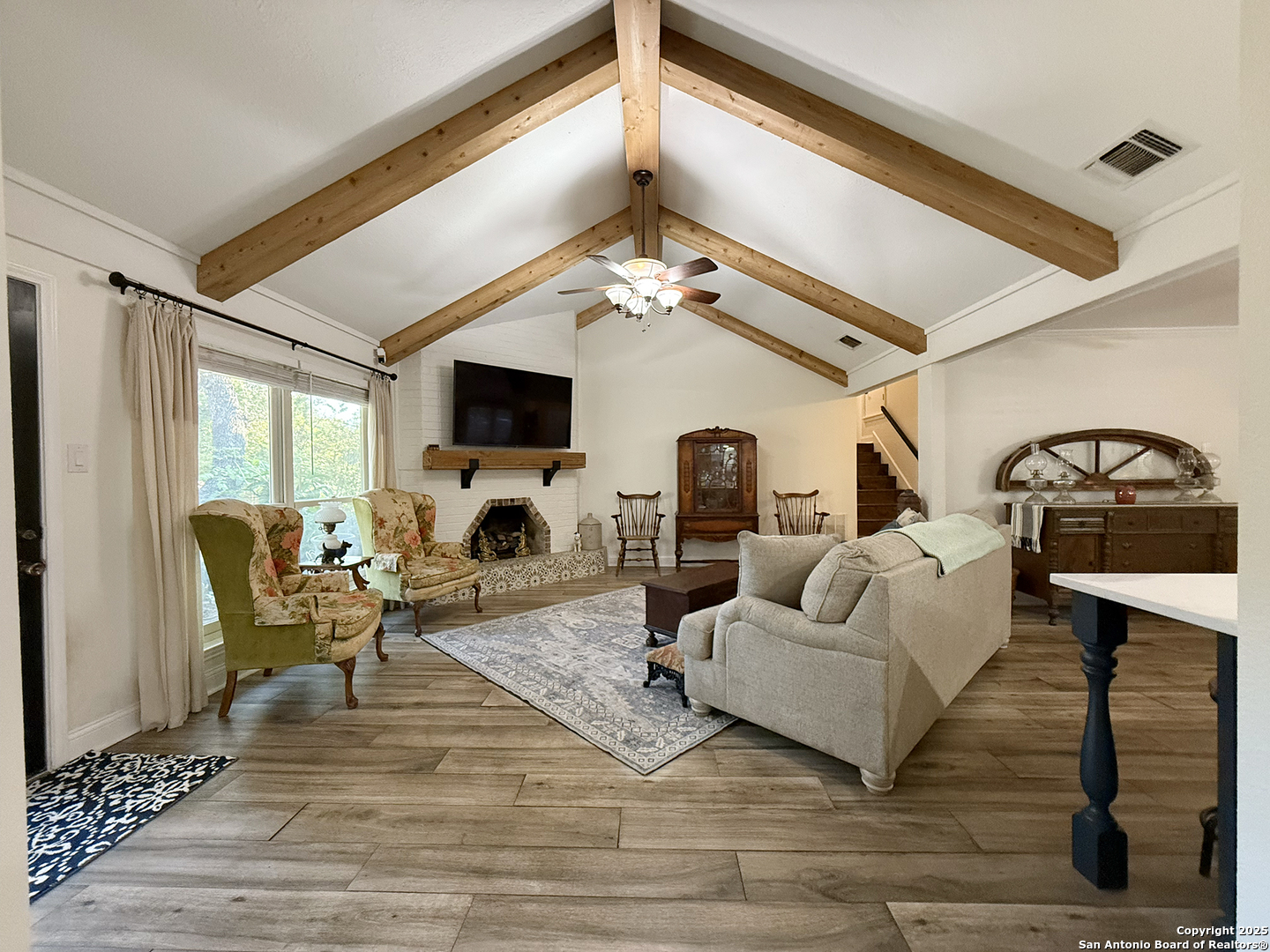 Stunning Remodeled Home in Park Forest Welcome to this beautifully updated, split-level home in the desirable Park Forest neighborhood! This spacious property offers 5 bedrooms, 3.5 bathrooms, and a 2-car garage-with no carpet throughout and a true open-concept floor plan. Seller is offering $5,000 in concessions-use it toward closing costs, rate buy-down, or updates of your choice! Main Highlights Open floor plan with two large living areas and a formal dining room Gas log fireplace with a reclaimed wood mantle from a Hill Country barn Cedarwood beams accent the main living room ceiling Completely remodeled first floor (2022) including a dream kitchen with a 10-ft island, five-burner gas stove, and a coffee bar made from an antique buffet with reclaimed wood open shelving (remains with home) New flooring throughout (2022): wood-look ceramic tile and luxury vinyl plank 200-amp electrical upgrade (2021) with brand-new interior and exterior panels Exterior freshly painted and new light fixtures installed (Aug 2025) Bedrooms & Baths Four spacious bedrooms upstairs, including a primary suite with a sitting area Master bathroom completely remodeled (Aug 2025) with updated fixtures and finishes Total of 3 full bathrooms + 1 half bath Downstairs flex room (approx. 400 sq. ft., not included in listed square footage) with full bath and large closet-ideal as a 5th bedroom, guest suite, family room, or 2nd master Additional Features Smart home tech: Google Nest thermostat, video doorbell, and security cameras (all convey) Fresh interior and exterior paint for a move-in-ready feel Park-like backyard with mature shade trees and patio for relaxing or entertaining Prime Location Nestled in a quiet, established neighborhood just minutes from Wurzbach Parkway, IH-10, Loop 1604, and Loop 410. The Medical Center, shopping, and dining are all less than 10 minutes away. Don't miss this turnkey home combining comfort, craftsmanship, and convenience in one of San Antonio's hidden gems - Park Forest!