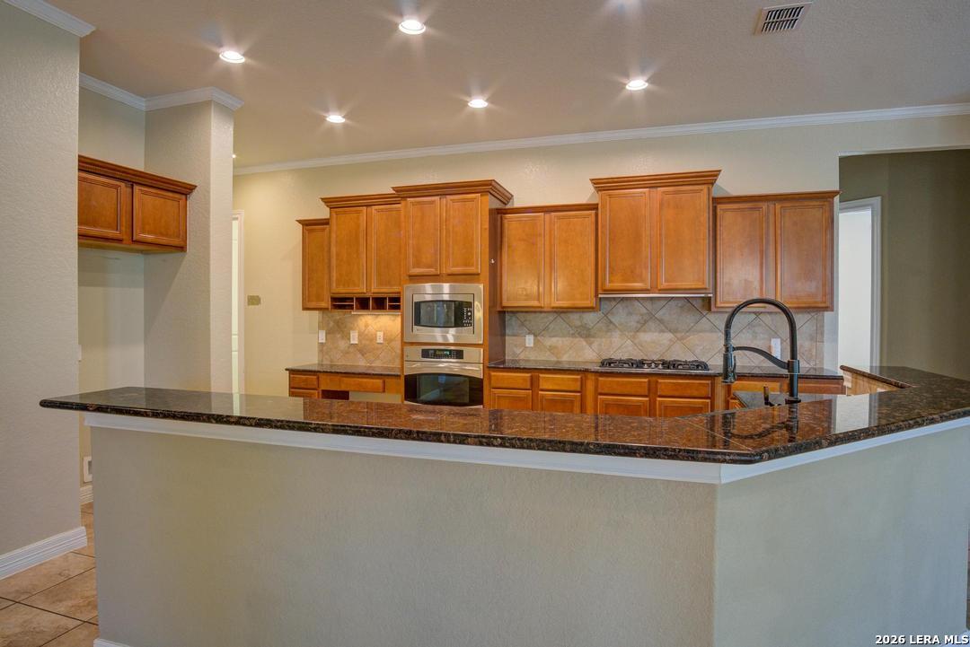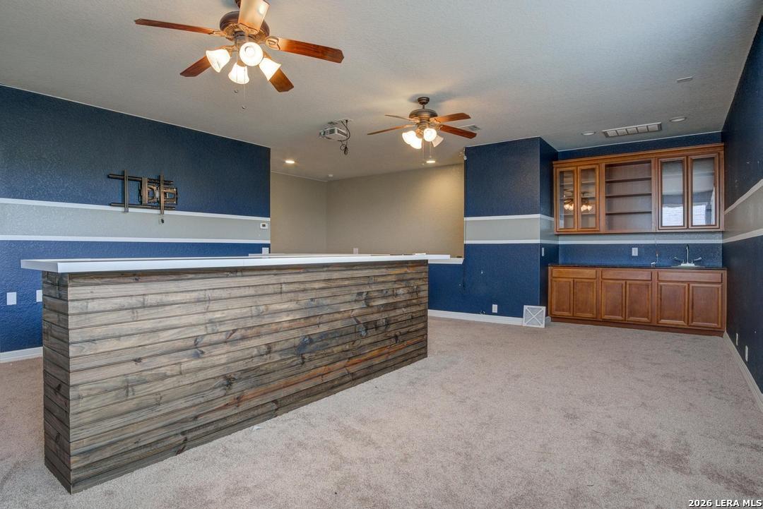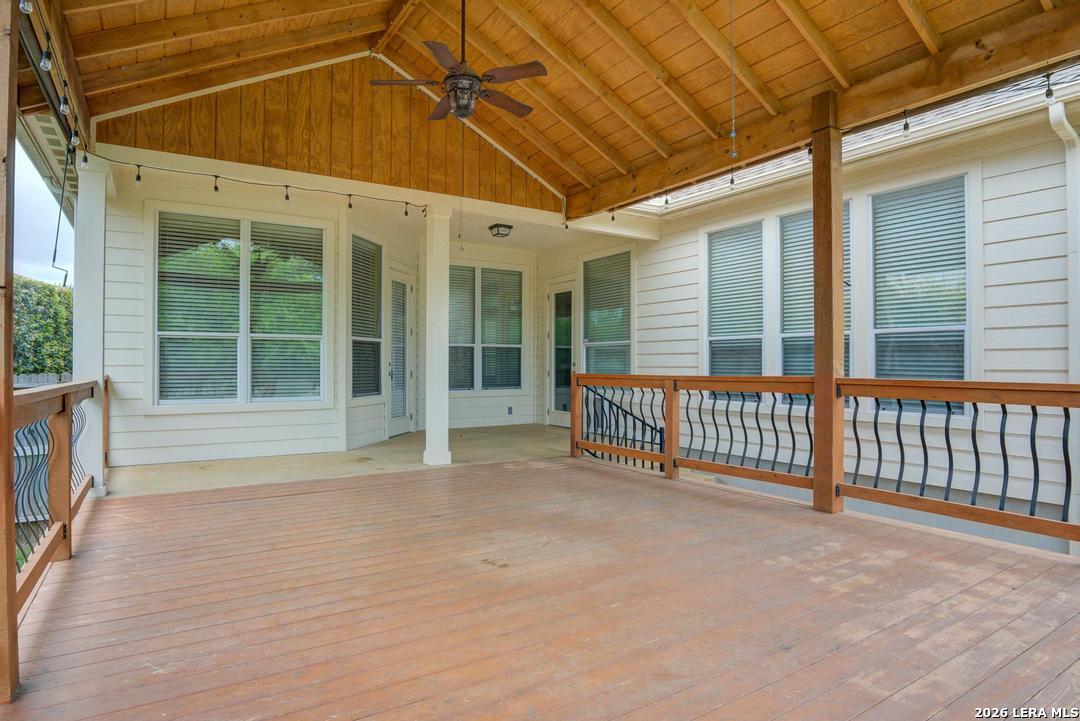 Entertainer's Dream!!! Amazing one story floorplan with an oversized media/game room upstairs along with a 1/2 bath. 4 Bedrooms 3 full baths and 2 1/2 Baths. Custom built covered patio/deck with shade in the evenings perfect for entertaining or just relaxing. Dramatic entrance with high ceilings, a formal living room on one side, and an office on the other. Custom kitchen opens to living area with granite countertops, 42" cabinets and stainless steel appliances. Many extras include 12' ceilings, 8' doors and recessed lights. Plenty of room for all your toys with a 3 car garage and storage shed in the backyard. Gated neighborhood with controlled access.