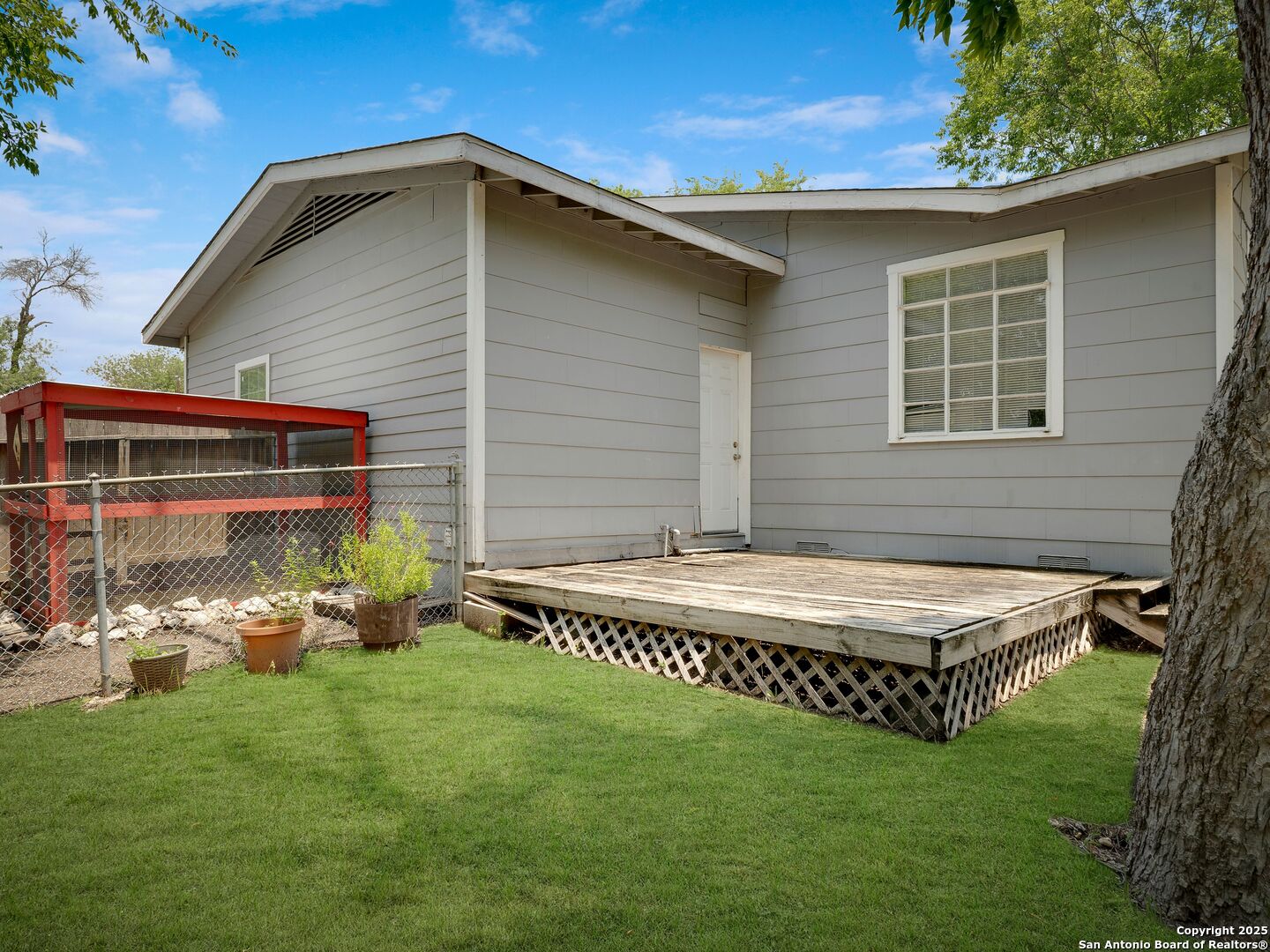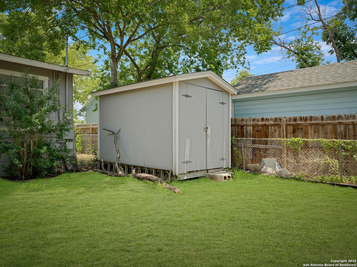 This home has a feeling that cannot be captured in photos - Come experience it in person! Welcome to this delightful gem located in an established San Antonio neighborhood, just blocks away from Dellview City Park and Pool. This beautifully maintained property offers comfort, charm, and flexibility is ideal for a variety of lifestyles! Step inside to discover tile flooring in the kitchen and bathroom, complemented by granite countertops, a travertine backsplash, and rich mahogany kitchen cabinets. The kitchen is fully equipped with stainless steel appliances, making it both stylish and functional for everyday living or entertaining. There is a valuable flex space, perfect for a home office, third bedroom, or second living area. The choice is yours! The home also features an updated HVAC system (2019) for year-round comfort. Outside, enjoy your private patio deck shaded by mature trees, a tranquil butterfly garden, and a dedicated chicken coop for the urban homesteader. A spacious shed offers additional storage, rounding out the home's outdoor perks. Situated centrally with quick access to major highways, this property makes commuting a breeze while keeping you close to shopping, dining, and entertainment options. Don't miss the opportunity to own this versatile and inviting home. This property may be eligible for Down Payment Assistance.