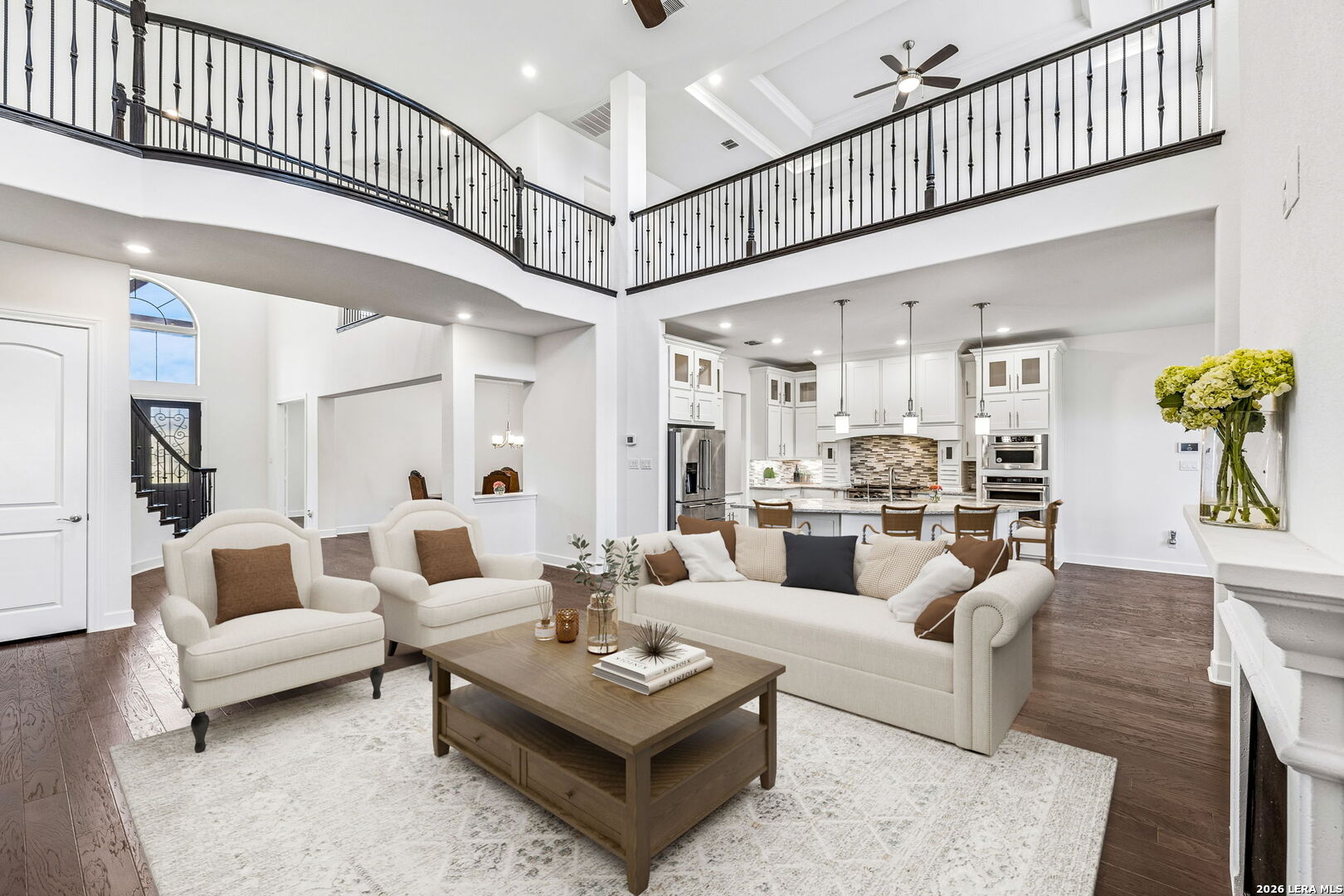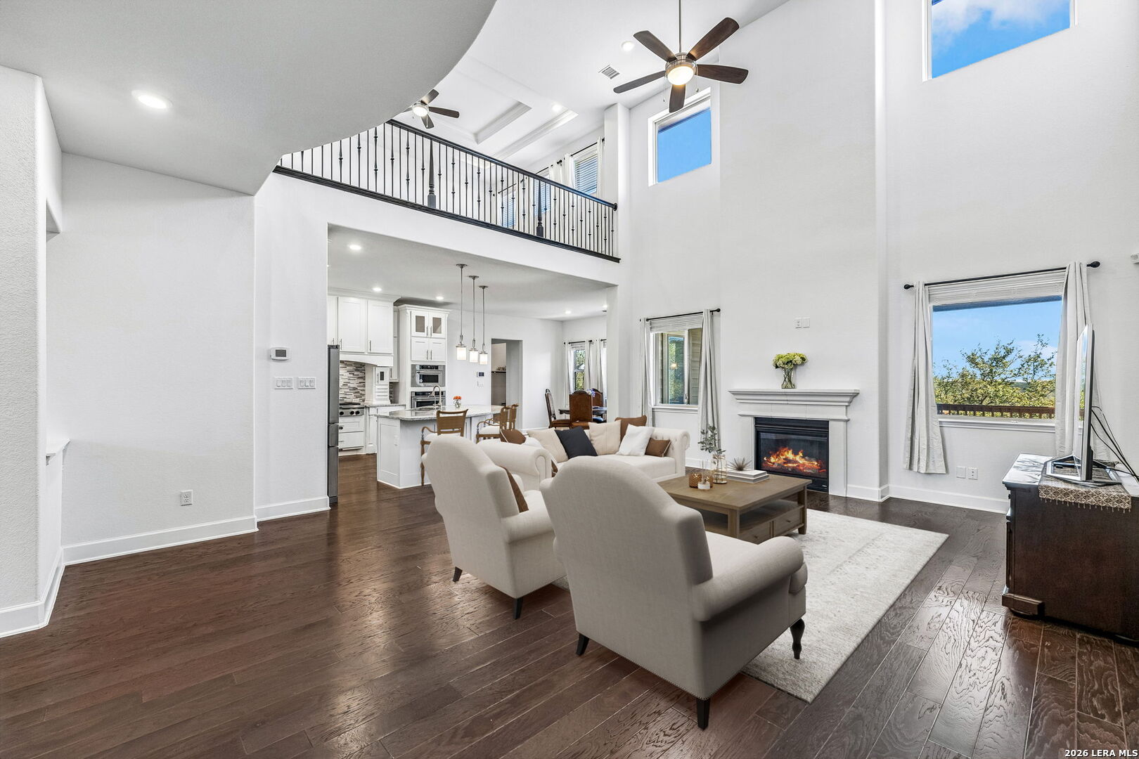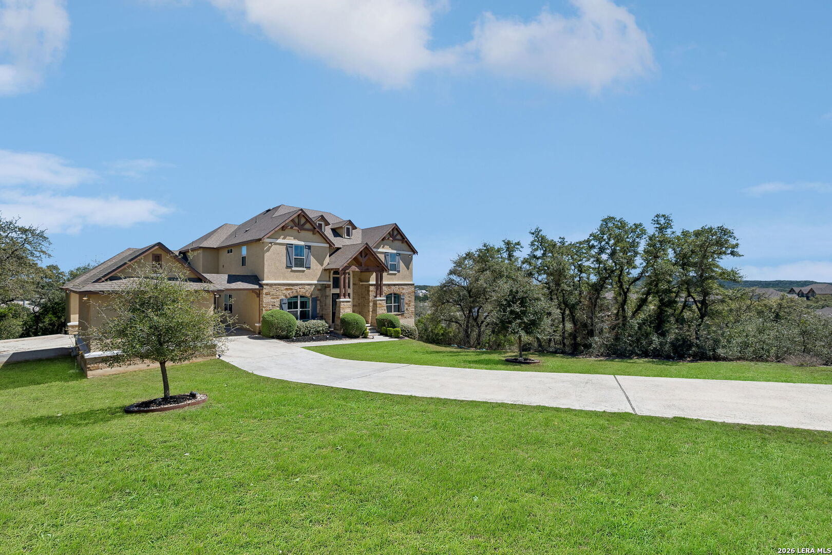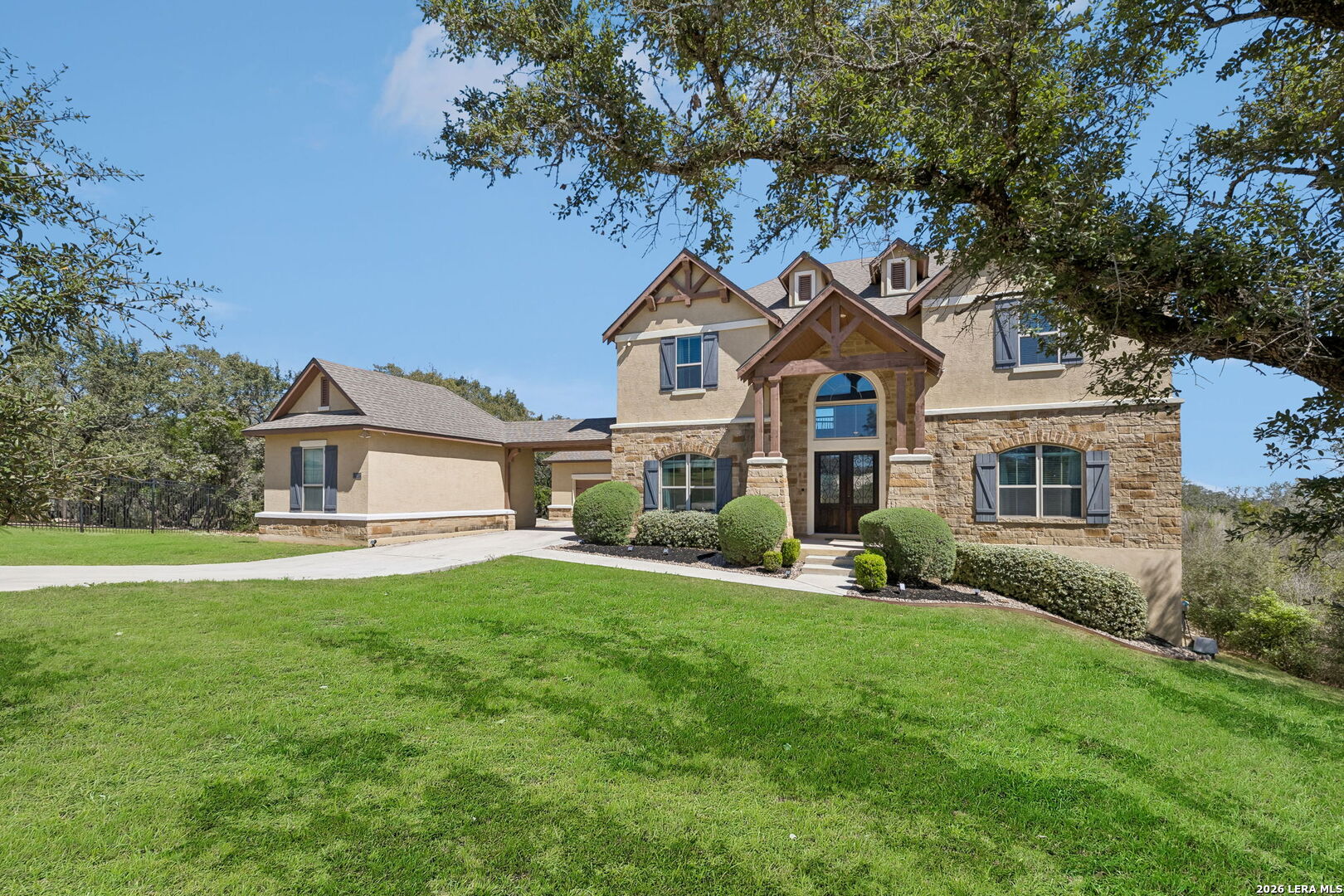 Set along a quiet curve in Helotes Canyon, 12602 Sotol Overlook sits on a full acre where the surrounding Hill Country terrain stretches outward in every direction. Expansive living spaces unfold beneath tall ceilings as large windows pull distant hillsides and wide Texas skies deep into the interiors. The rooms carry an easy sense of scale while remaining comfortable and grounded for daily life. At the center of the home, the kitchen makes a confident statement with custom cabinetry, expansive preparation surfaces, professional-grade appliances, and a substantial island that keeps clear sightlines into the surrounding living areas. Two bedrooms occupy the main level, including the primary suite, while a private study and formal dining room introduce structure for work and entertaining. Additional bedrooms and flexible living spaces are positioned upstairs, allowing the layout to adapt easily for guests or family. Covered patios extend the living spaces outdoors, overlooking the open acreage and rolling Hill Country beyond. A three-car garage completes the property. Within Helotes Canyon, where homes are widely spaced and the terrain remains largely untouched, the setting offers a sense of quiet seclusion while remaining within easy reach of San Antonio.