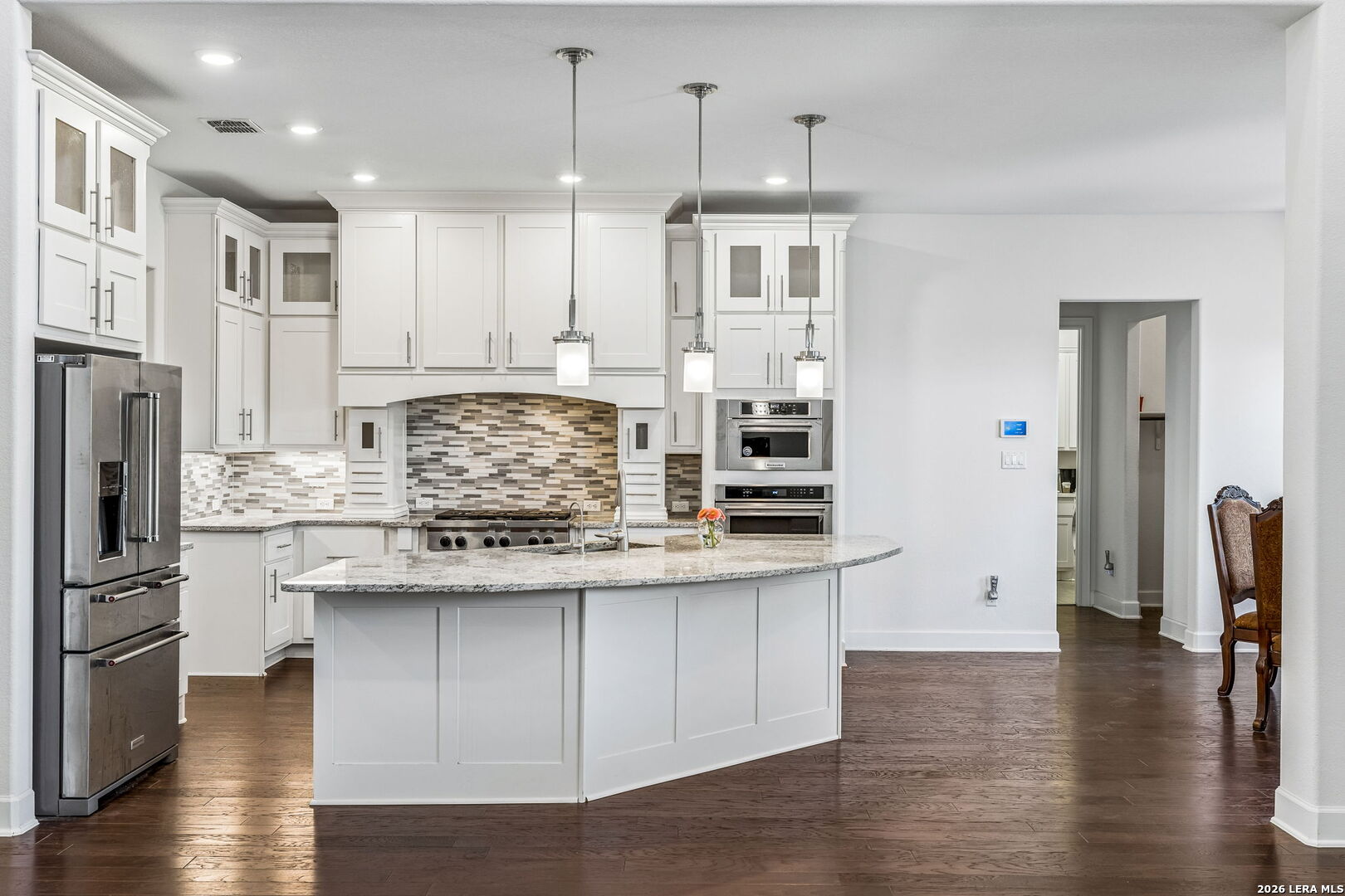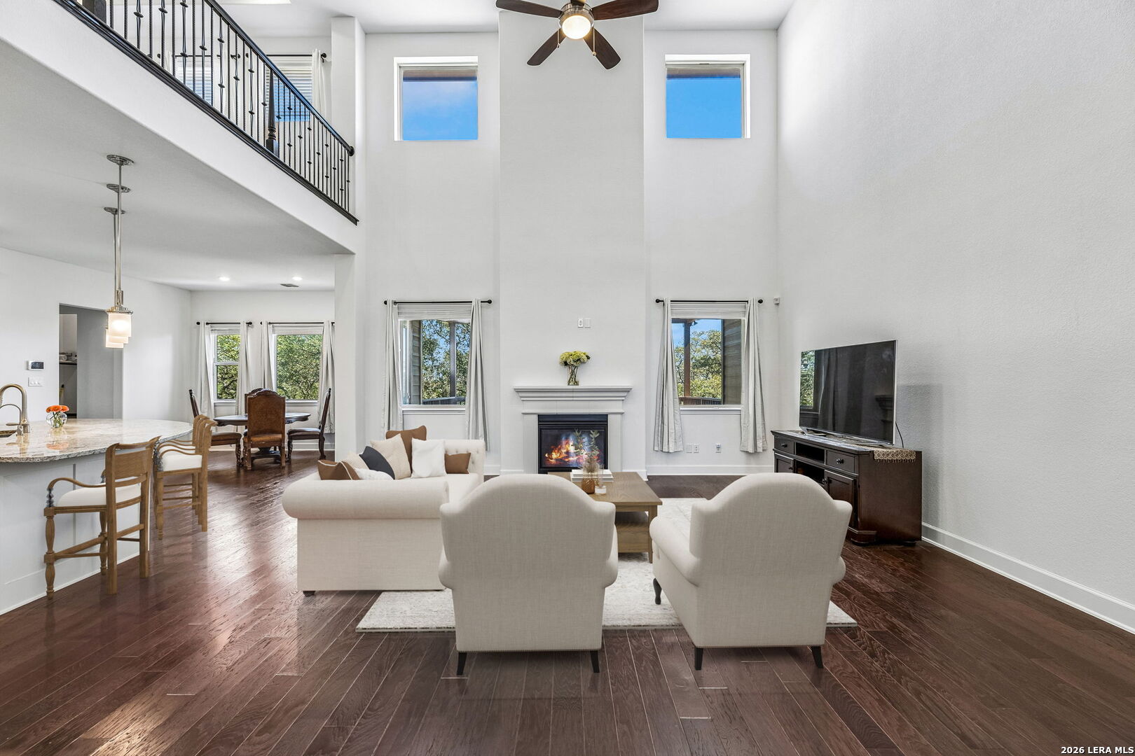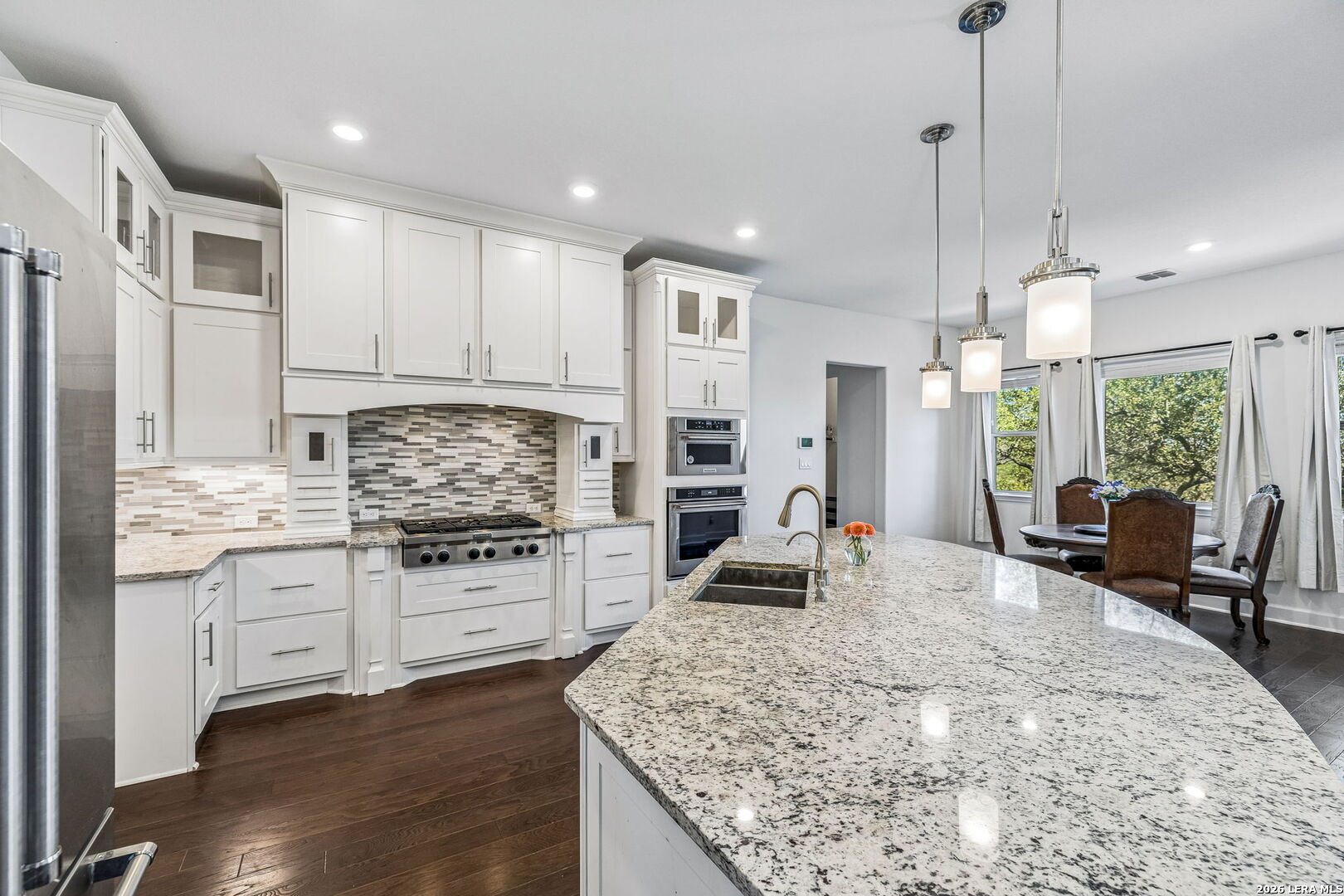 Set along a quiet curve in Helotes Canyon, 12602 Sotol Overlook sits on a full acre where the surrounding Hill Country terrain stretches outward in every direction. Expansive living spaces unfold beneath tall ceilings as large windows pull distant hillsides and wide Texas skies deep into the interiors. The rooms carry an easy sense of scale while remaining comfortable and grounded for daily life. At the center of the home, the kitchen makes a confident statement with custom cabinetry, expansive preparation surfaces, professional-grade appliances, and a substantial island that keeps clear sightlines into the surrounding living areas. Two bedrooms occupy the main level, including the primary suite, while a private study and formal dining room introduce structure for work and entertaining. Additional bedrooms and flexible living spaces are positioned upstairs, allowing the layout to adapt easily for guests or family. Covered patios extend the living spaces outdoors, overlooking the open acreage and rolling Hill Country beyond. A three-car garage completes the property. Within Helotes Canyon, where homes are widely spaced and the terrain remains largely untouched, the setting offers a sense of quiet seclusion while remaining within easy reach of San Antonio.