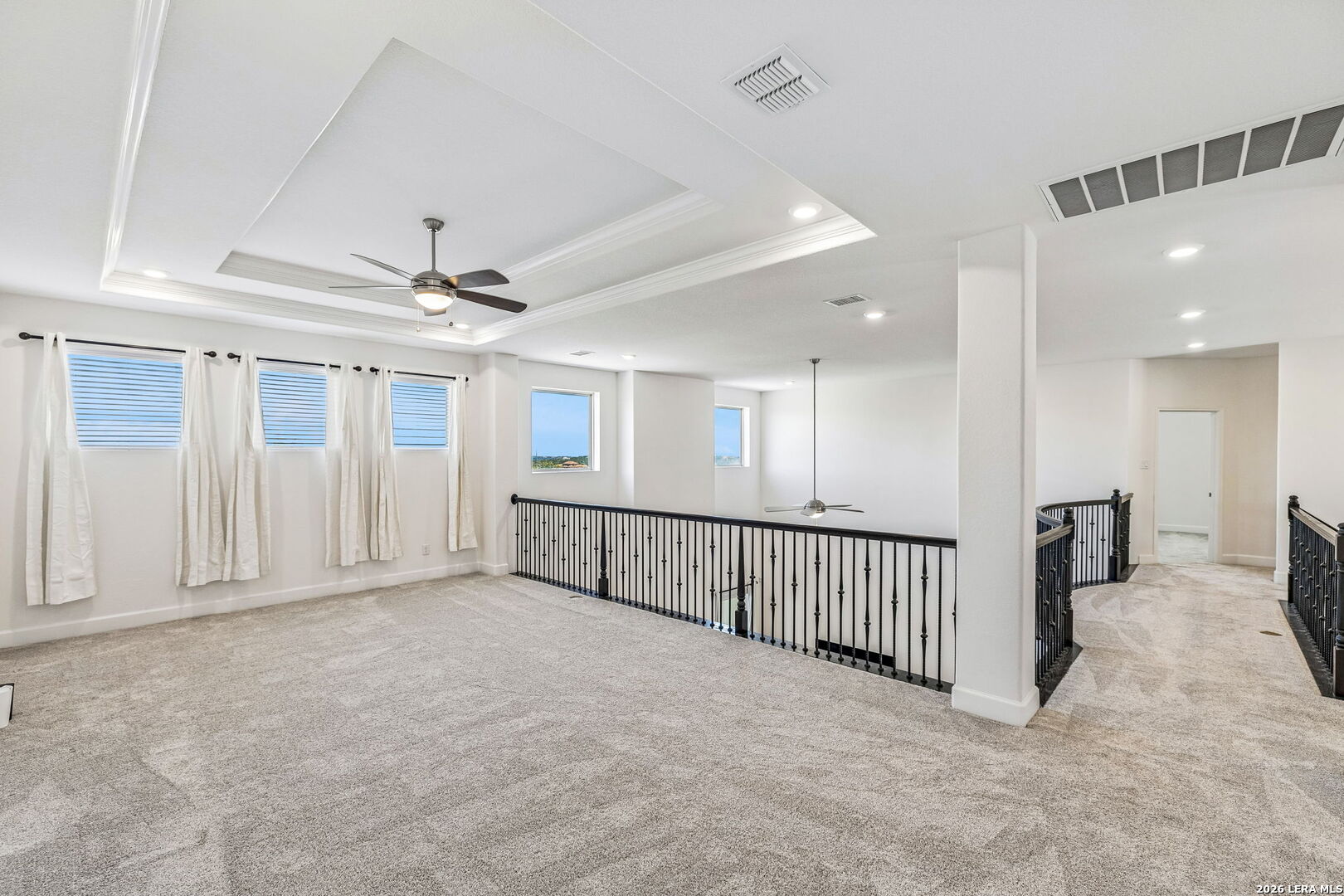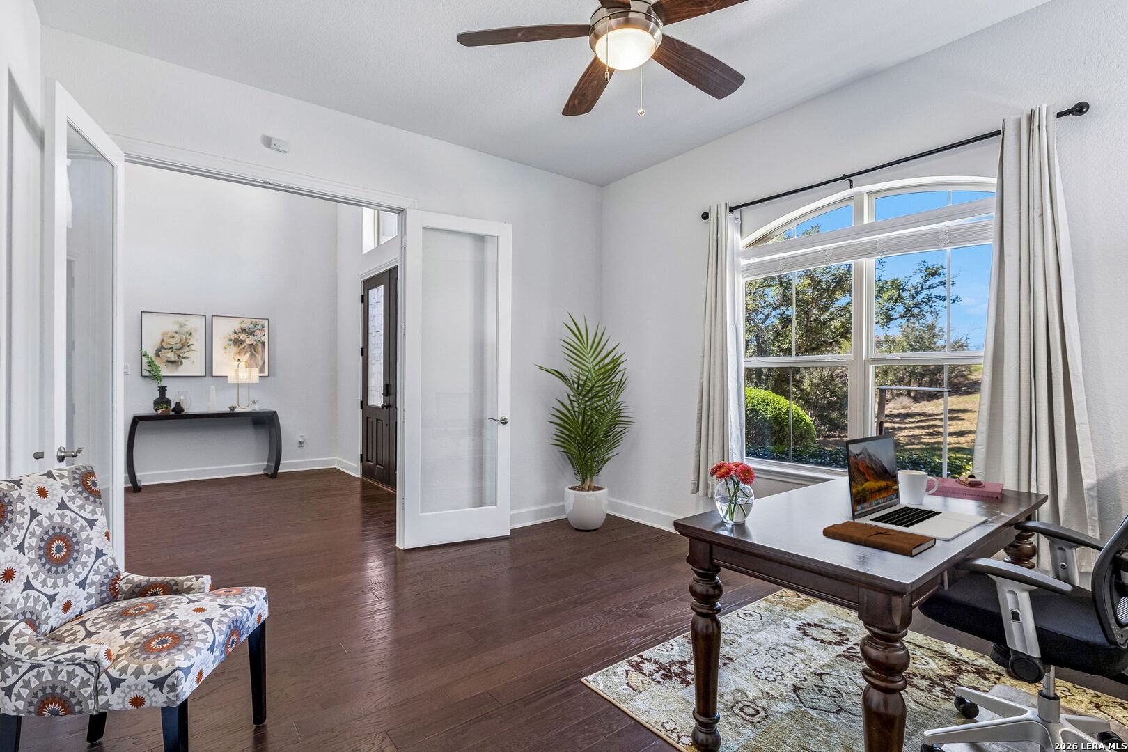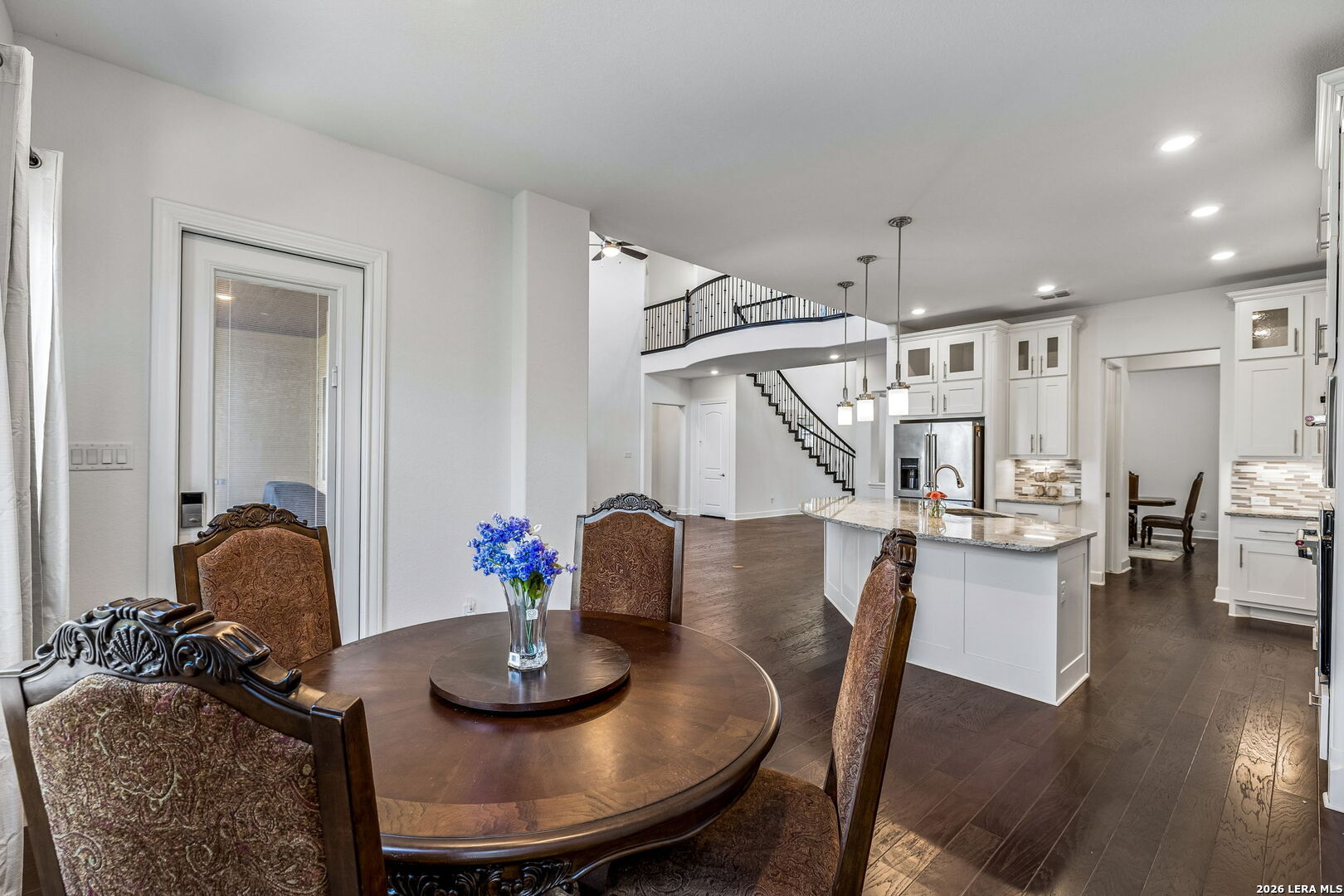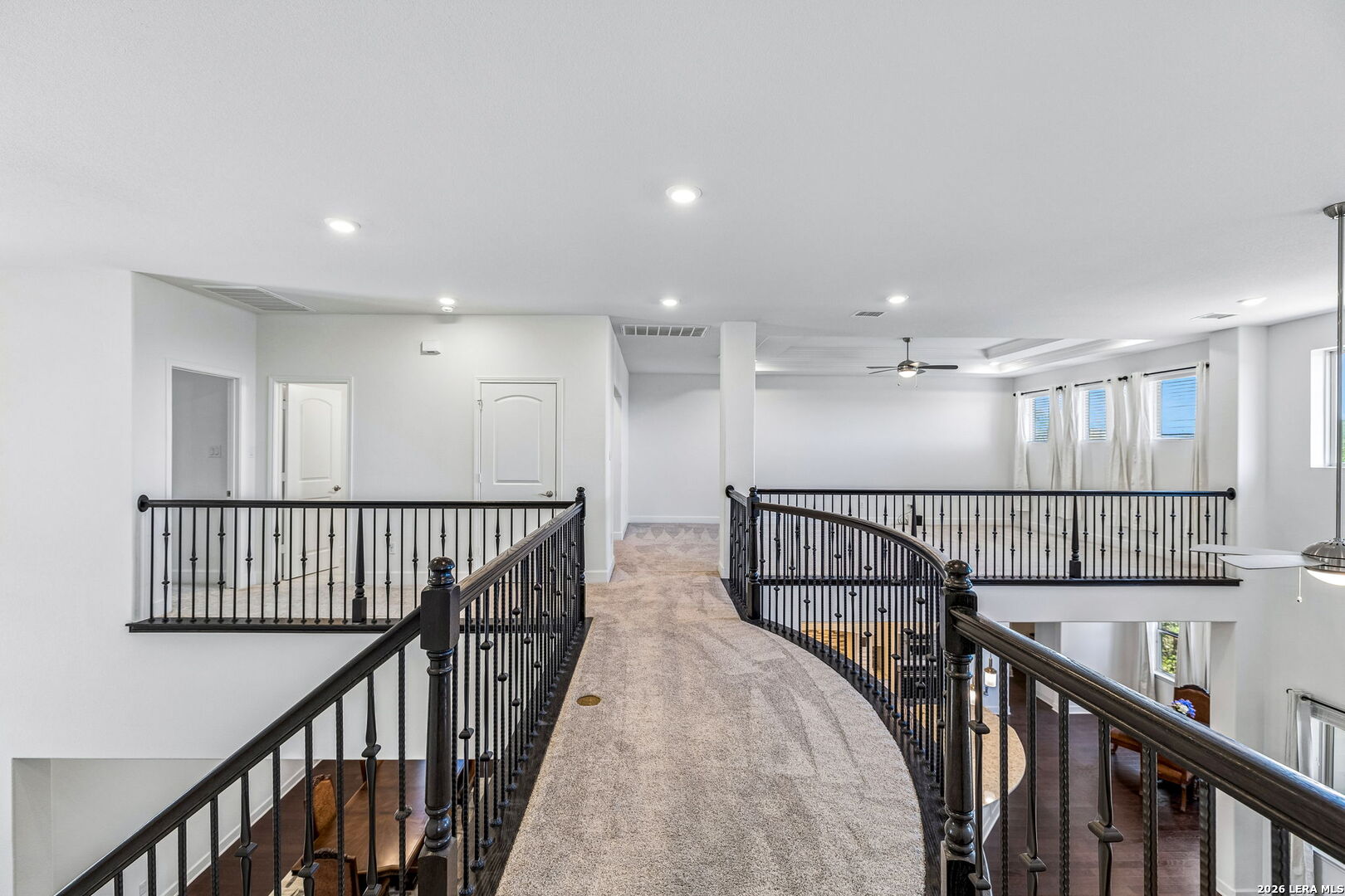 Set along a quiet curve in Helotes Canyon, 12602 Sotol Overlook sits on a full acre where the surrounding Hill Country terrain stretches outward in every direction. Expansive living spaces unfold beneath tall ceilings as large windows pull distant hillsides and wide Texas skies deep into the interiors. The rooms carry an easy sense of scale while remaining comfortable and grounded for daily life. At the center of the home, the kitchen makes a confident statement with custom cabinetry, expansive preparation surfaces, professional-grade appliances, and a substantial island that keeps clear sightlines into the surrounding living areas. Two bedrooms occupy the main level, including the primary suite, while a private study and formal dining room introduce structure for work and entertaining. Additional bedrooms and flexible living spaces are positioned upstairs, allowing the layout to adapt easily for guests or family. Covered patios extend the living spaces outdoors, overlooking the open acreage and rolling Hill Country beyond. A three-car garage completes the property. Within Helotes Canyon, where homes are widely spaced and the terrain remains largely untouched, the setting offers a sense of quiet seclusion while remaining within easy reach of San Antonio.