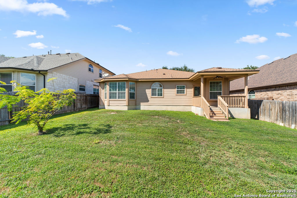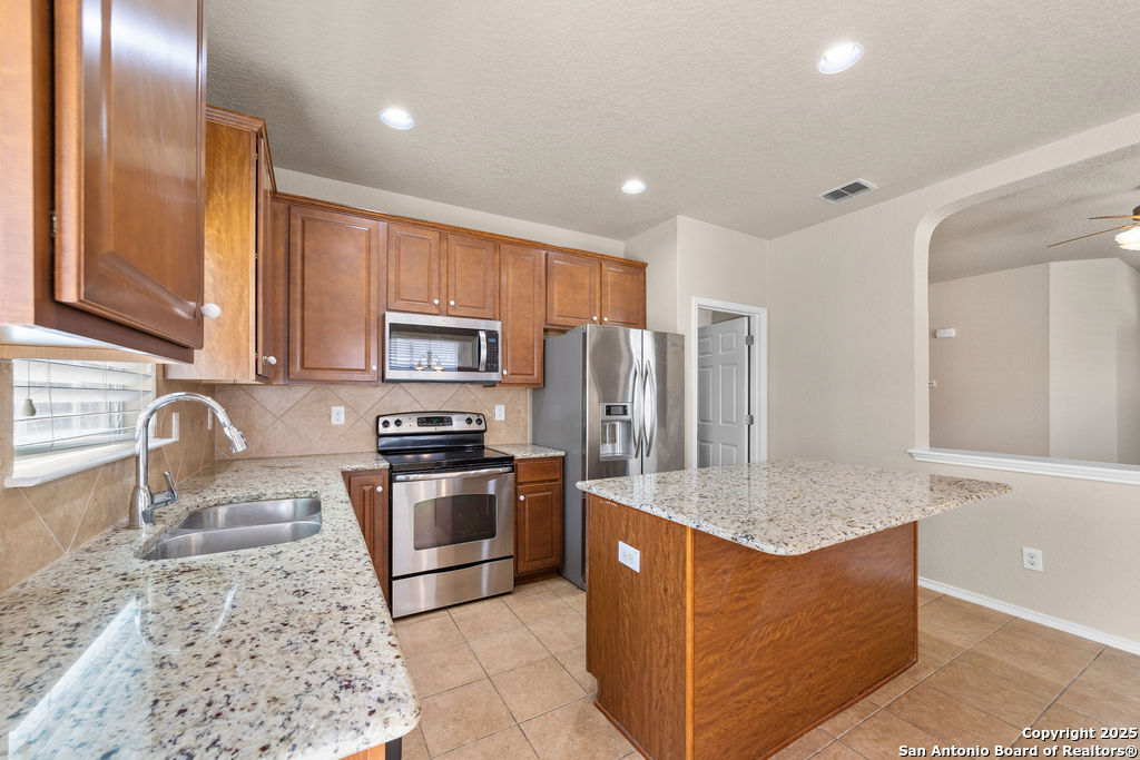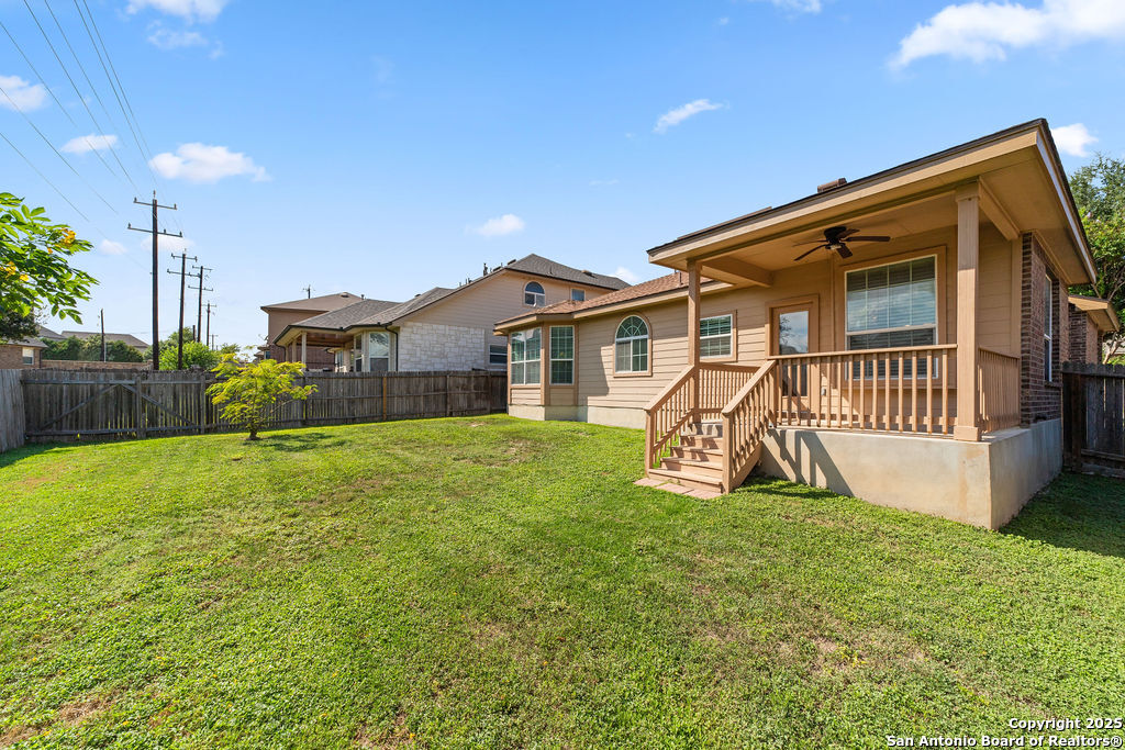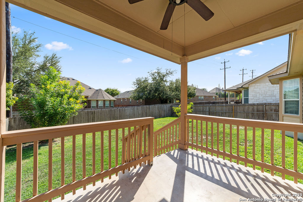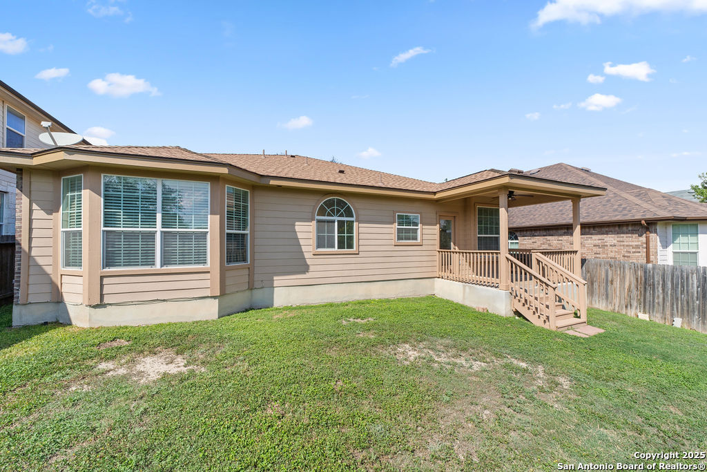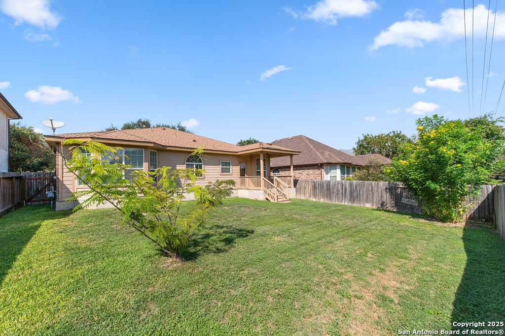 This home is Move In Ready! Fresh Paint! Just installed Landscaping! Recently Installed Microwave! Great Curb Appeal! Covered Patio - A perfect spot to relax and enjoy your favorite beverage or to entertain. Open Floor Plan with 9' Ceilings. Office/Study w/French Doors off of the entrance, SS appliances, 42" Kit Cabinets, Large Pantry, Granite Countertops. Beautiful Bay Windows in Primary Bedroom. Privacy Fenced Yard. Located on a quiet Street yet within close proximity to Entertainment Galore, Santikos, Sea World, Restaurants, Shopping, HEB, Lows, Golfing, Hospitals, Parks and Schools! Neighborhood has a Pool!