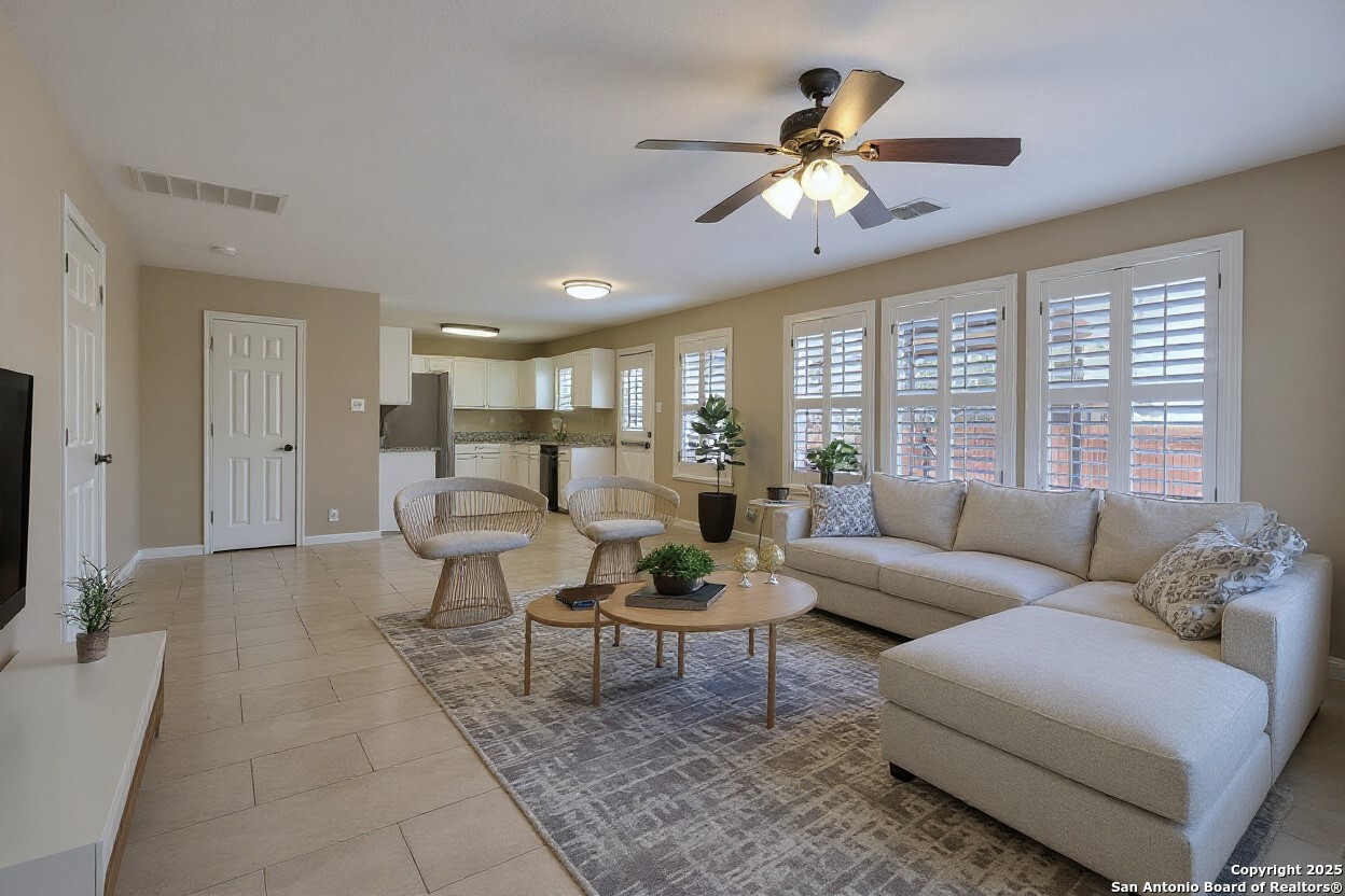 Discover this inviting three-bedroom, two-and-a-half-bath residence, thoughtfully updated and situated in a USDA-eligible area offering zero down payment options. Recent improvements include a new roof, water heater, and HVAC furnace, all approximately one year old. The freshly painted exterior is complemented by classic plantation shutters, enhancing curb appeal. Inside, spacious living areas provide versatility for relaxation and entertaining. The kitchen features stainless steel appliances and granite countertops, blending style with functionality. Upstairs, enjoy all-wood floors and an oversized game room, perfect for gatherings or leisure. The owner's retreat offers a generous layout, a remodeled walk-in shower, a separate garden tub, dual vanities, and ample closet space throughout-plus, there's no carpet anywhere in the home. Secondary bedrooms are comfortably sized with larger closets. Step outside to a backyard designed for entertaining, complete with a durable, all-metal frame extended patio cover. This home combines comfort, convenience, and tasteful upgrades for modern living.