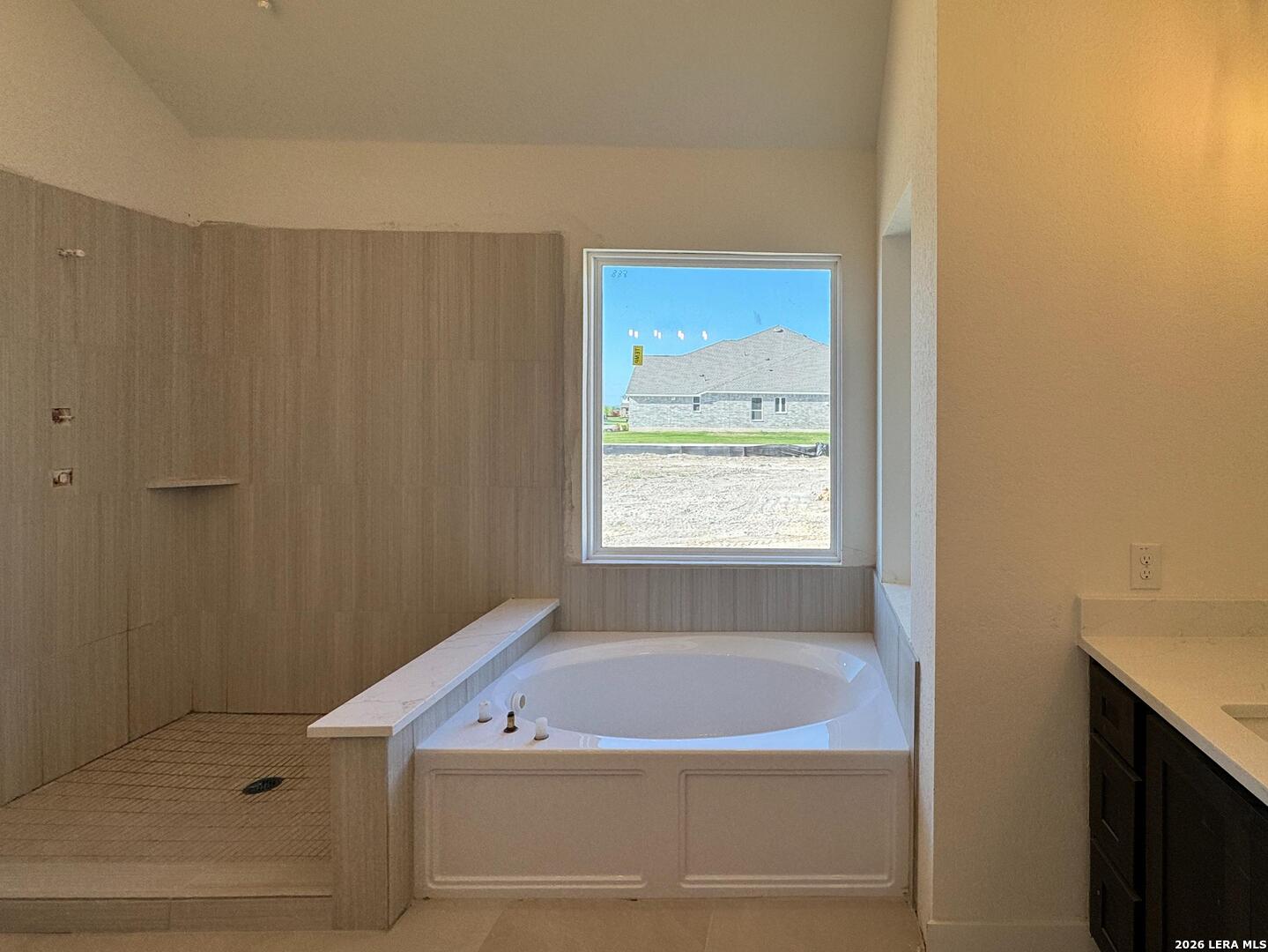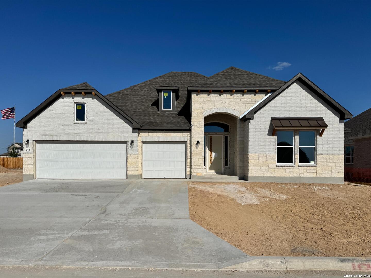 Welcome to the Parker, a beautifully designed two-story home that blends elegant entertaining with everyday functionality. A striking open entrance leads past a formal dining room into a gourmet kitchen featuring built-in appliances, double ovens, gas cooking, a large center island, and a walk-in pantry, all flowing seamlessly into the light-filled family room with views of the covered patio. The main level offers exceptional flexibility with two primary suites downstairs, including a luxurious owner's suite with a spa-inspired bath, oversized mud-set shower, garden tub, double vanities, and dual walk-in closets. Upstairs, a media room and game room provide ample space for relaxation and family time. With a three-car garage, sprinkler system, and thoughtful upgrades throughout, this home delivers comfort, space, and versatility designed to grow with your lifestyle. This home features design selections carefully curated by our studio team. Every finish, from flooring and cabinetry to countertops and details, is chosen to create a cohesive, stylish, and welcoming space that feels beautifully balanced from the moment you step inside. This home is in Megan's Landing, a family-friendly community in the Texas Hill Country. Enjoy nearby shopping, dining, outdoor escapes, and top Medina Valley ISD schools.