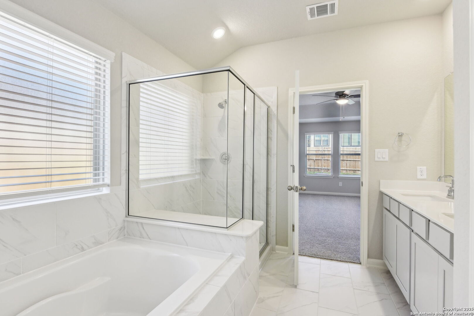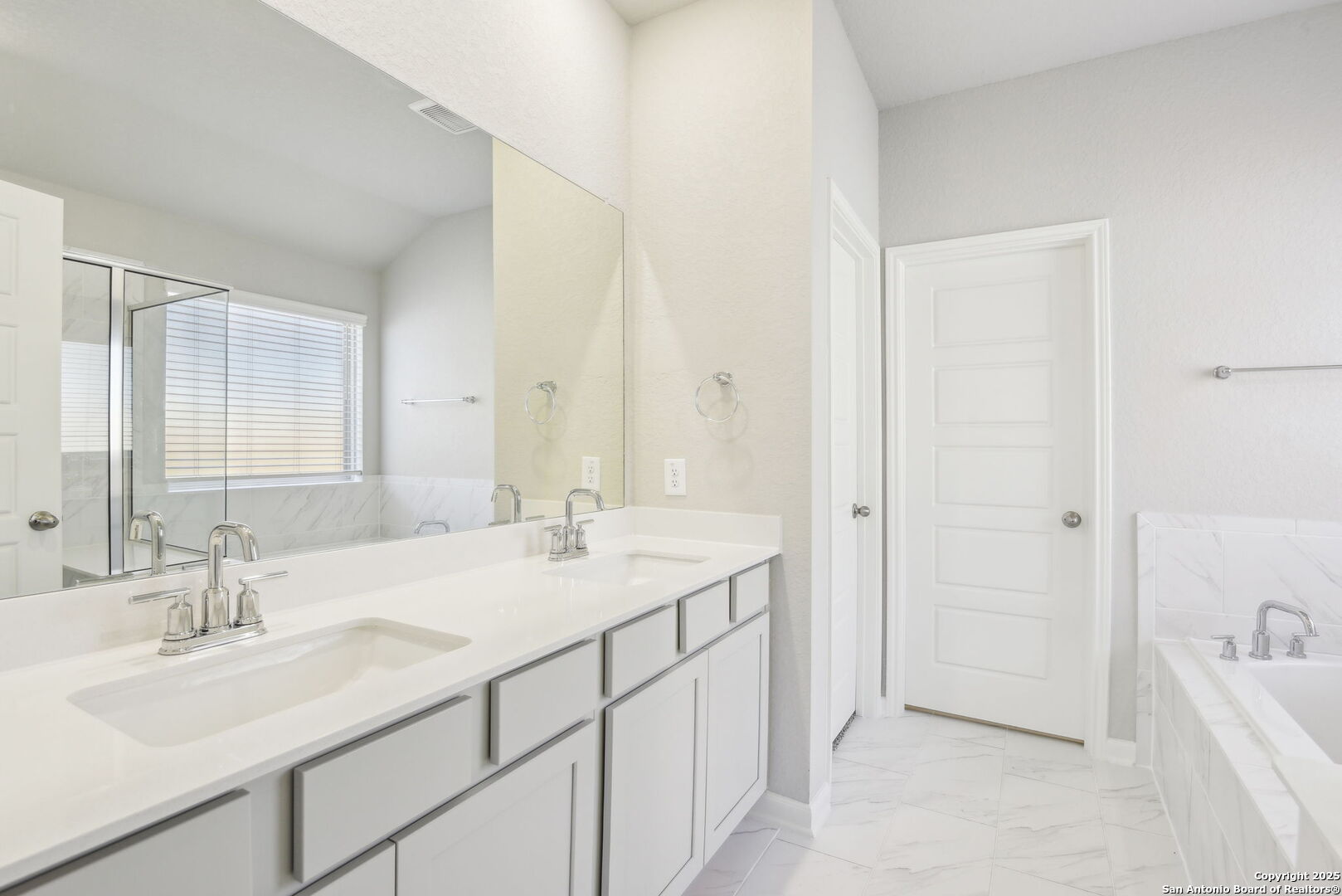 Brand new, energy-efficient home available NOW! Debate what to wear in the Preston's impressive walk-in closet located just off the private primary suite bath. Sizeable secondary bedrooms are ideal for kids or guests. The spacious living area flows seamlessly outdoors to the covered back patio. Starting in the $300s, Arcadia Ridge spans approximately 700 acres in Far Northwest San Antonio. This master-planned community features exceptional amenities, including a community pool, scenic trails, and a playground. Conveniently located near Loop 1604 and US-90, residents enjoy quick access to shopping, dining, and entertainment. The community is served by the highly rated Northside ISD schools, offering an excellent place. Each of our homes is built with innovative, energy-efficient features designed to help you enjoy more savings, better health, real comfort and peace of mind.