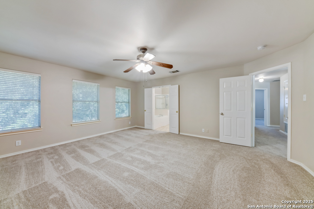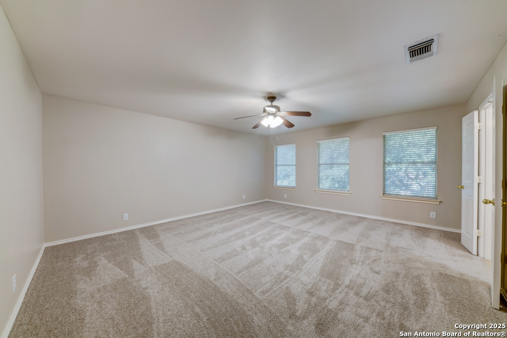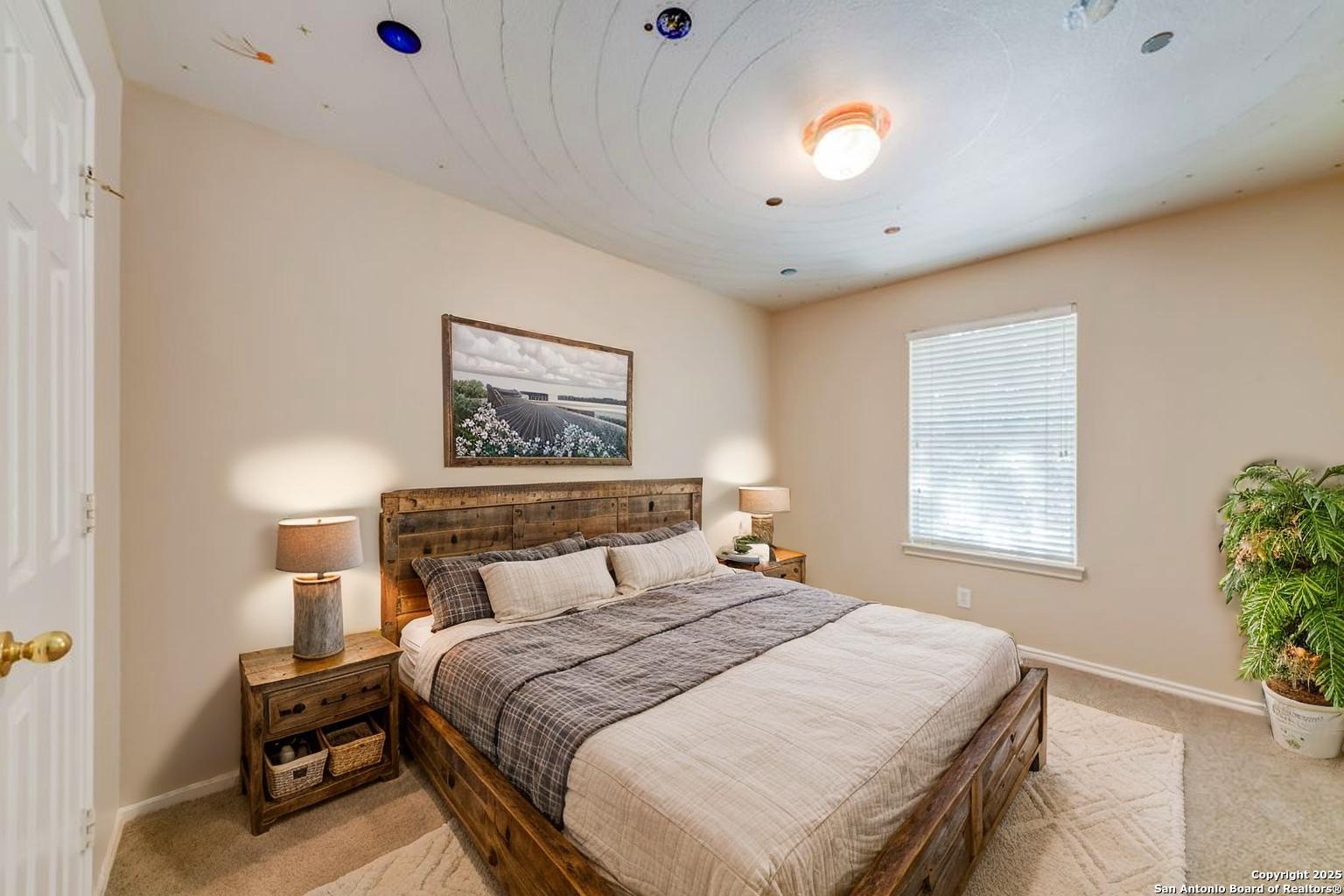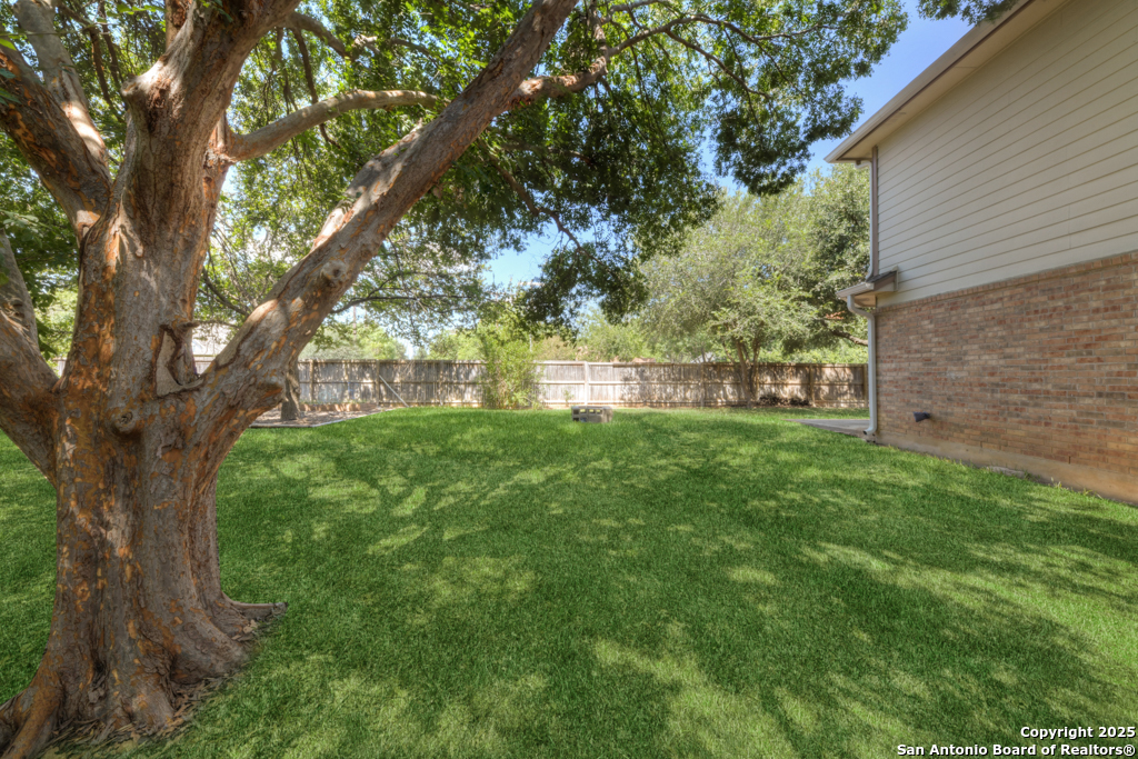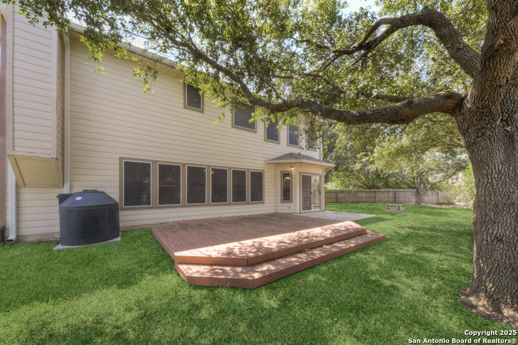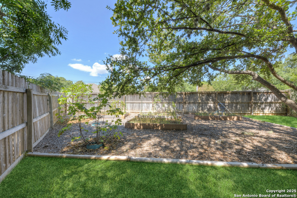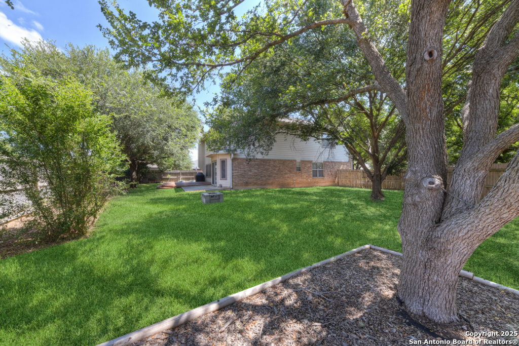Stop By Open House Saturday 11/8 1-4pm or Sunday 11/9 1-3pm! Located in the desirable gated community of Cedar Springs! Oversized cul-de-sac lot with a wide, shady backyard, deck, gardens, sprinkler system, and a rainwater catchment system. Double-gated backyard access makes it easy to reach the main street-perfect for convenience and flexibility. ~ Inside, you'll find fresh updates including August 2025 interior paint, carpet, and roof-a blank canvas ready for your personal style! The soaring 2-story entry and foyer lead to 3 living areas and 2 dining spaces, offering plenty of room to spread out. The bright, open kitchen features white painted cabinets, granite countertops, deep sinks, a planning desk, and generous counter space. The spacious family room boasts a fireplace with mantle, solar screens, and plenty of natural light. ~ The primary suite is generously sized and includes a relaxing ensuite bath with a garden tub, separate shower, double vanity, linen closet, and a large walk-in closet. Additional highlights include painted garage floors, a ceiling-mounted storage system, and thoughtful design touches throughout. ~ Step outside the back gate, and kids can head straight to the bus stop or stroll to the community pool! Cedar Springs offers resort-style amenities including an adult pool, children's pool, tennis, pickleball, basketball, and volleyball courts-all with super reasonable HOA dues. Served by highly rated public schools, this home checks all the boxes for comfort, location, and Helotes lifestyle.