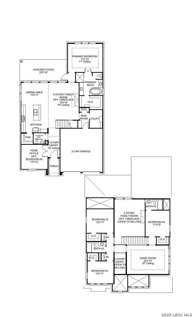 Step off the front porch into the two-story entryway. French doors open into the home office at the front of the house. Past the staircase you enter into the open living areas. The kitchen features an island with built-in seating, walk-in corner pantry, a 5-burner gas cooktop, and an adjacent dining room with ample natural light. The family room boasts a wall of windows, wood mantel fireplace, and 19-foot ceiling. The primary bedroom has coffered ceilings and three large windows. French doors open into the primary bathroom which showcases a glass-enclosed shower, dual vanities, a garden tub, and an oversized walk-in closet. Upstairs on the second floor you are greeted by a large game room with a wall of windows. A private guest suite with a full bathroom is off of the staircase. Secondary bedrooms featuring walk-in closets, separate linen closets, and a shared bathroom complete this floor. Covered backyard patio. Mud room and utility room are off of the two-car garage.