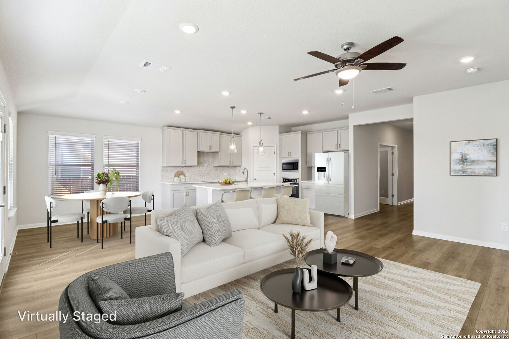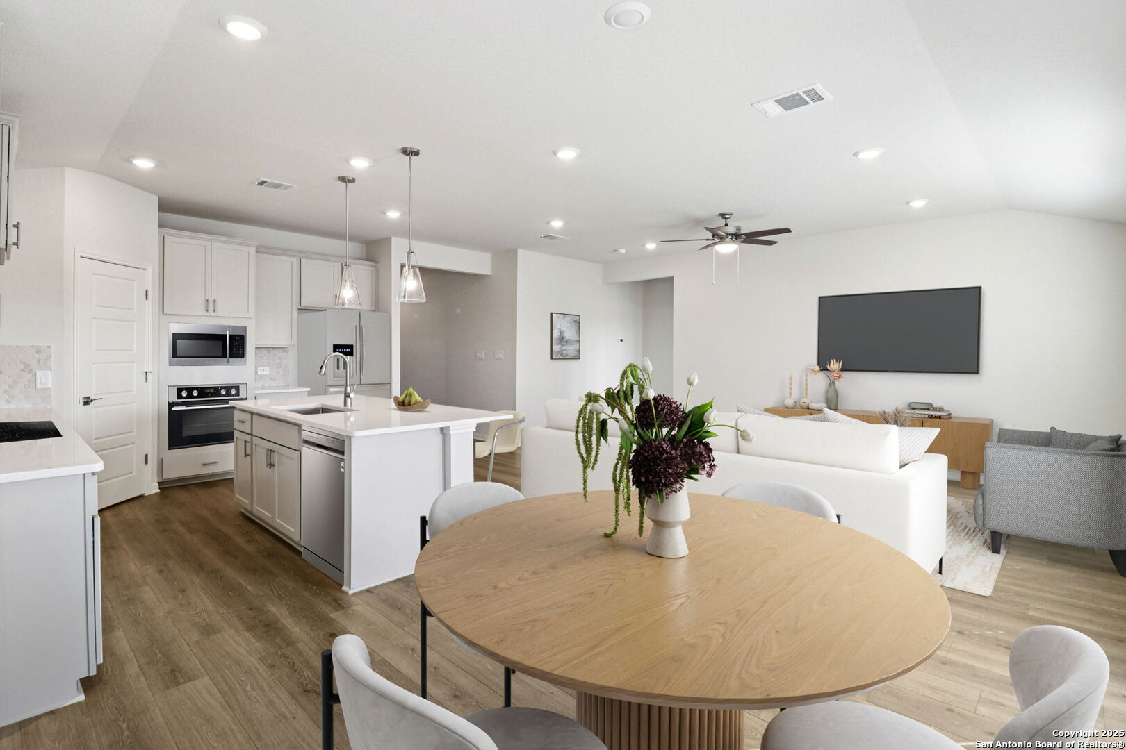 Brand new, energy-efficient home available by Sep 2025! Sip your morning coffee at the Henderson's convenient kitchen island overlooking the dining and living rooms. In the primary suite, elegant sloped ceilings complement the sizeable space, including ensuite with dual sinks and large walk-in closet. Starting in the $300s, Arcadia Ridge spans approximately 700 acres in Far Northwest San Antonio. This master-planned community features exceptional amenities, including a community pool, scenic trails, and a playground. Conveniently located near Loop 1604 and US-90, residents enjoy quick access to shopping, dining, and entertainment. The community is served by the highly rated Northside ISD schools. Each of our homes is built with innovative, energy-efficient features designed to help you enjoy more savings, better health, real comfort and peace of mind.
