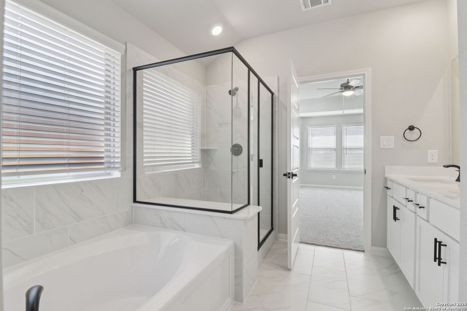 Brand new, energy-efficient home available by Oct 2025! Debate what to wear in the Preston's impressive walk-in closet located just off the private primary suite bath. Sizeable secondary bedrooms are ideal for kids or guests. The spacious living area flows seamlessly outdoors to the covered back patio. Starting in the $300s, Arcadia Ridge spans approximately 700 acres in Far Northwest San Antonio. This master-planned community features exceptional amenities, including a community pool, scenic trails, and a playground. Conveniently located near Loop 1604 and US-90, residents enjoy quick access to shopping, dining, and entertainment. The community is served by the highly rated Northside ISD schools. Each of our homes is built with innovative, energy-efficient features designed to help you enjoy more savings, better health, real comfort and peace of mind.