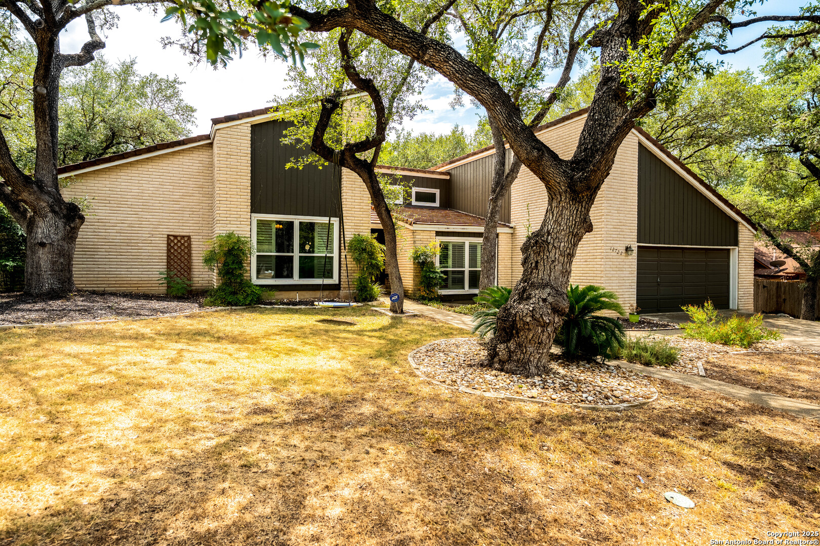 Beautiful home sits on .29 acres with gorgeous mature oak trees. The home been updated over the years and features 3 bedroom, 2 bath, an oversized 2-car garage, and a pool. There are two eating areas with a huge picture window that overlooks a covered patio and the pool. Welcoming entry steps down to a large family room with vaulted ceilings, and huge picture windows on either side of the fireplace featuring a black, walnut mantle hearth. Adjacent the living room and kitchen is a large, separate dining room. The kitchen offers double ovens, and granite countertops with an adjoining breakfast area with cabinetry above and below with a long countertop for buffets. Huge windows on each side of brick FP w/ hearth & black walnut mantle, recess lighting, vaulted ceiling & ample wall space in large family room. The primary bedroom features large double window that overlook the parklike backyard. The bath area is like walking into a spa, with slate on the walls & floor, walk-in glass shower & garden tub.
