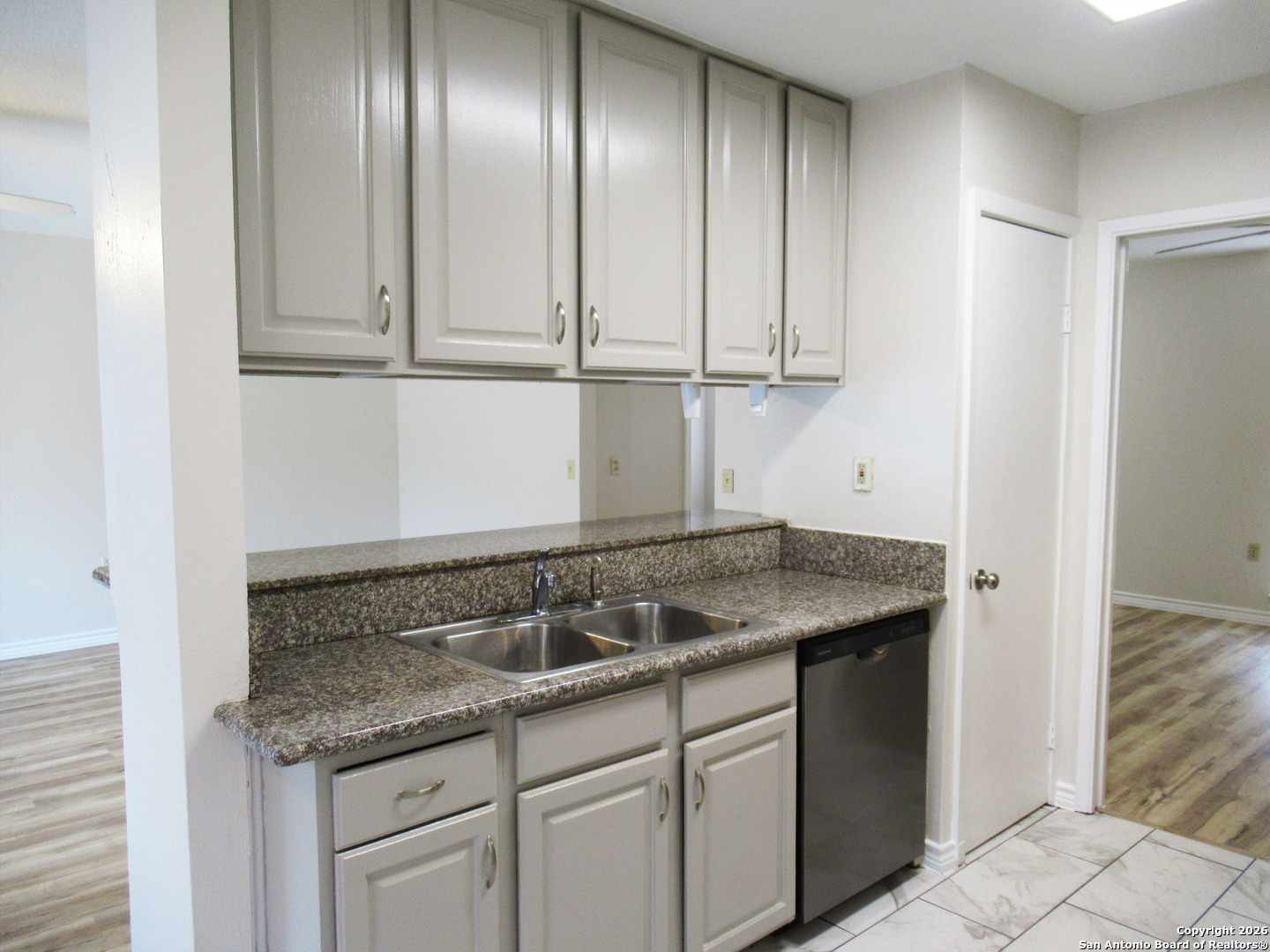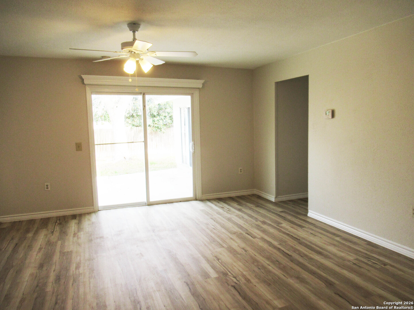 SELLER FINANCED Remodeled home with 5 bedrooms & 2 baths! Brand new wood & tile flooring (No carpet!). Freshly painted in designer colors inside & out with versatile layout. Brand new appliances, Custom cabinets, Granite countertops, Tile bath enclosures. Vaulted master bedroom ceiling with opening to super large patio. Backyard has a privacy fence, and mature trees in an established neighborhood. 1688 sq. ft. Located near IH35, Loop 1604, Loop 410 & convenient for shopping.