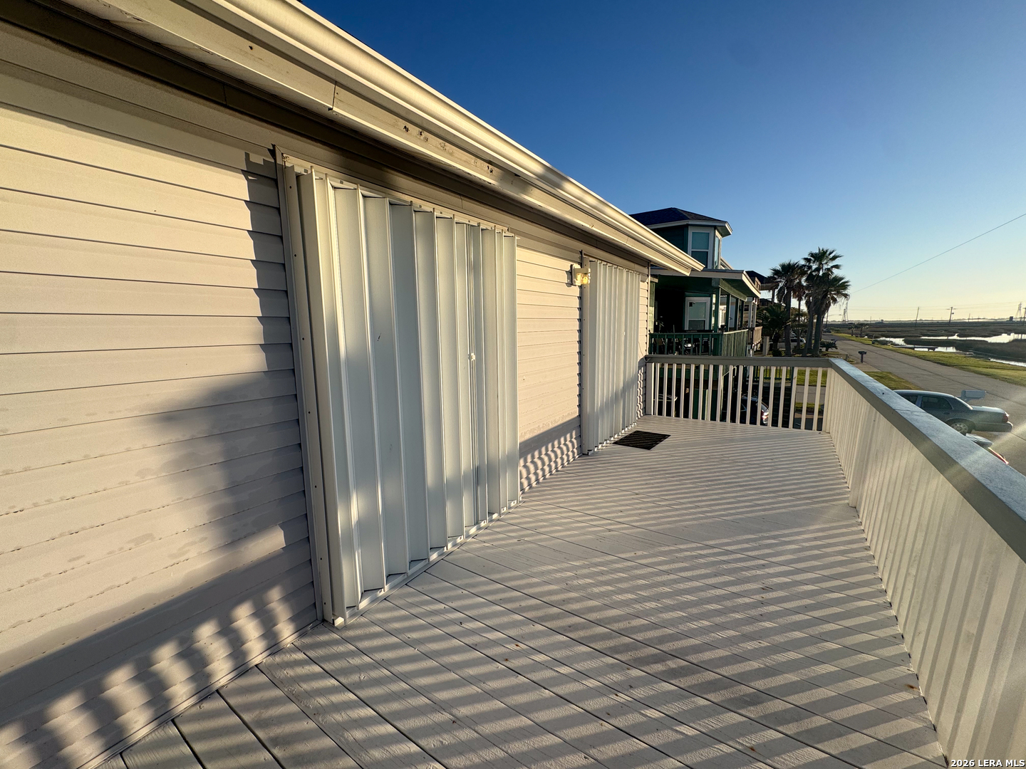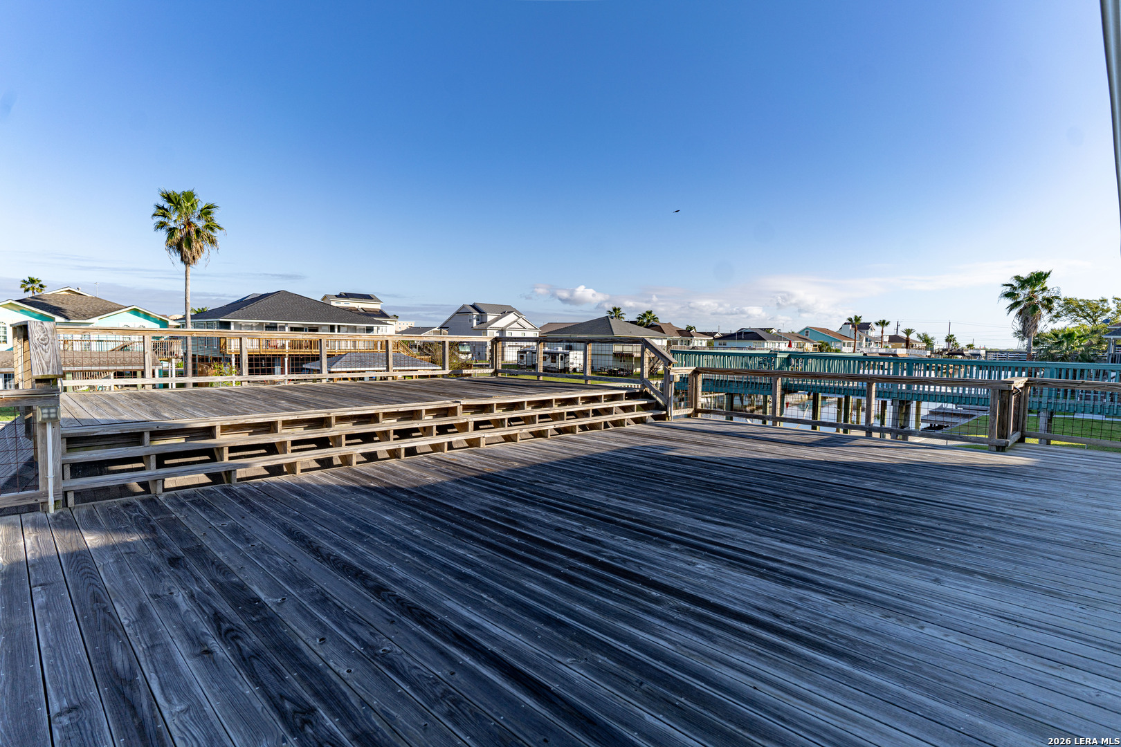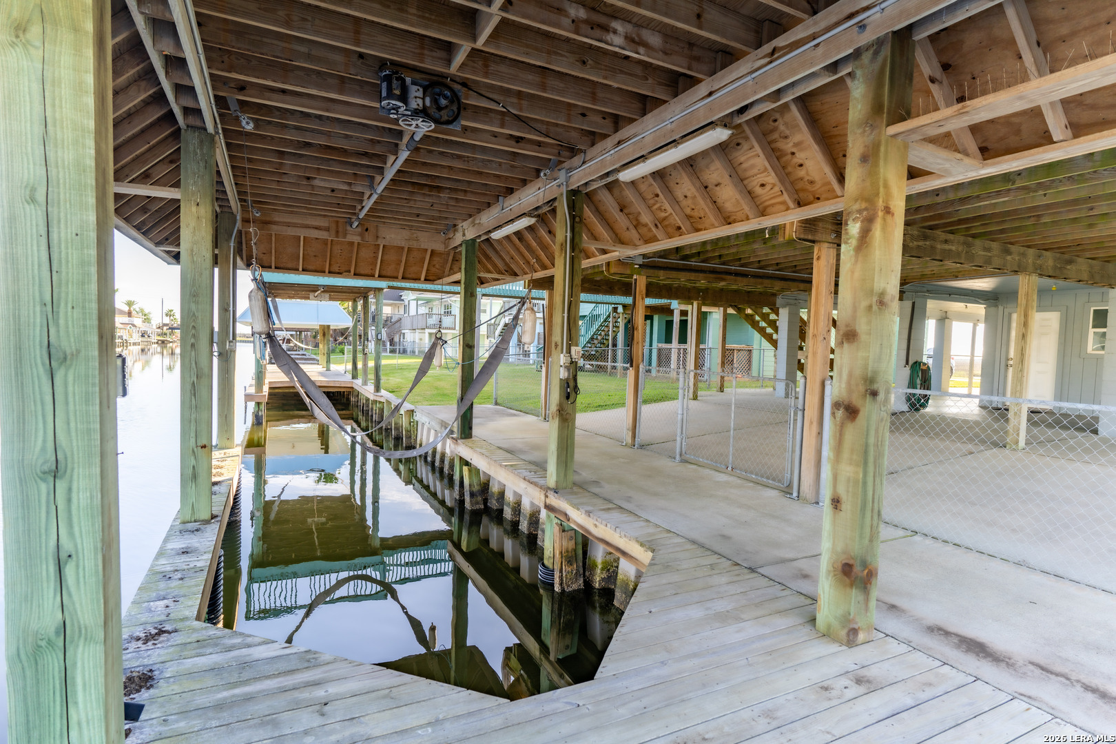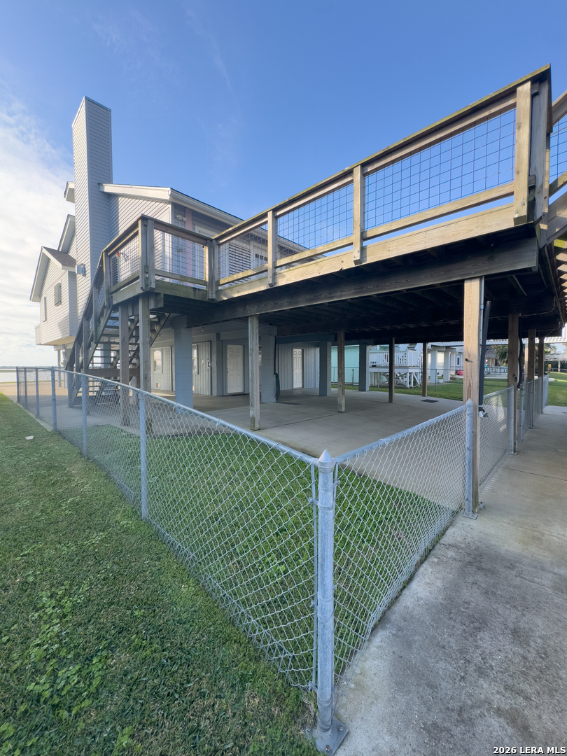 Among the best locations in Bayou Vista, this waterfront property offers the rare combination of canal frontage and unobstructed estuary views/access of Galveston Bay. Enjoy peaceful, wide-open water vistas from the estuary side, while also having protected canal access with a boat lift for easy days on the water. An expansive deck stretches from the house out over the boat lift-perfect for entertaining, relaxing, or taking in the coastal breeze. Fish, crab, or kayak from either side of the property (bay side or canal side). The fenced yard and downstairs patio offer convenience for pets and outdoor living. Upstairs, the open living area is filled with natural light, and the breakfast nook and two bedrooms feature double doors that open to the estuary, capturing the views and breeze. The layout includes three bedrooms, including a primary suite, plus a flexible nook off the living area ideal for bunk beds, a study, or additional sleeping space. Downstairs offers additional enclosed space with a full bath and mini-split system, providing versatility for guests, recreation, or storage (buyer to verify permitted uses and compliance with applicable regulations). Whether you're looking for a full-time residence or a weekend retreat, this property delivers a unique waterfront setting where location truly stands apart.