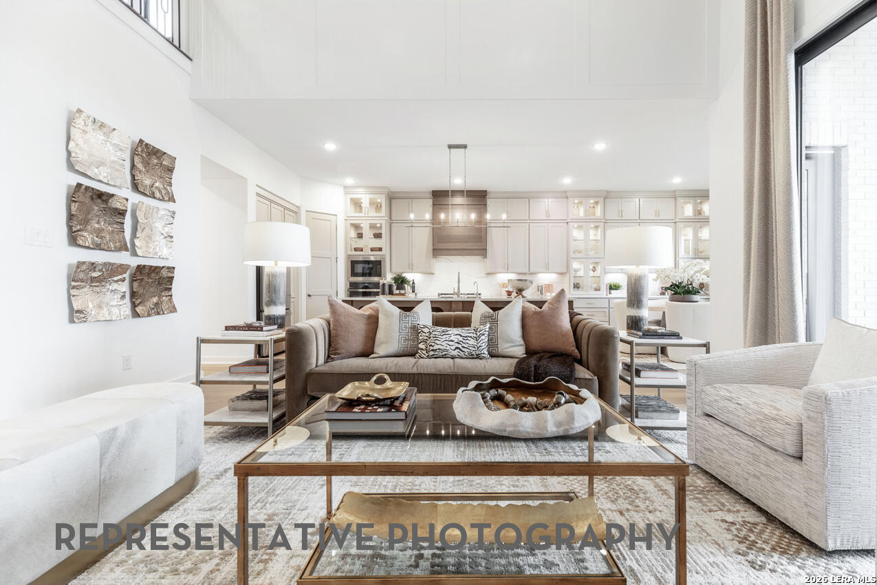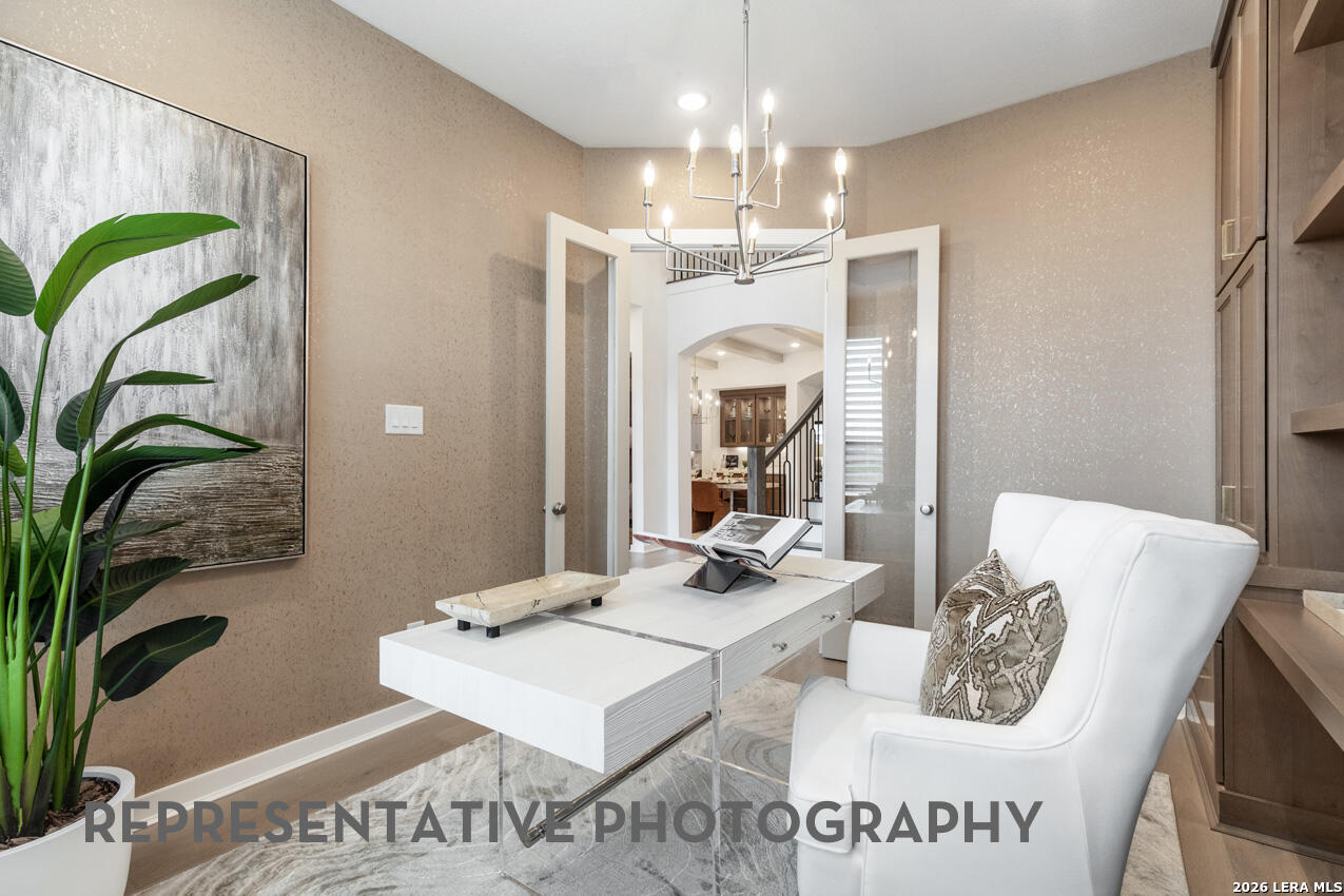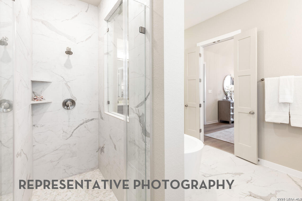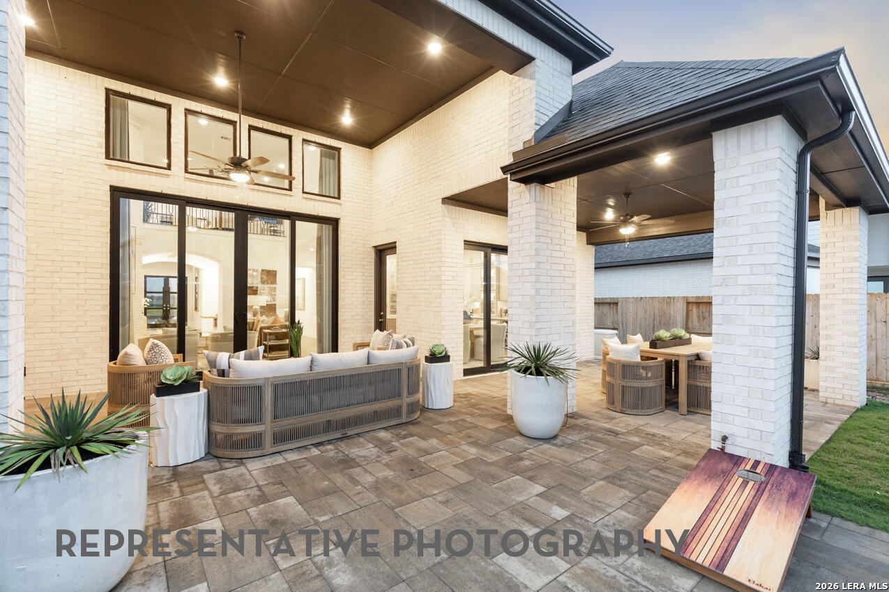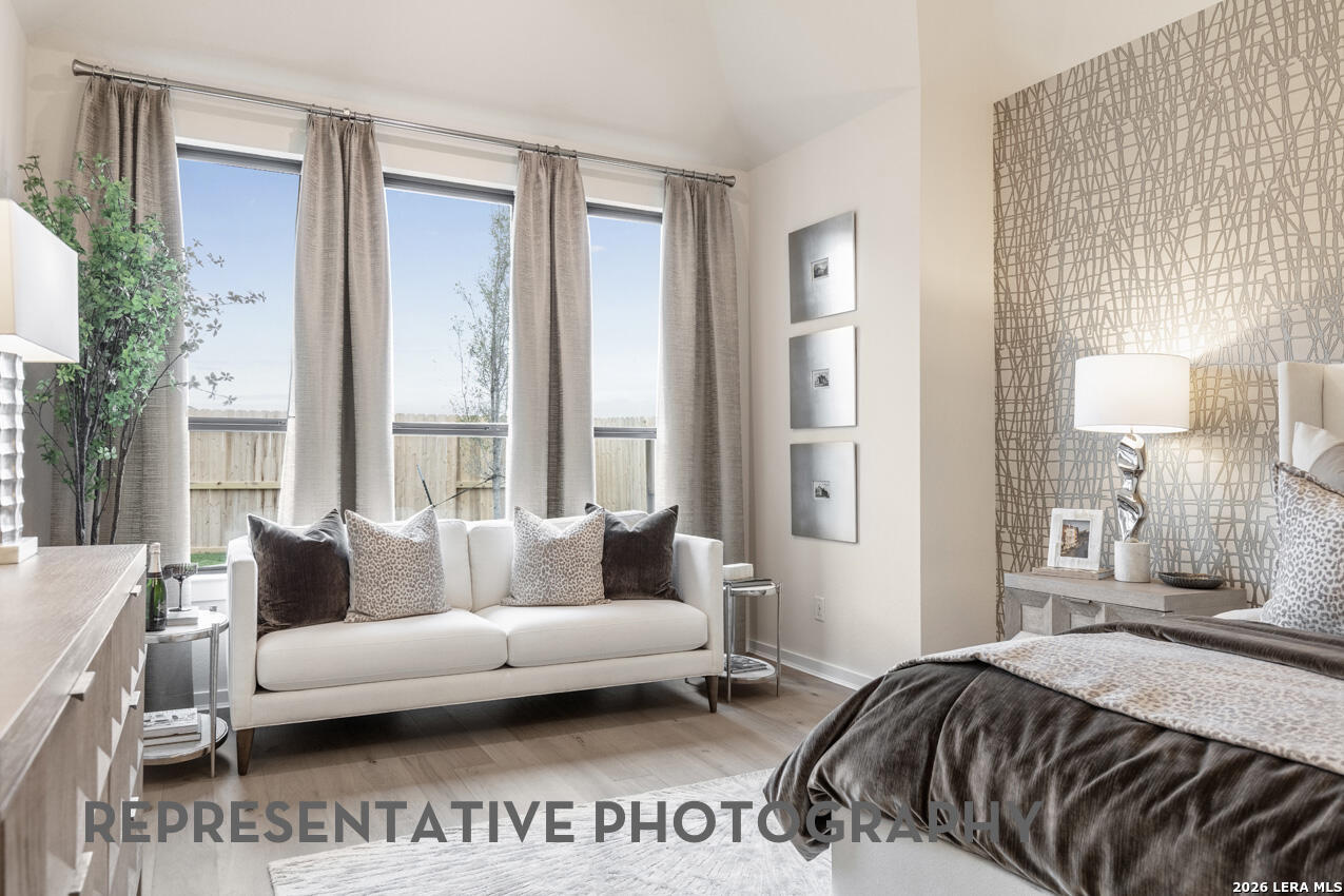 This brand new Highland Home offers plenty of room for everyone. You notice the huge soaring ceilings as soon as you walk into this home from the double doors at the entry way. The home features a secondary bedroom downstairs along with the primary bedroom for easy use. The downstairs also features a formal study for those who work from home along with a full media room for movie nights without having to go to the second floor. The covered back patio is enclosed by 3 walls and has a huge soaring patio ceiling for a perfect place to have backyard gatherings. The upstairs has 2 huge bedrooms that are perfect for those who have large beds and furniture and require more space to function.