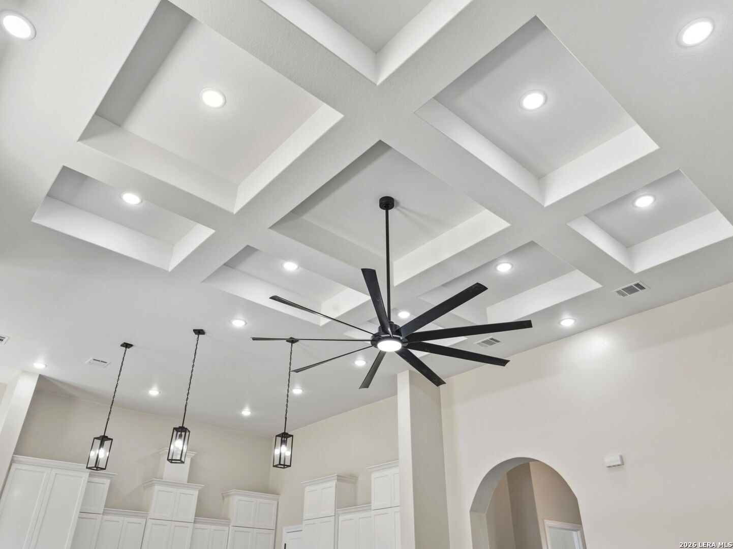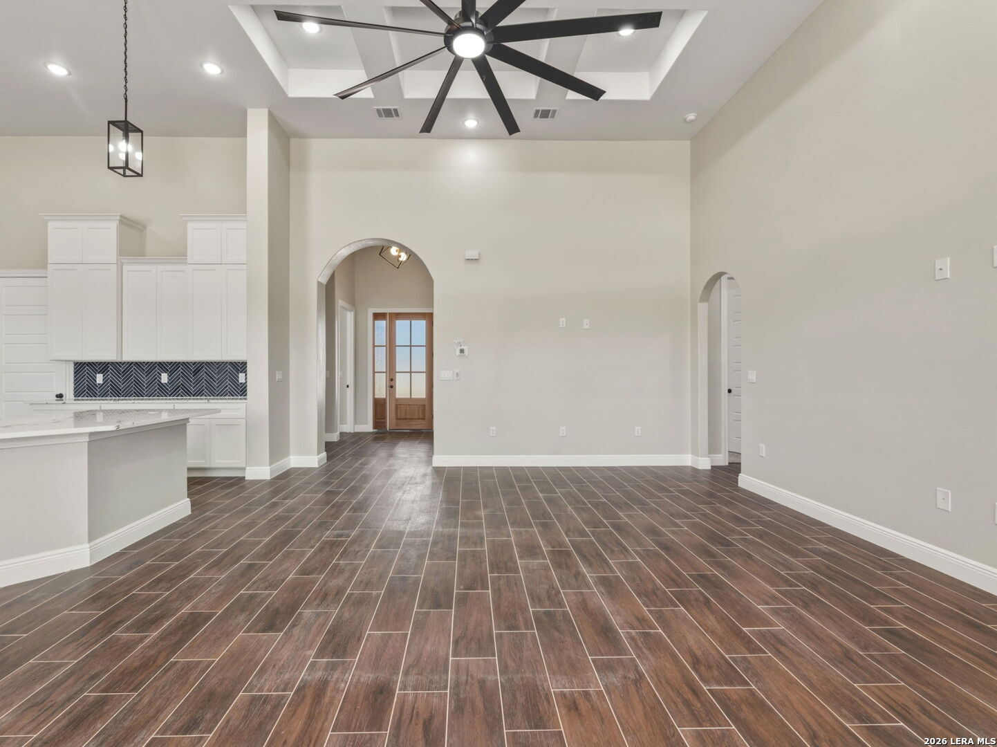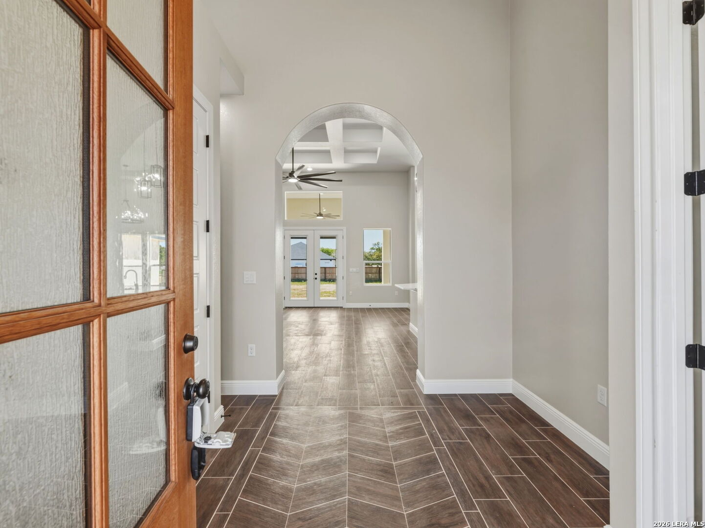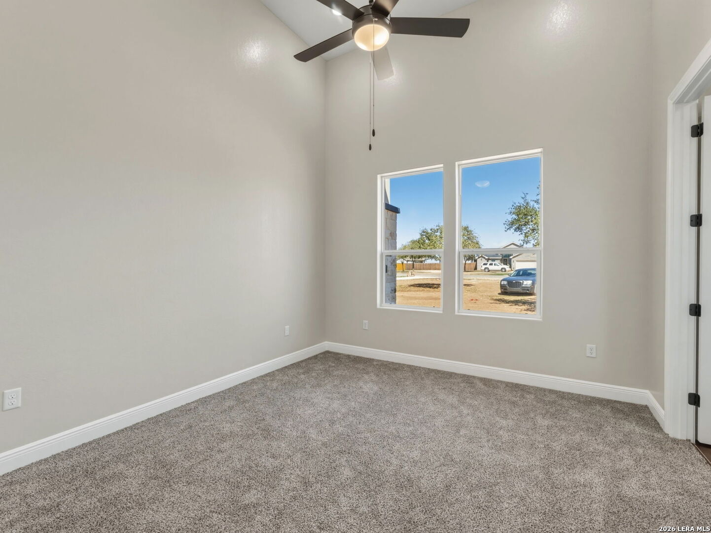 This stunning home will leave you absolutely speechless from the moment you arrive. The exterior is beautifully illuminated with extensive lighting and showcases an elegant blend of limestone and stucco. Step through the entry with soaring 14-foot ceilings and impressive 10-foot doors that lead into a spacious great room designed to impress. As you enter, look up and admire the striking lighting, architectural details, and lighted arched art niches that set the tone for the entire home. To the right of the entry is a versatile fifth bedroom or study, highlighted by incredible ceiling details. The great room opens seamlessly to the covered rear patio, already equipped for a TV-perfect for entertaining or relaxing outdoors. The incredible kitchen features a large island and breakfast bar, ideal for gatherings and everyday living. To the left, one hallway leads to a private second master suite, while another leads to the generously sized third and fourth bedrooms. On the right side of the home, near the dining area, you'll find the gorgeous primary master suite. The ensuite bath offers a luxurious separate shower and garden tub, along with a spacious walk-in closet designed to meet all your storage needs. Throughout the home, all bedrooms feature oversized ceiling fans and plush carpeting, while all living and wet areas are finished with durable ceramic tile flooring. The oversized garage is equally impressive, offering 10-foot doors ideal for trucks or SUVs, an EV charger, garage door opener, water softener loop for easy installation, and insulation in both the walls and ceiling. Situated on a generous 0.75-acre lot, this property offers mature trees in the front and a blank canvas in the rear-ready for your dream outdoor space. Don't miss the opportunity to see this exceptional home before it's gone. ***Pictures 16-50 are from a similar home. This home will be ready beginning of March 2026