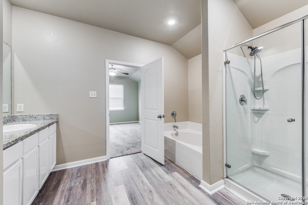 Welcome to 12818 Cedarcreek Trail - a beautifully refreshed and move-in ready 3-bed, 2-bath home in the highly desirable Talise de Culebra community. This single-story gem has been fully updated with fresh interior paint, brand-new carpet, and new flooring throughout, giving it a clean, modern, like-new feel the moment you walk in. The open-concept layout offers a bright and inviting living space with plenty of natural light. The kitchen features stainless steel appliances, granite countertops, a breakfast bar, and ample cabinetry - perfect for cooking, hosting, or everyday convenience. The private primary suite includes a large walk-in closet and an ensuite bath with a spacious walk-in shower. Step outside to a fully fenced backyard, ideal for pets, gatherings, or relaxing evenings at home. The neighborhood offers outstanding amenities including a community pool, park, playground, walking/jogging trails, and a sports court. Perfectly located just minutes from Loop 1604, Culebra Rd, NISD schools, shopping, restaurants, and entertainment, this home combines style, comfort, and convenience in one of San Antonio's fastest-growing areas. This home truly feels brand new again - beautifully updated and ready for its next owners. Come see it today!