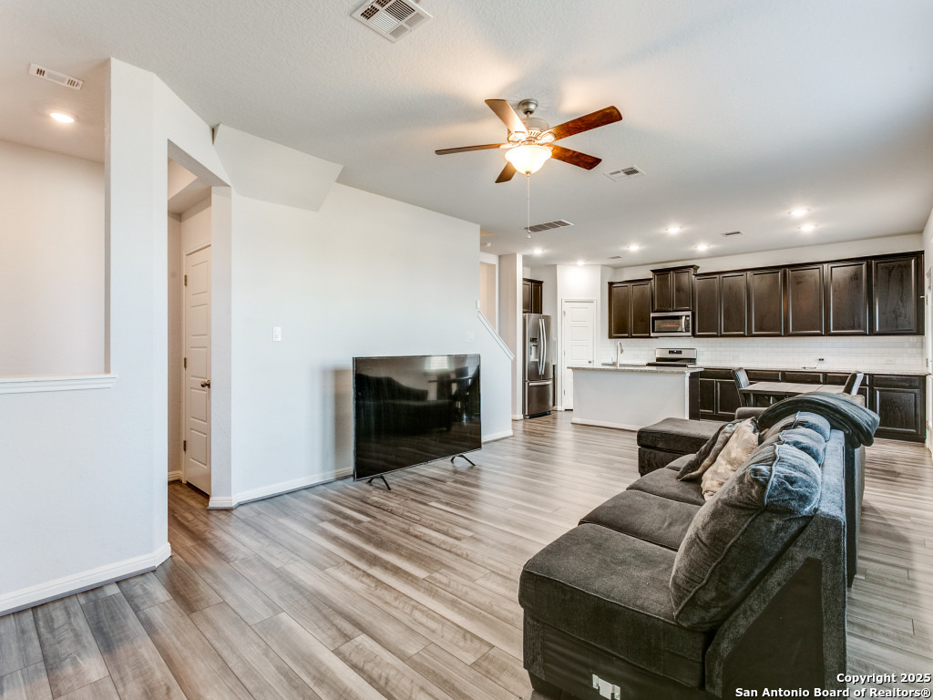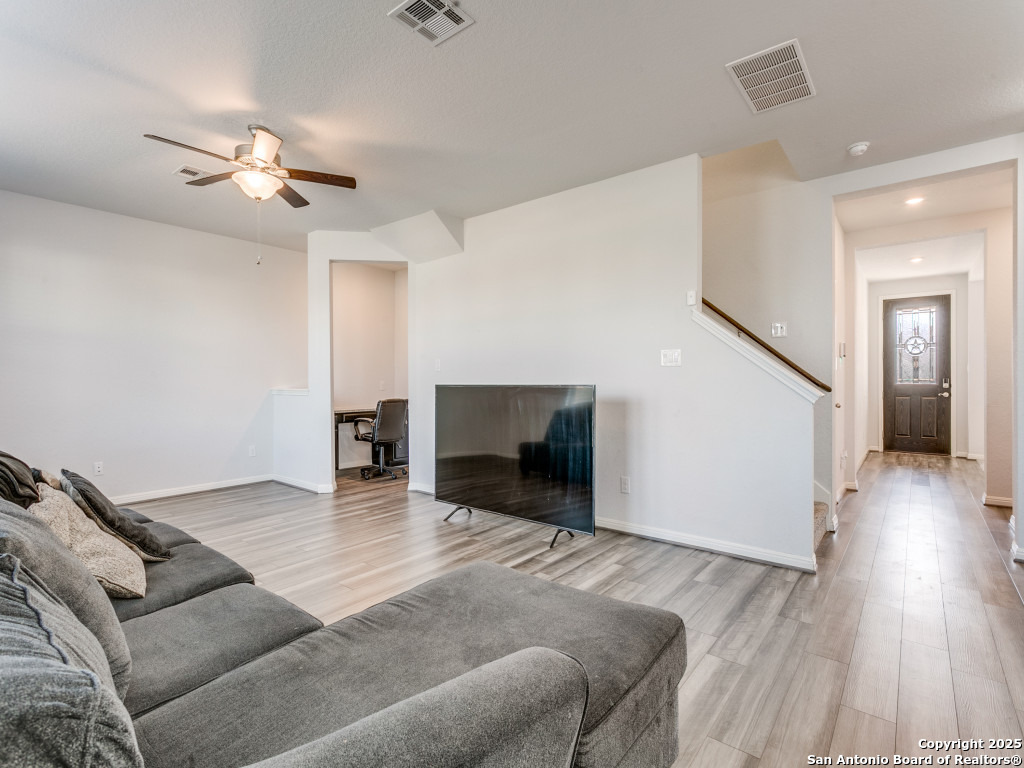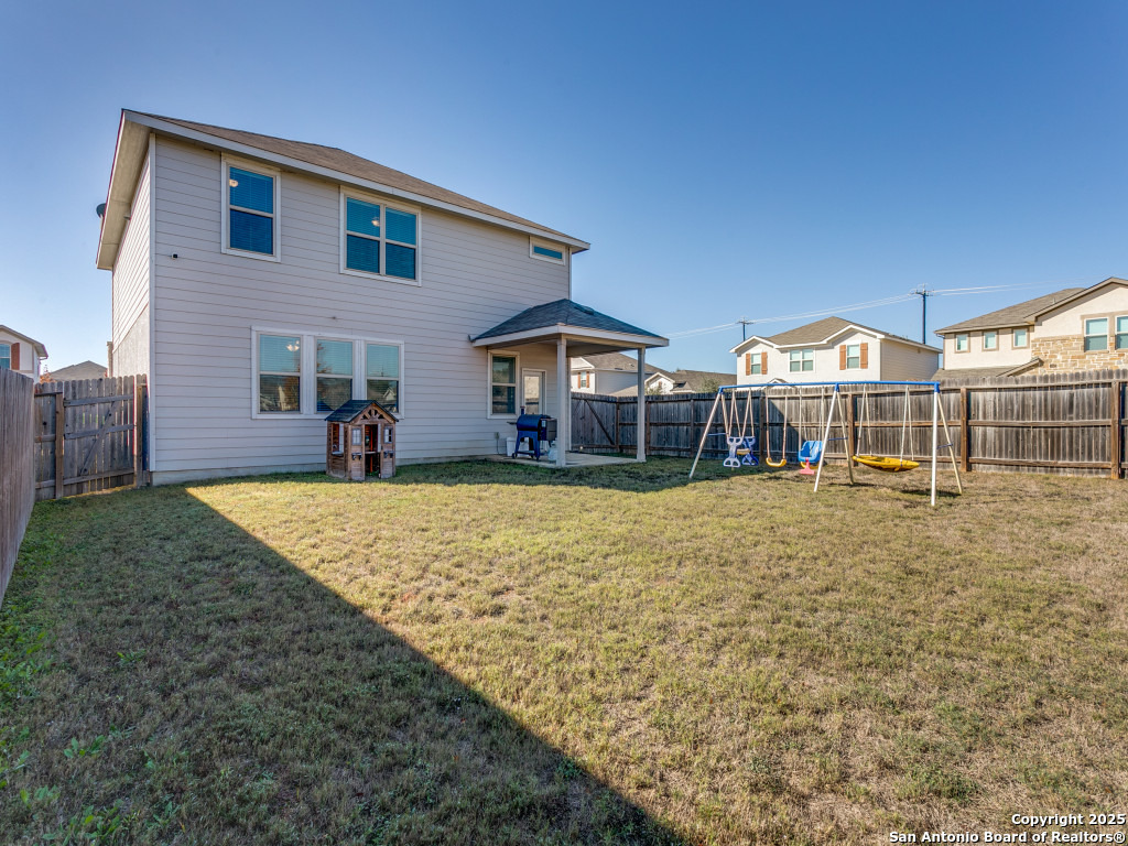 Located on a corner lot just steps from the community pool-perfect for summer swimming-this four-bedroom home offers a spacious layout designed for both comfort and lifestyle. Enjoy peaceful living with easy access to hiking and outdoor adventures at nearby Government Canyon State Natural Area. The main level features an open-concept design with a convenient built-in workstation, ideal for a home office or study space. Carpet-free flooring downstairs makes everyday care and maintenance a breeze. Upstairs, you'll find an open and airy arrangement with all four bedrooms and a generously sized game room that can also serve as an additional living or flex space, providing room for everyone to spread out and enjoy.A special feature of this home is the thoughtfully designed upstairs layout. Another features is at the top of the stairway, one bedroom is set apart from the game room area, offering added privacy-ideal for a guest suite, home office, or anyone seeking a quiet retreat.