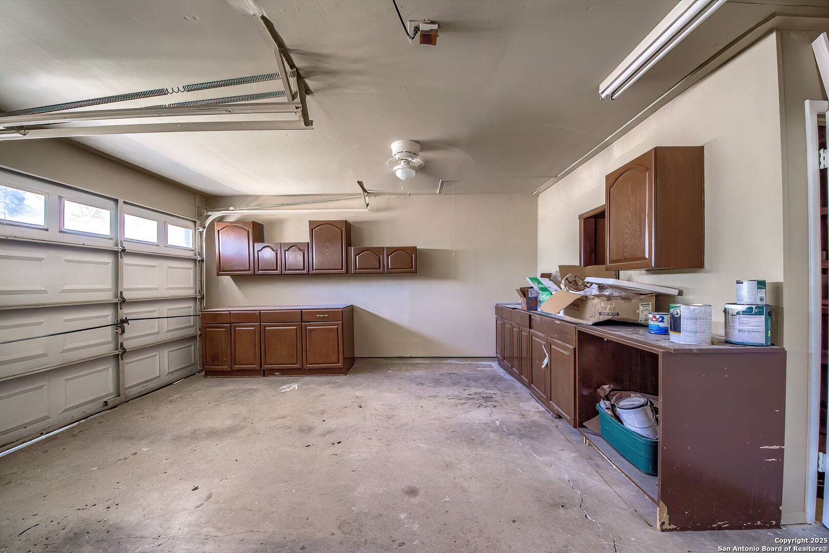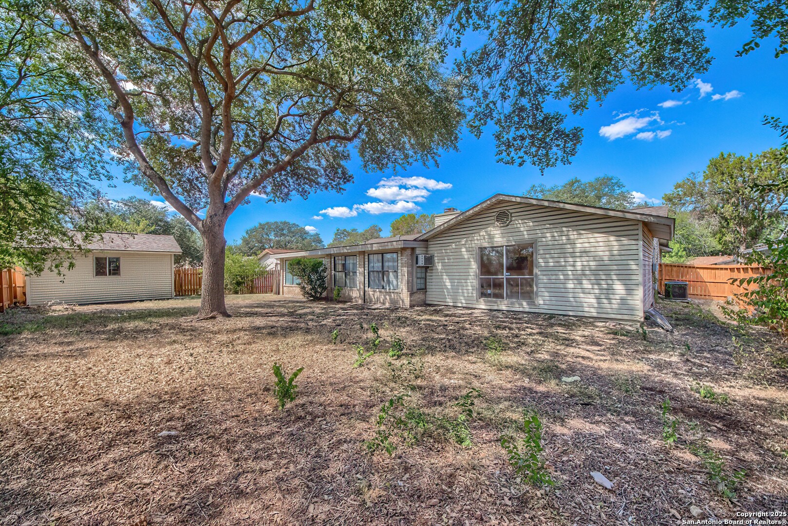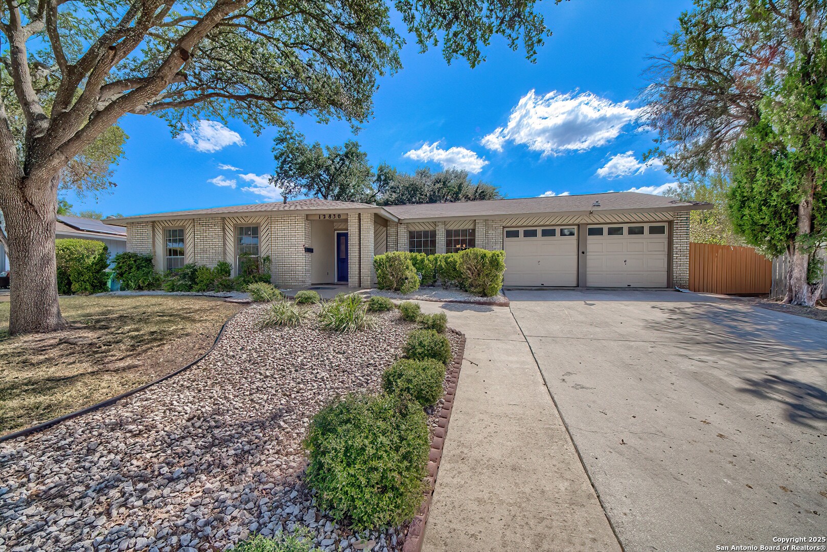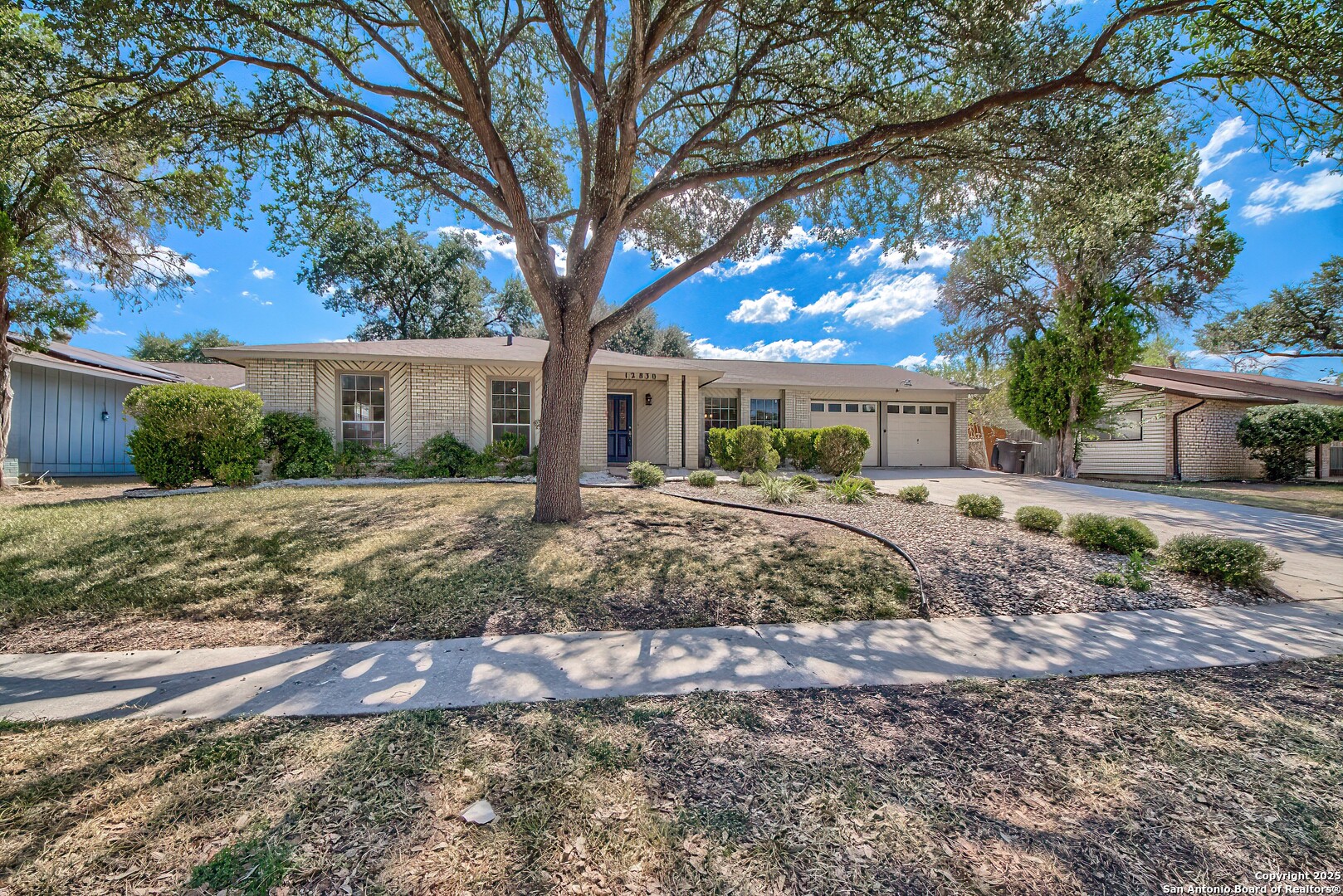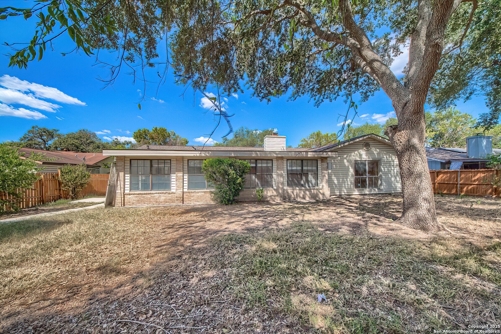 NEVER WANT FOR SPACE IN THIS AFFORDABLE SINGLE STORY BRICK RANCHER WITH NEW ROOF, FRESH PAINT, NEW LUXURY VINYL FLOORING AND A WORKSHOP! Well loved for decades by the same owners who raised their children here, this spacious single story is ready with open arms to welcome you in and turn all your possibilities into realities. Wind through the wide, tree-lined streets leading through Valley Forge and glide up to this charmer beneath mature trees and accented by smart xeriscaping and lawn. Open living is just a start to this traditional home modern comforts that offers more than you thought you could ask for at this price including a huge game room/sunroom and workshop on a slab, fully outfitted for all your projects! Step past the welcoming front porch and into the foyer to find a formal living room adjacent to a formal dining that is separate but still open to the family room and kitchen. A centerpiece, wood burning, brick fireplace with long hearth sets a cozy atmosphere in the family room that adjoins the breakfast nook. Offering original real wood cabinetry and plenty of countertop to work with, the kitchen is ready to go now or renovate to add your personal choices for upgrades. The adjacent laundry room includes cabinetry and shelving and leads into the two-car attached garage with pull-down attic access, storage cabinets and workbench. The primary suite is quite the production with one large room that hosts the adjacent ensuite bath, accessible with spacious walk-in shower with grab bars and no lip. But that's not all! Another doorway leads into the real retreat with beamed vaulted ceiling, two closets and tons of space for a third living area. Or, vice versa, use the first space as an office, exercise room or hobby room and this private enclave as your palatial bedroom. The secondary bedrooms share a guest bath in the hallway leading back to the rest of the house. Just off the family room is a giant air conditioned space to use as you will -- imagine entertaining with the outfitted bar with long counter top, wine nooks and glass shelves or work a business from this room as the owners did both over the years. Outside find a concrete walkway leading to the 18X13 workshop, on a slab, with electricity and work tables. Just add tools and get busy or turn into an office with exterior access if that is what you need! The owner added a concrete walkway from the gate to the shop for ease of use. The nice sized, level yard shaded by mature trees offers enough space for outdoor activities including gardening and playscape. Or, add a swimming pool and make this a real all-encompassing live, relax and work place you'd never have to leave! Located in an ultra-convenient, well established neighborhood -- right off I-35 at O'Connor near 1604 in NE San Antonio -- an easy commute to military bases to include RAFB, SAMMC and Fort Sam as well as all the cool things to do downtown at the Riverwalk. Shopping and restaurants are just minutes away as are the NEISD schools the home is zoned to attend. If you work from home and/or run a business from home, or if multi-generational living is what you need, this property checks every box. There is no HOA to worry about, just city regulations, so feel free to have chickens and other options usually governed by HOAs. The new architectural shingle roof with 30 year shingles will help keep your property insurance costs lower than other homes. Don't wait for another opportunity like this to come along, run and see this one and make it your own.