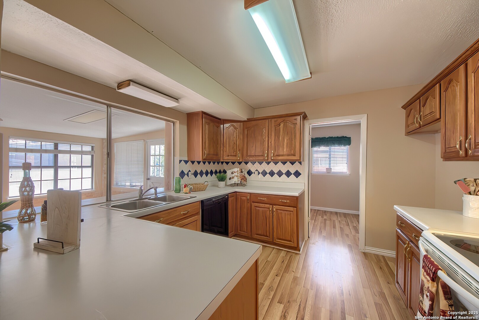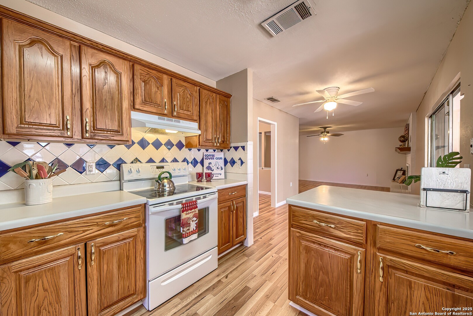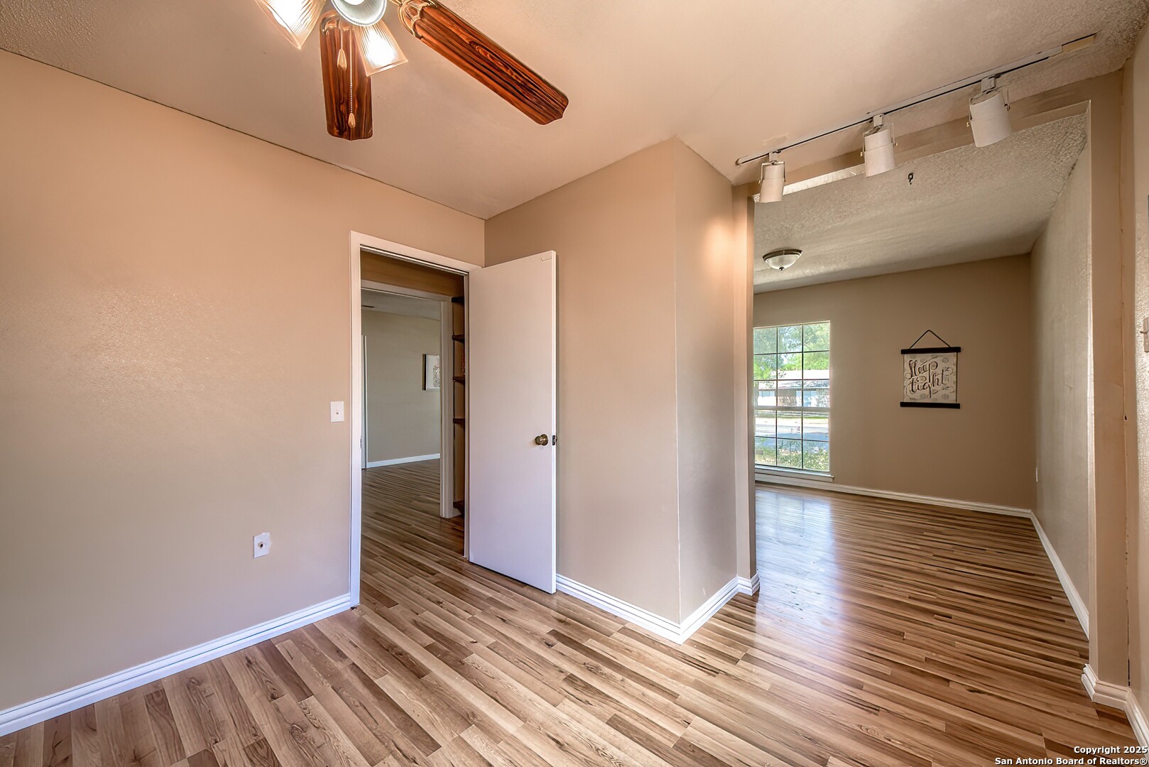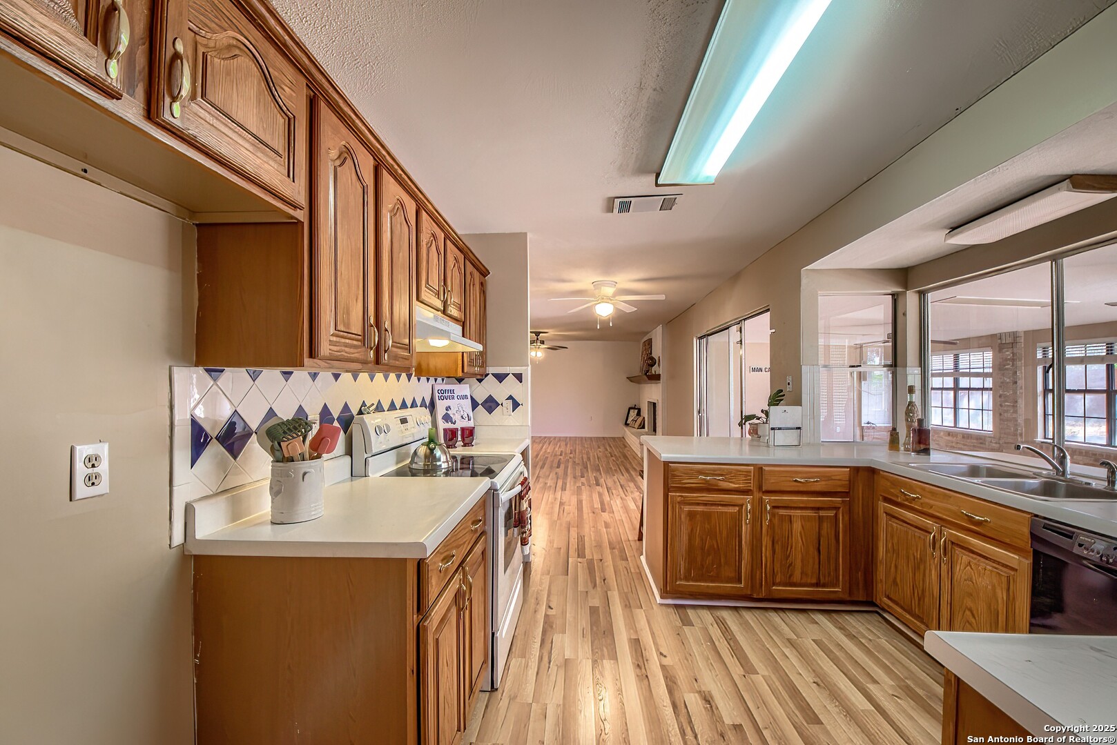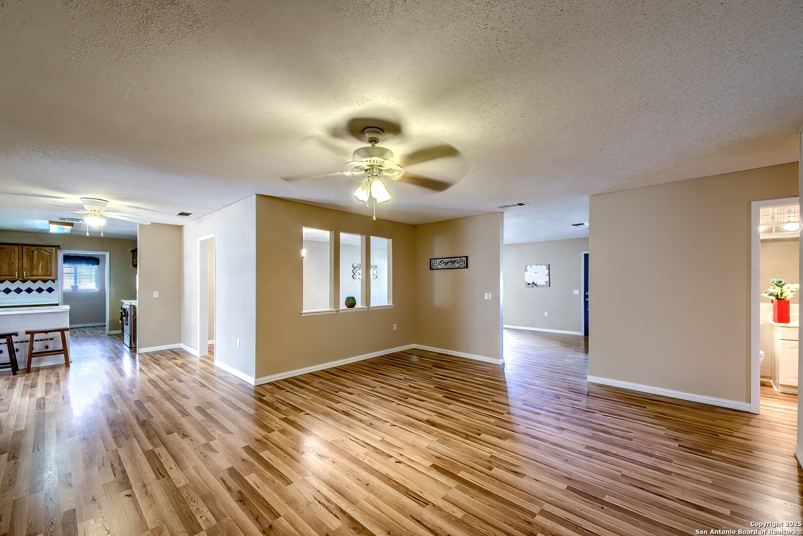 NEVER WANT FOR SPACE IN THIS AFFORDABLE SINGLE STORY BRICK RANCHER WITH NEW ROOF, FRESH PAINT, NEW LUXURY VINYL FLOORING AND A WORKSHOP! Well loved for decades by the same owners who raised their children here, this spacious single story is ready with open arms to welcome you in and turn all your possibilities into realities. Wind through the wide, tree-lined streets leading through Valley Forge and glide up to this charmer beneath mature trees and accented by smart xeriscaping and lawn. Open living is just a start to this traditional home modern comforts that offers more than you thought you could ask for at this price including a huge game room/sunroom and workshop on a slab, fully outfitted for all your projects! Step past the welcoming front porch and into the foyer to find a formal living room adjacent to a formal dining that is separate but still open to the family room and kitchen. A centerpiece, wood burning, brick fireplace with long hearth sets a cozy atmosphere in the family room that adjoins the breakfast nook. Offering original real wood cabinetry and plenty of countertop to work with, the kitchen is ready to go now or renovate to add your personal choices for upgrades. The adjacent laundry room includes cabinetry and shelving and leads into the two-car attached garage with pull-down attic access, storage cabinets and workbench. The primary suite is quite the production with one large room that hosts the adjacent ensuite bath, accessible with spacious walk-in shower with grab bars and no lip. But that's not all! Another doorway leads into the real retreat with beamed vaulted ceiling, two closets and tons of space for a third living area. Or, vice versa, use the first space as an office, exercise room or hobby room and this private enclave as your palatial bedroom. The secondary bedrooms share a guest bath in the hallway leading back to the rest of the house. Just off the family room is a giant air conditioned space to use as you will -- imagine entertaining with the outfitted bar with long counter top, wine nooks and glass shelves or work a business from this room as the owners did both over the years. Outside find a concrete walkway leading to the 18X13 workshop, on a slab, with electricity and work tables. Just add tools and get busy or turn into an office with exterior access if that is what you need! The owner added a concrete walkway from the gate to the shop for ease of use. The nice sized, level yard shaded by mature trees offers enough space for outdoor activities including gardening and playscape. Or, add a swimming pool and make this a real all-encompassing live, relax and work place you'd never have to leave! Located in an ultra-convenient, well established neighborhood -- right off I-35 at O'Connor near 1604 in NE San Antonio -- an easy commute to military bases to include RAFB, SAMMC and Fort Sam as well as all the cool things to do downtown at the Riverwalk. Shopping and restaurants are just minutes away as are the NEISD schools the home is zoned to attend. If you work from home and/or run a business from home, or if multi-generational living is what you need, this property checks every box. There is no HOA to worry about, just city regulations, so feel free to have chickens and other options usually governed by HOAs. The new architectural shingle roof with 30 year shingles will help keep your property insurance costs lower than other homes. Don't wait for another opportunity like this to come along, run and see this one and make it your own.