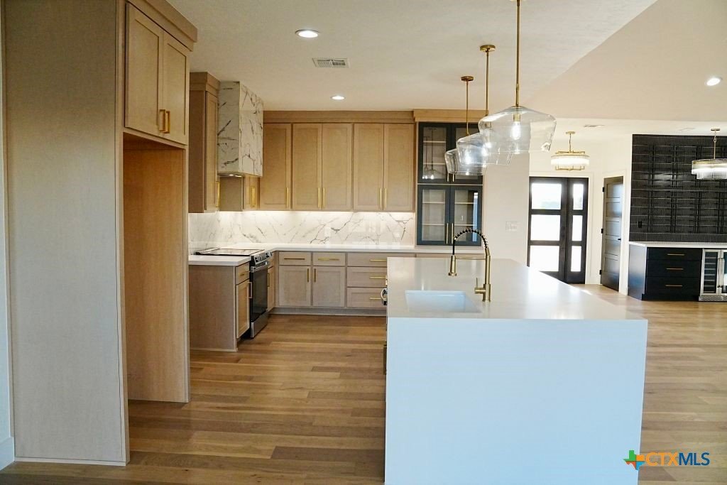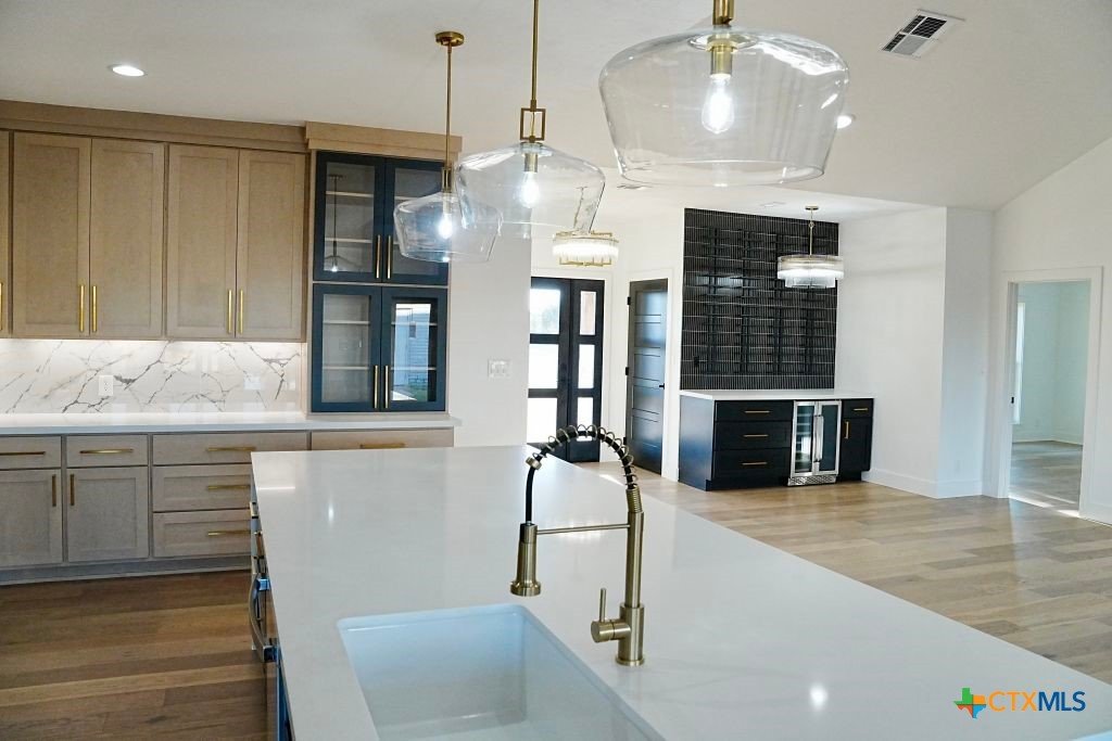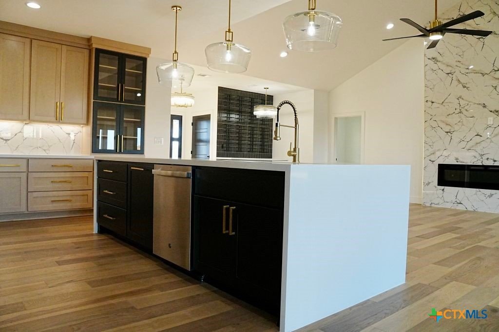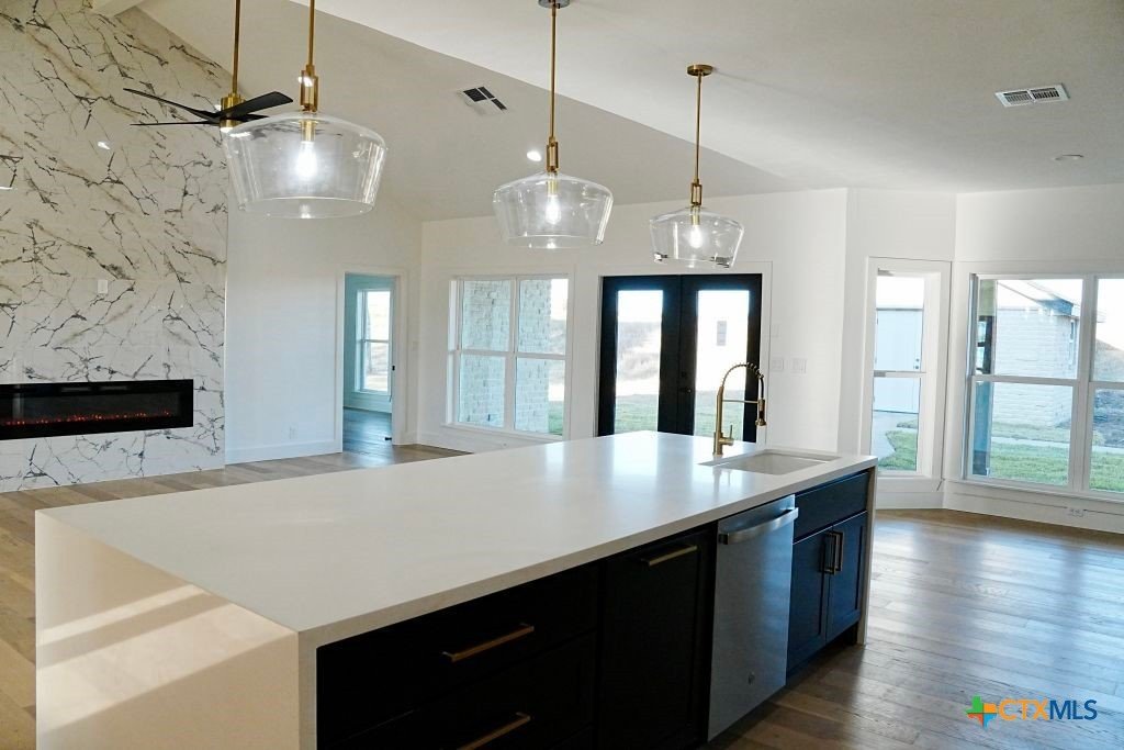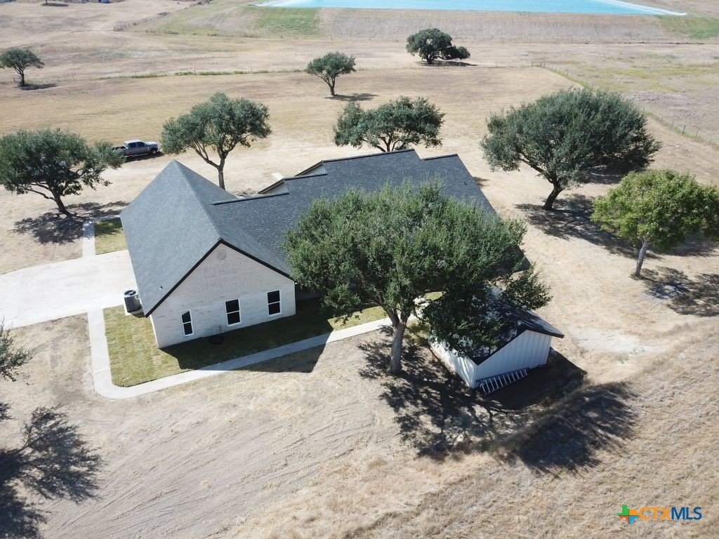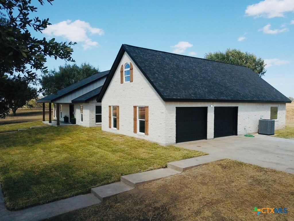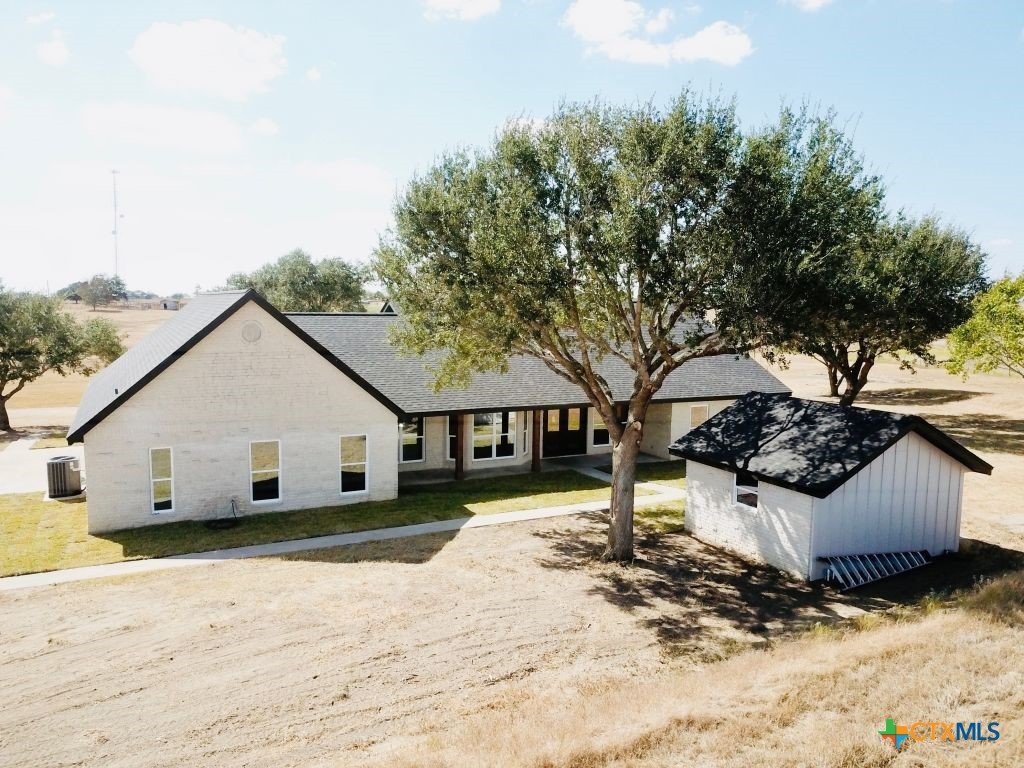 Fully updated masonry home in Shiner TX, approximately 2 hours from Austin, San Antonio, and Houston. It is situated on 13.573 acres of coastal grass. Approximately 3150 square feet with 3 bedrooms, 2 full baths, 2 half baths, office, 2 car garage, bonus room upstairs. Open concept kitchen and living area with quartz countertops, maple cabinetry, and 10 foot island with waterfall sides. Walk in pantry. Wine bar with dual zone refrigerator and custom racks. Electric fireplace with tile extending to vaulted ceiling. Primary bedroom includes walk in shower, freestanding tub, and custom closet. Secondary bedrooms include walk in closets. Flex room suitable for office or dining. White oak flooring throughout. Updates 2026 include paint interior and exterior, roof, windows, doors, garage doors and openers, appliances, quartz, cabinetry, plumbing fixtures, electrical fixtures, flooring, water well, and septic pump. 17 by 14.5 foot building on slab in backyard. Located in Shiner ISD.