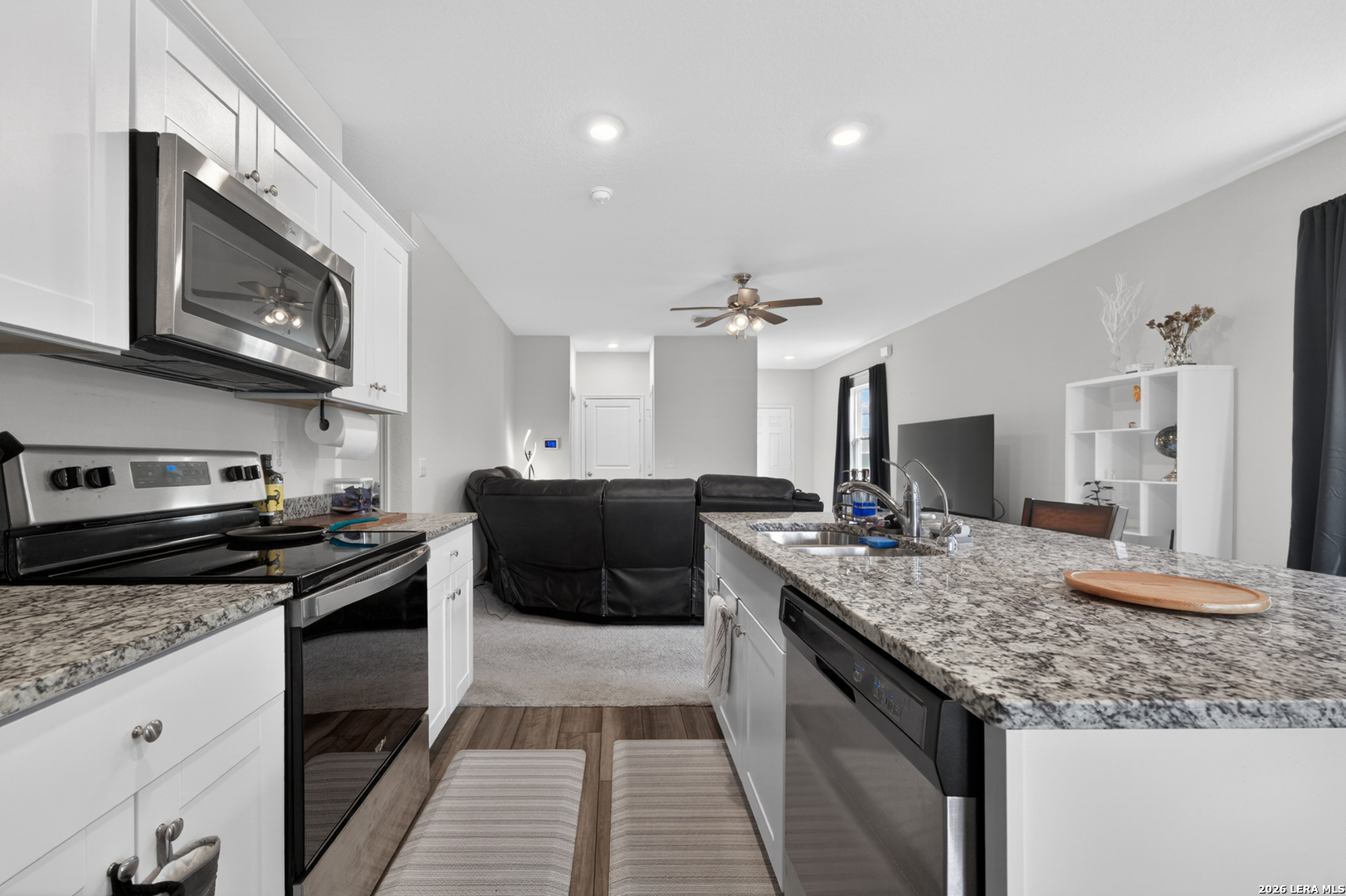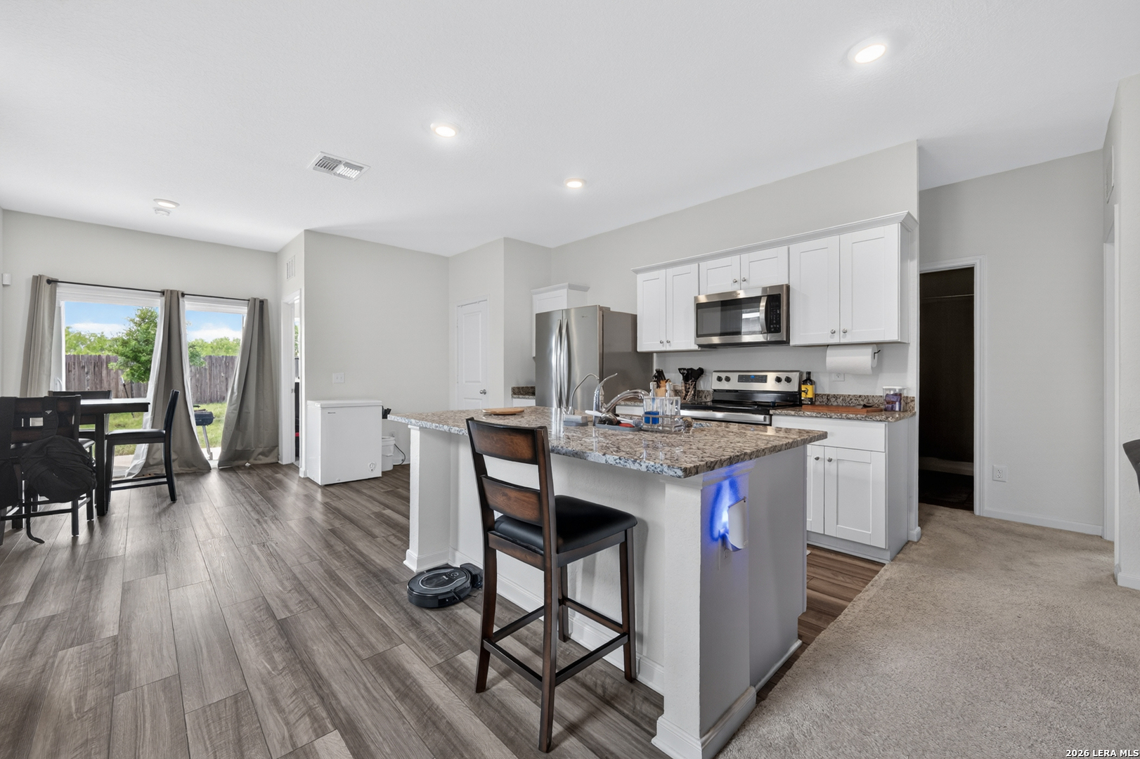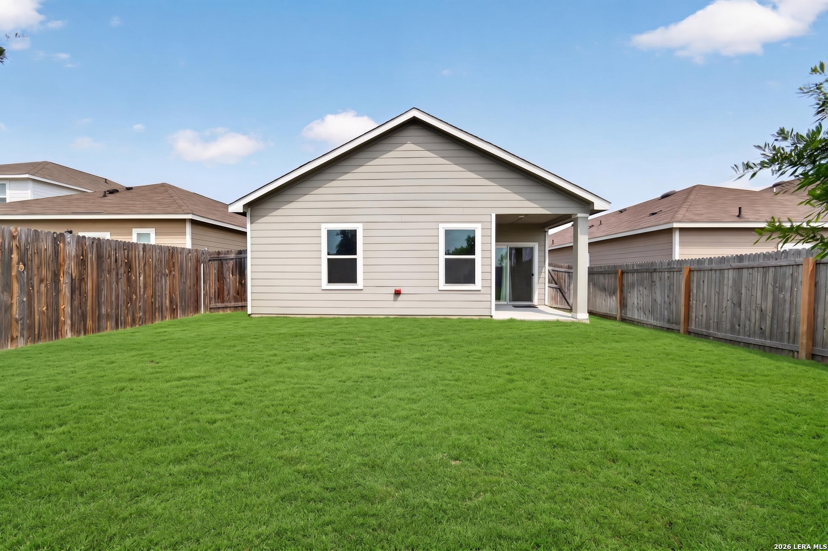 Wraparound Financing available. Clean, bright single-story home with an open layout that makes the space feel comfortable and connected from the moment you walk in. The main living area flows easily into the kitchen and dining space, creating a setup that works just as well for everyday living as it does for hosting friends or family. Natural light fills the home through large windows, highlighting the modern interior and easy floor plan. The primary suite sits privately toward the back of the home and includes a spacious bathroom with dual vanities and a walk-in shower. Secondary bedrooms are well-sized and offer flexibility for guests, a home office, or additional living space. Step outside to a covered patio overlooking a generously sized backyard with plenty of room to relax, entertain, or customize to your liking. Conveniently located on the rapidly growing west side with quick access to Loop 1604, Highway 90, Lackland AFB, shopping, dining, and everyday conveniences.