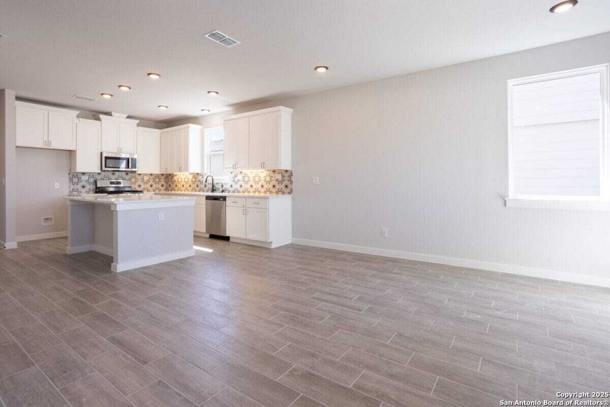 Welcome to Majestic View, a beautifully designed 2,330 sq ft home located near Lackland AFB in a sought-after community. This spacious residence features 4 bedrooms, including two master suites, 3.5 bathrooms, and a 2-car garage, offering comfort and flexibility for multi-generational living or guest accommodations. Step into the grand foyer and be greeted by an expansive open-concept layout that seamlessly connects the living, dining, and gourmet kitchen-complete with high-end appliances, modern finishes, and ample space for entertaining. The primary suite offers a spa-like retreat with dual vanities and a walk-in closet, while the covered patio provides a peaceful backyard escape with no rear neighbors. Additional highlights include: Smart Home Package: Front door lock, kitchen and front lights, and thermostat Central heating and cooling Spacious laundry room Access to two community pools, a playground, and a covered BBQ area-perfect for summer fun! Don't miss your chance to own this exceptional home in a prime location. Schedule your tour today and experience the Majestic View lifestyle!