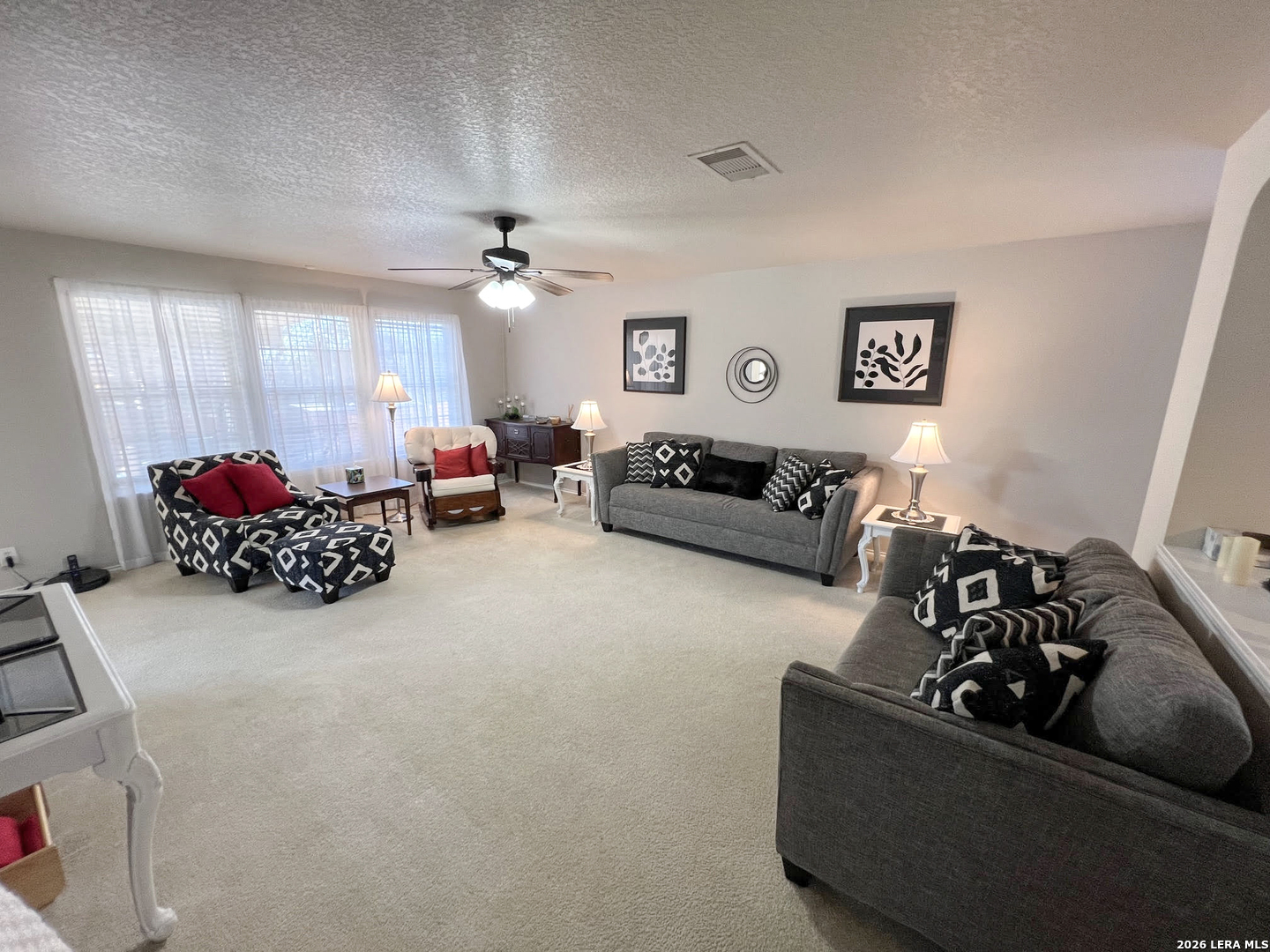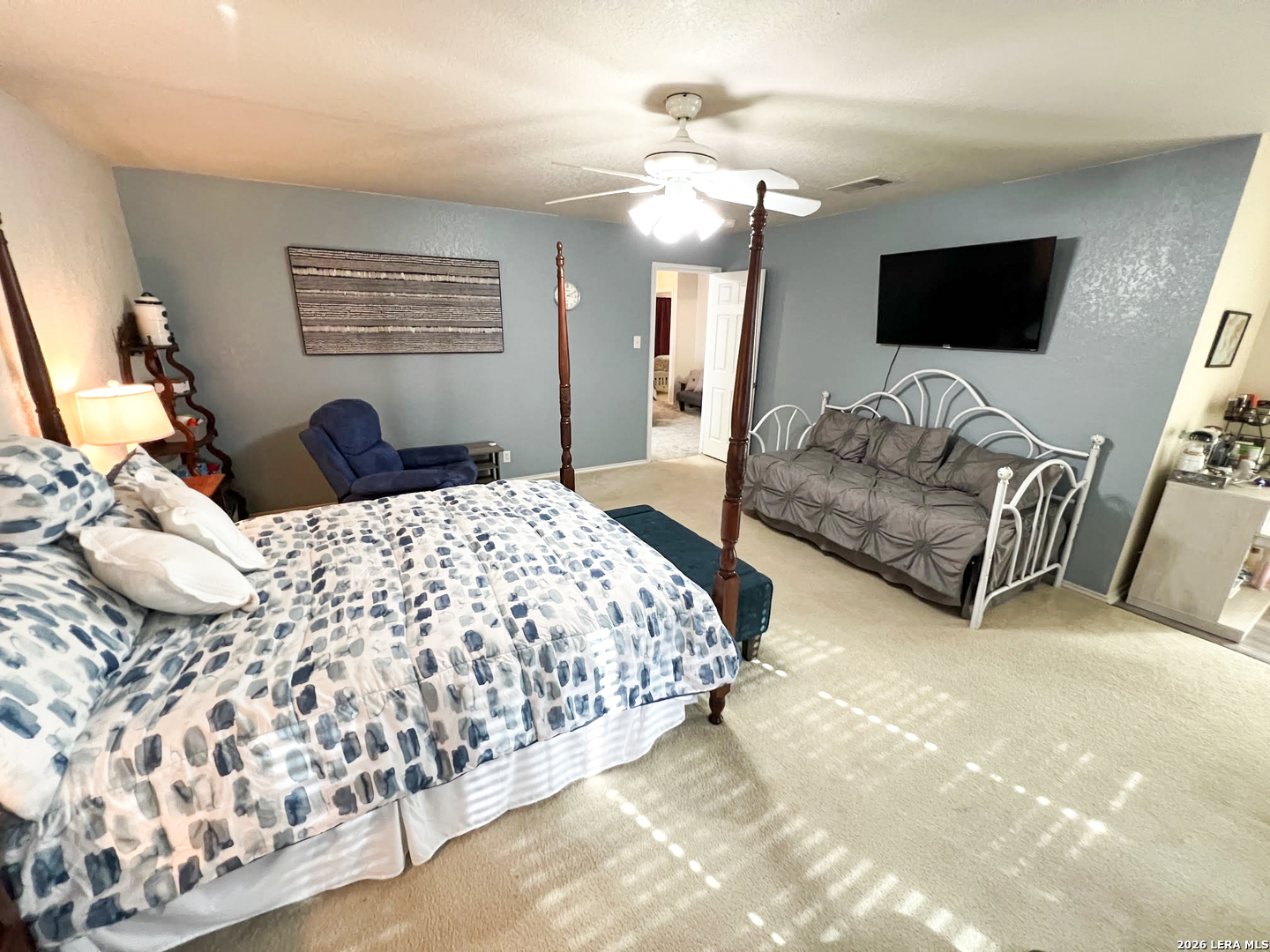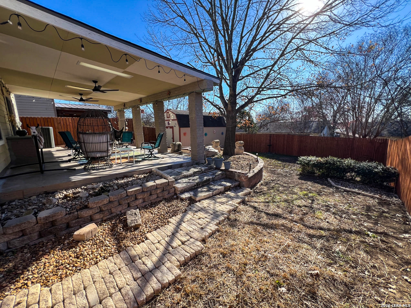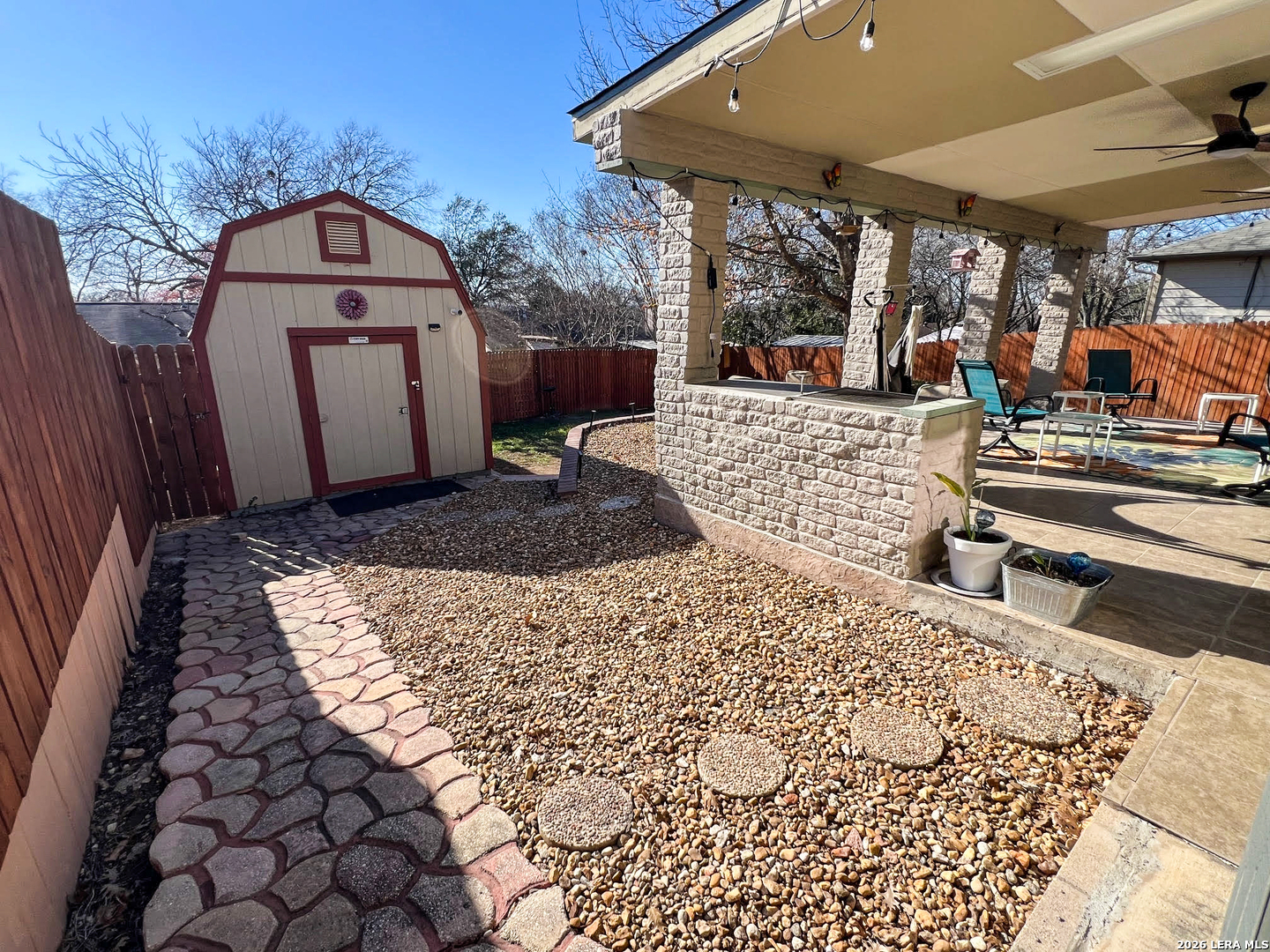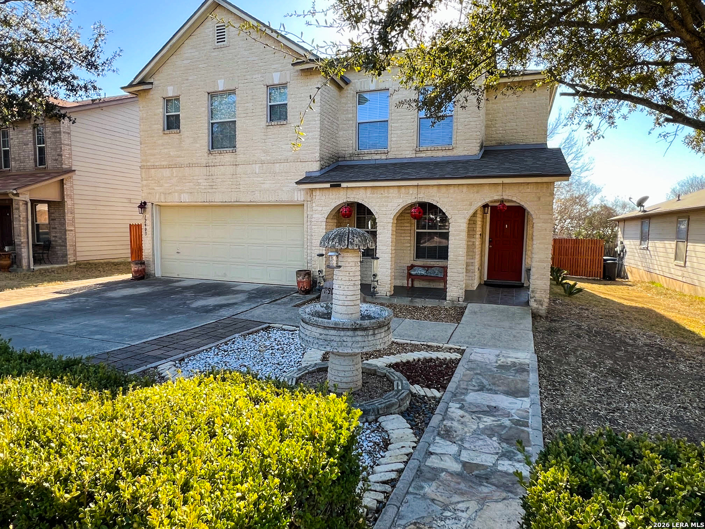 Welcome to this impressive two-story home in the sought-after Falcon Heights community! Featuring 4 bedrooms, 2.5 baths, 2500 square feet, formal dining, a game room and 2 living areas, this spacious home is designed to accommodate! - The front yard greets you with a beautiful walkway, fountain and covered front porch. Enjoy a backyard built for gatherings, complete with covered patio, tile flooring, outdoor kitchen shell, prep space, ceiling fans, and gas fire pit. A storage shed with electricity adds extra functionality. The upgraded kitchen is a standout with granite countertops, a large island, newer appliances and faux wood blinds. NEWER HVAC, NEW Carpet Upstairs ** New Refrigerator, Washer and Dryer ALL Convey! ** - Located in desirable NEISD School District and conveniently close to shopping, dining, and major roadways, this home offers everything; exceptional space, value, and lifestyle potential. Schedule your showing today and experience everything this one has to offer!