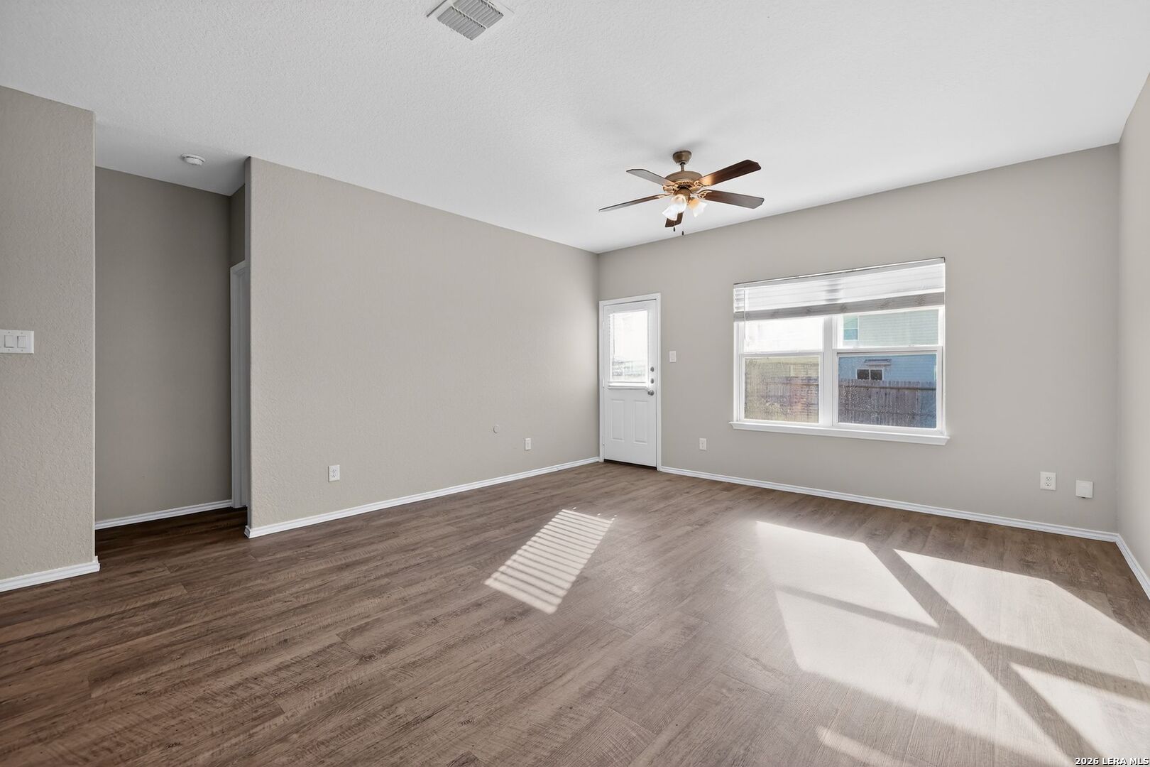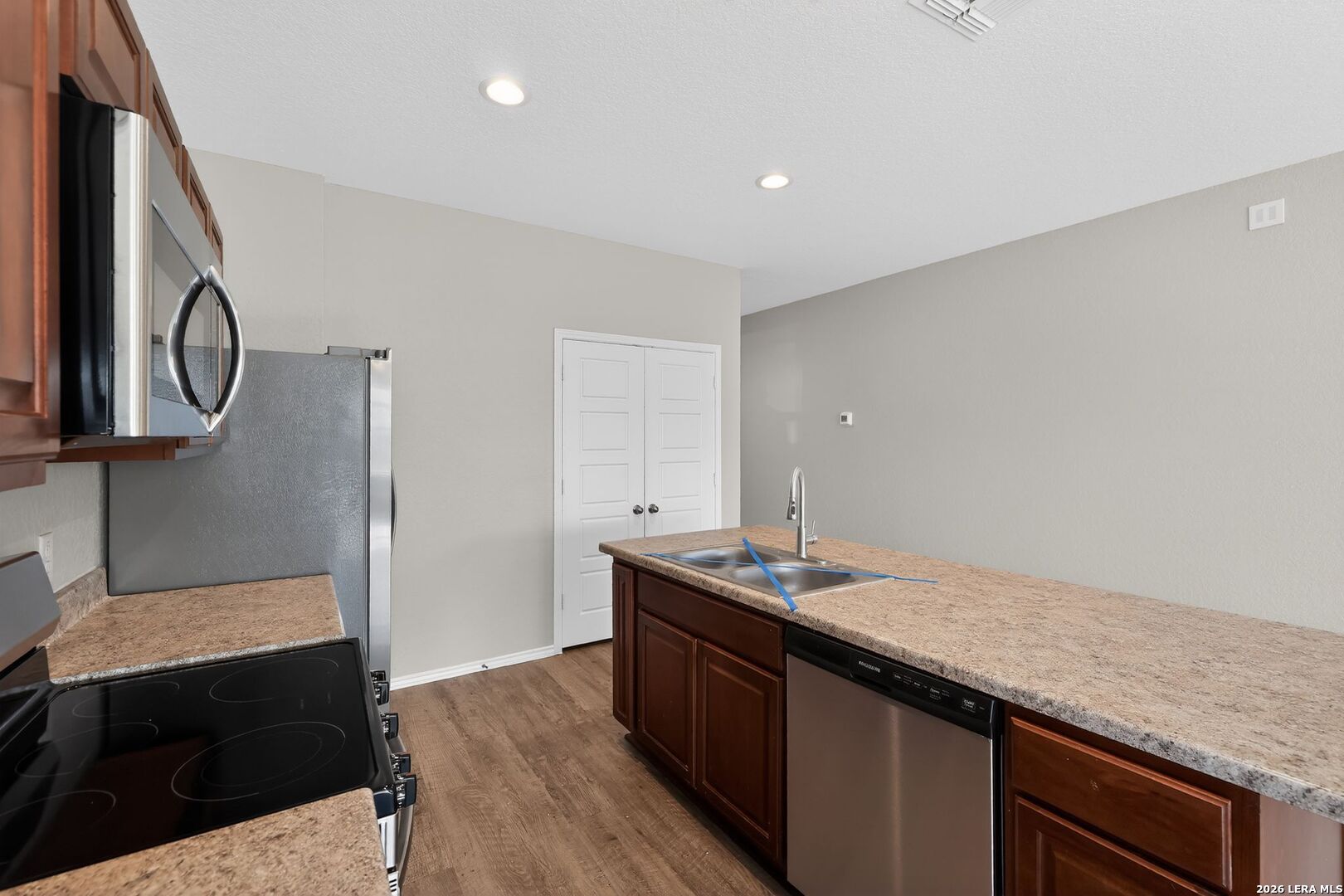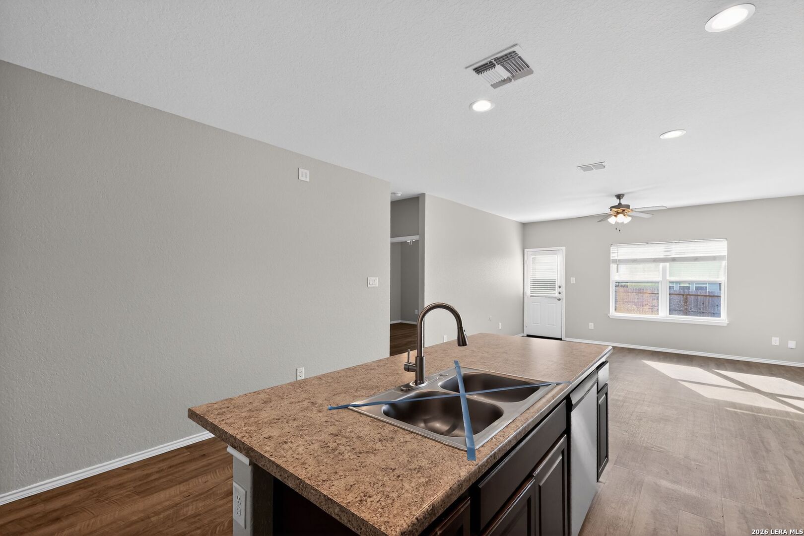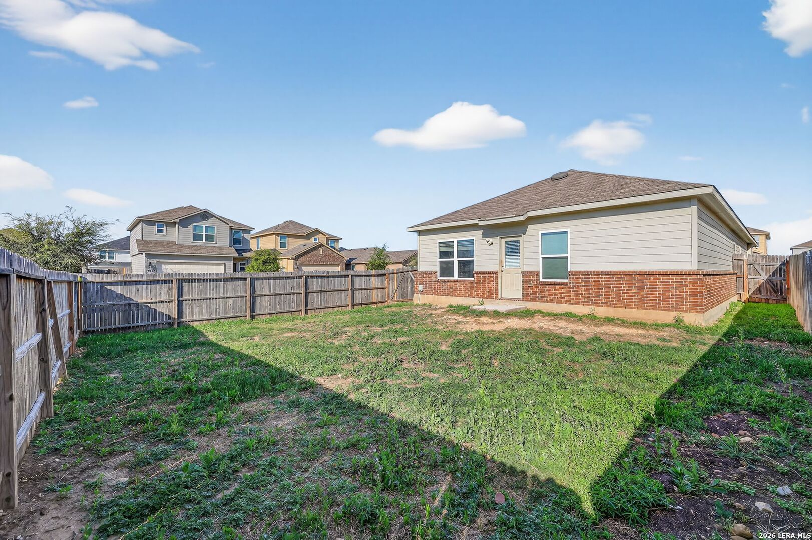 This well-maintained single-story home offers a clean, modern layout with 4 bedrooms and 2 full baths in the growing Scott Hollow community. Built in 2020, the home features an open-concept design with durable vinyl flooring, neutral tones, and abundant natural light throughout. The spacious living area flows seamlessly into the kitchen, which is equipped with ample cabinetry, generous counter space, and a functional layout ideal for both everyday living and entertaining. The primary suite is privately situated and features a walk-in closet along with an ensuite bath complete with double vanities. Secondary bedrooms are well-sized and versatile, easily accommodating guests, a home office, or additional living needs. Outside, the backyard offers a manageable space with room to relax or customize to your liking, while the two-car garage provides added convenience. Located in East Central ISD with easy access to I-10 and nearby amenities, this home combines newer construction, functional design, and a convenient location.