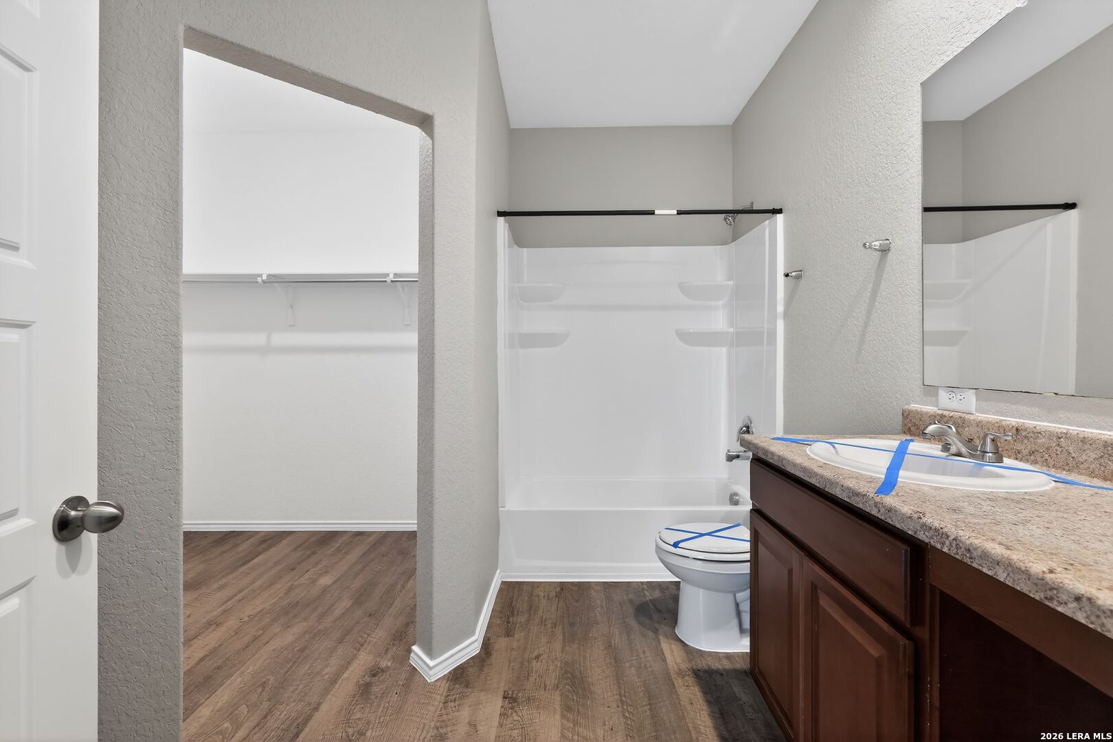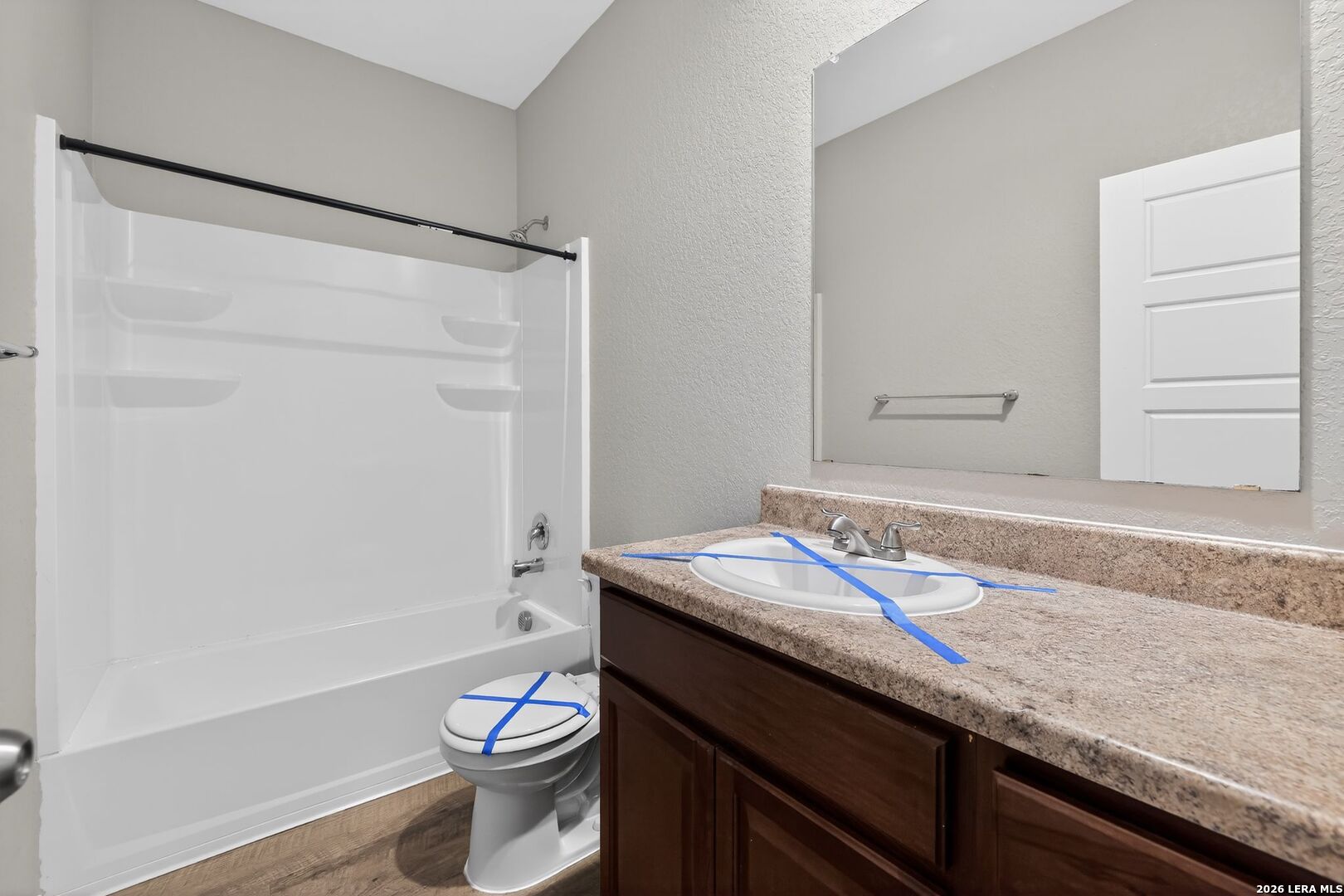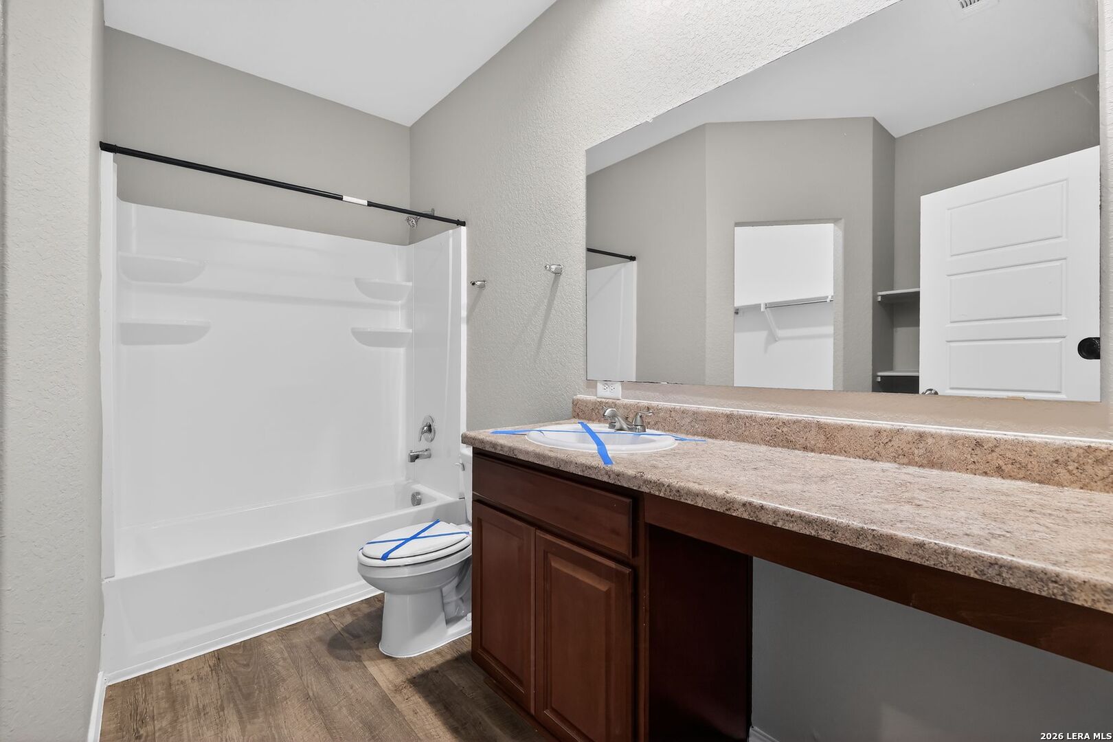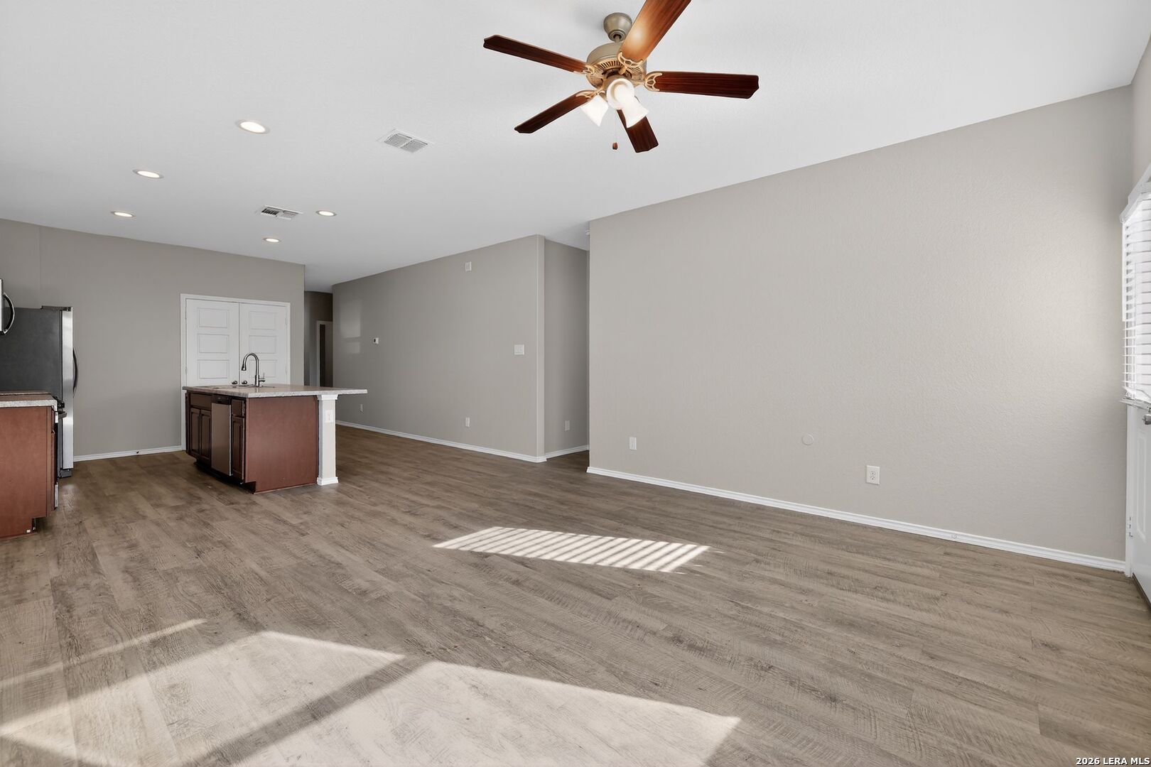 This well-maintained single-story home offers a clean, modern layout with 4 bedrooms and 2 full baths in the growing Scott Hollow community. Built in 2020, the home features an open-concept design with durable vinyl flooring, neutral tones, and abundant natural light throughout. The spacious living area flows seamlessly into the kitchen, which is equipped with ample cabinetry, generous counter space, and a functional layout ideal for both everyday living and entertaining. The primary suite is privately situated and features a walk-in closet along with an ensuite bath complete with double vanities. Secondary bedrooms are well-sized and versatile, easily accommodating guests, a home office, or additional living needs. Outside, the backyard offers a manageable space with room to relax or customize to your liking, while the two-car garage provides added convenience. Located in East Central ISD with easy access to I-10 and nearby amenities, this home combines newer construction, functional design, and a convenient location.