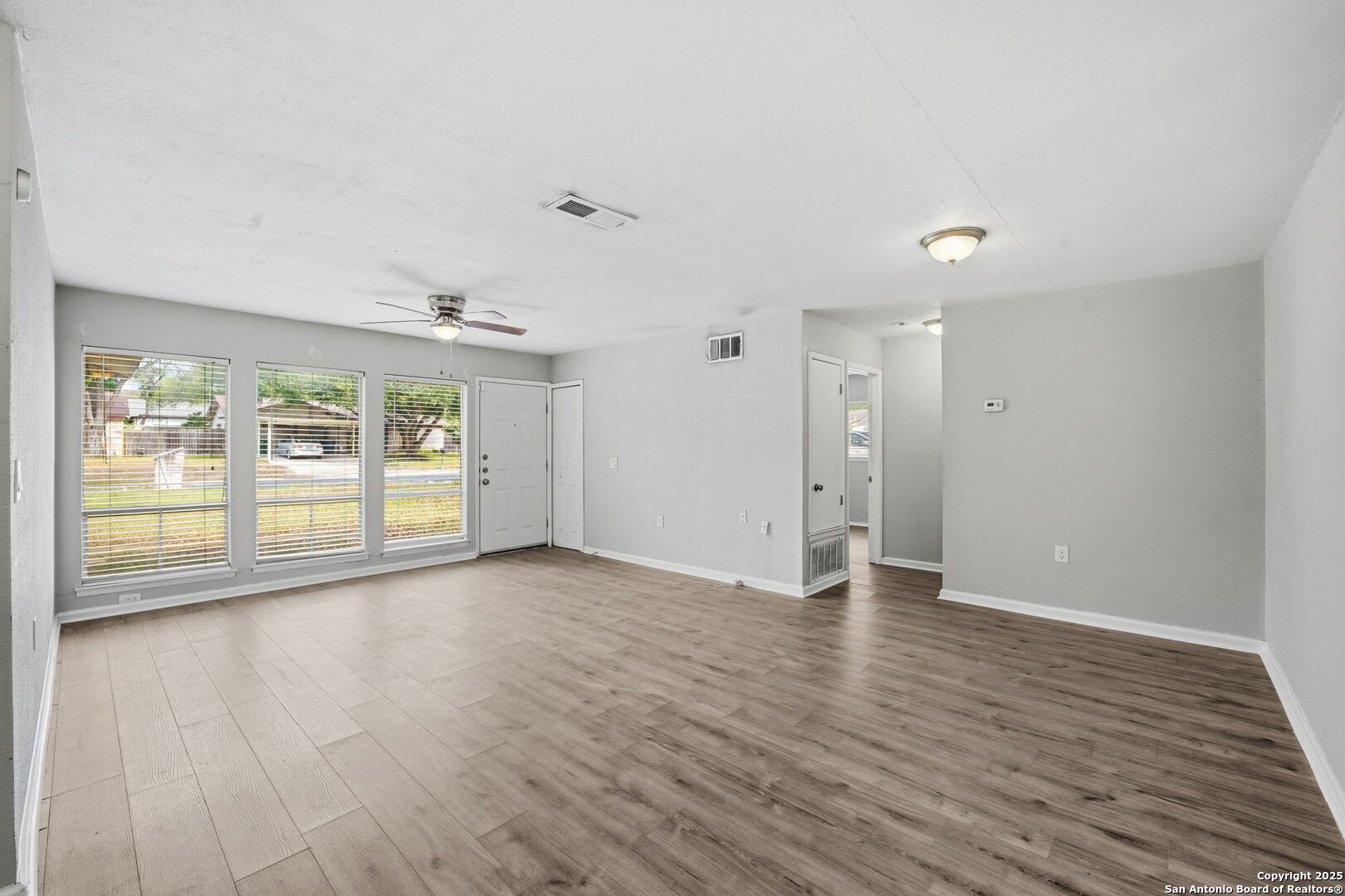 Escape to your own oasis, nestled in a prime location near I-35 in Northeast San Antonio, offering unparalleled convenience to shopping, dining, schools, and places of worship! This stunning 3 bedroom, 2 bath home boasts a spacious open concept layout, perfect for entertaining or relaxing with loved ones. Brand new flooring throughout ensures a fresh and modern feel, while the separate master bedroom provides a peaceful retreat. The backyard is a true haven, featuring majestic mature trees and a spacious covered patio - the perfect spot to unwind or host gatherings. Plus, the two-car garage offers ample space for parking and storage. Don't miss out on this incredible opportunity to make this home yours! Schedule a showing today!