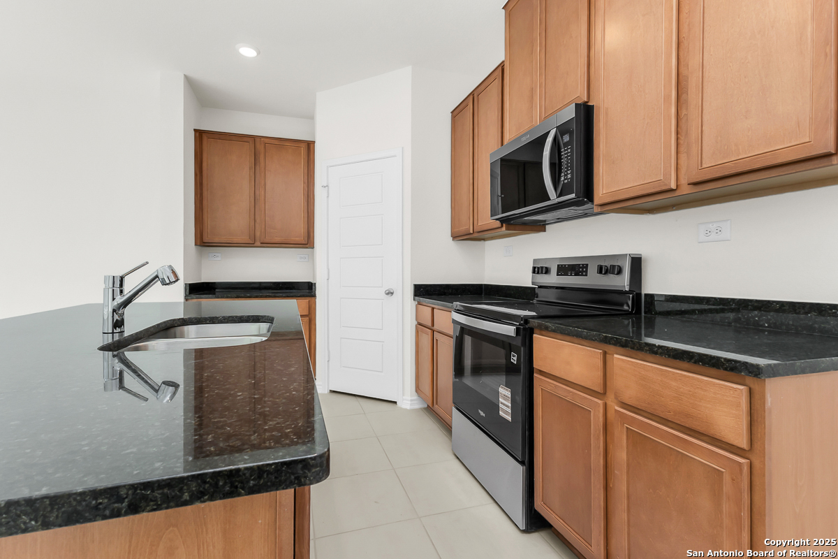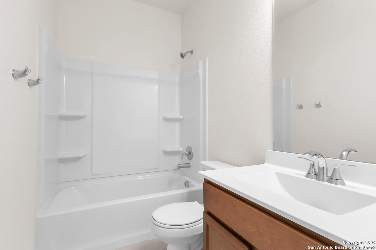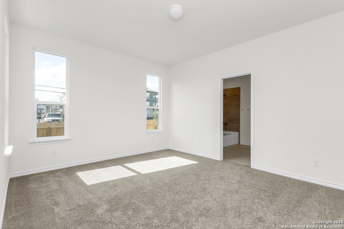 This thoughtfully designed home features 9-ft. first floor ceilings for a spacious and inviting feel. The kitchen is both functional and stylish with Whirlpool stainless steel appliances, Woodmont Cody 42-in. upper cabinets, granite countertops in Uba Tuba, and an extended breakfast bar. The primary bath offers a relaxing retreat with upgraded cabinets and a 42-in. garden tub/shower with a Daltile tile surround. Elegant details include a Carrara-style entry door, Kwikset Polo knob interior hardware, and Stella Vista ceramic tile flooring in the bathrooms, kitchen, and great room. A wireless security system, fully sodded yard, and automatic sprinkler system add comfort and convenience.