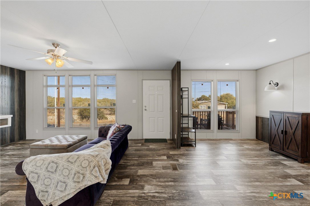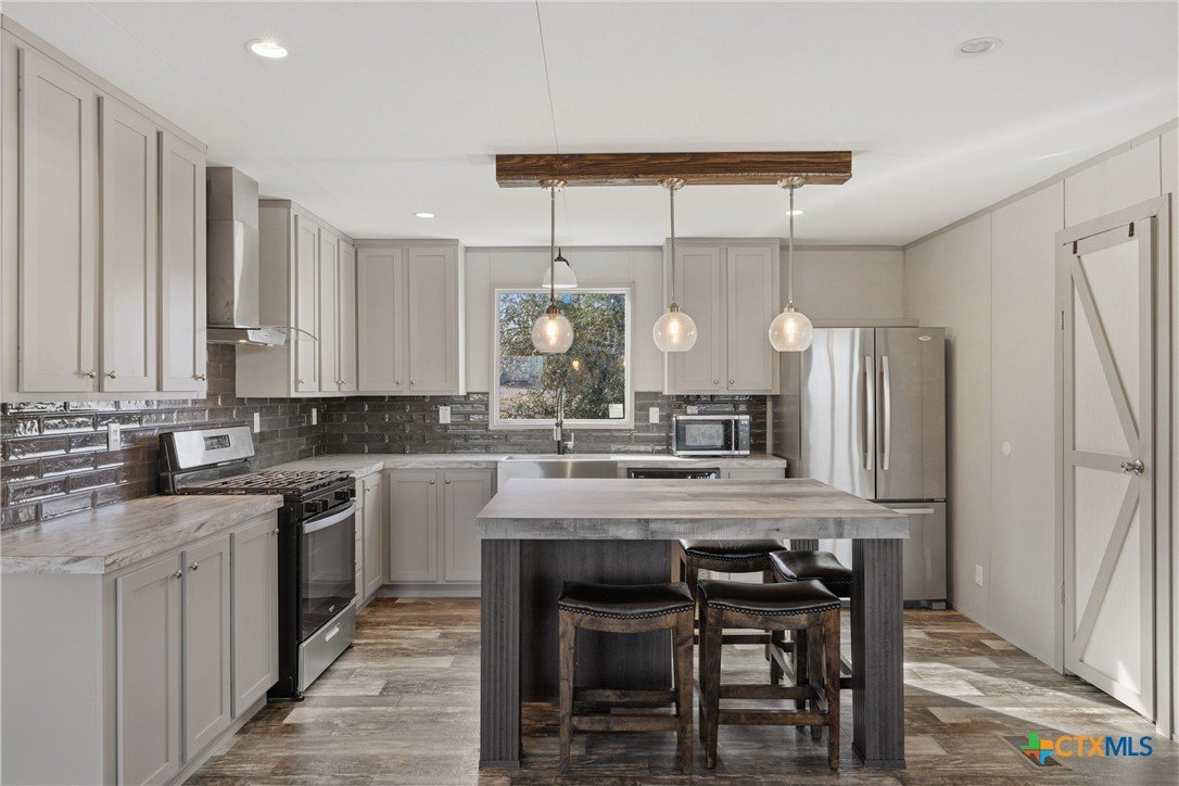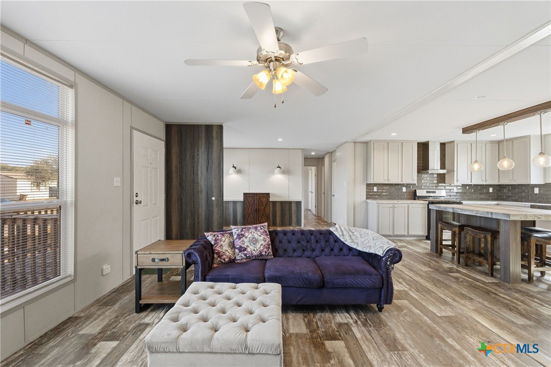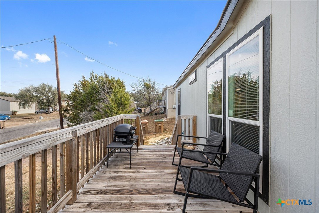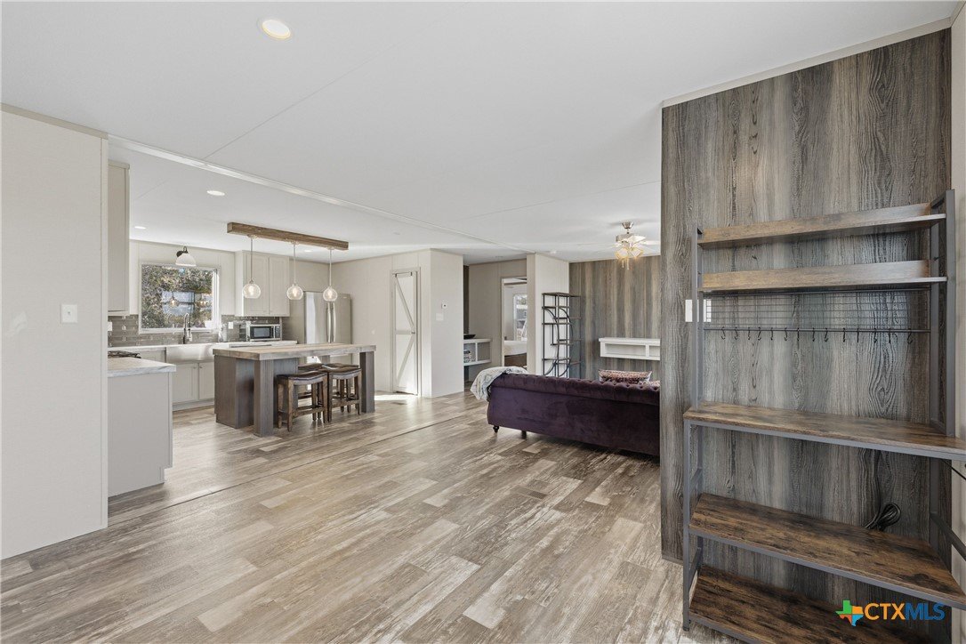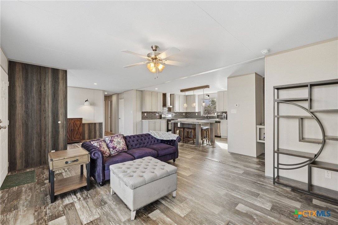 Tucked away in a quiet, no-through-traffic neighborhood just minutes from the heart of Johnson City, this beautifully updated and maintained 2023 manufactured home offers the perfect blend of privacy, comfort, and convenience. Set on a spacious lot shaded by mature oak trees, the home enjoys a peaceful setting with lovely views of the LCRA nature park from the front deck—an ideal spot to relax and take in the surroundings. Inside, the open and airy layout feels welcoming and functional, with thoughtful details throughout and a move-in-ready finish. With 1,568 square feet, three bedrooms, and two full baths, the home offers comfortable living spaces designed for everyday ease. The absence of carpet, combined with modern finishes, adds to the clean, low-maintenance appeal. Recent upgrades include a new water heater, propane heating, gas cooking, and a water softener system—enhancing both comfort and efficiency. Whether you’re looking for a peaceful primary residence or a well-kept Hill Country retreat close to town, this property delivers quiet living without sacrificing access to Johnson City’s shops, dining, and local attractions.
