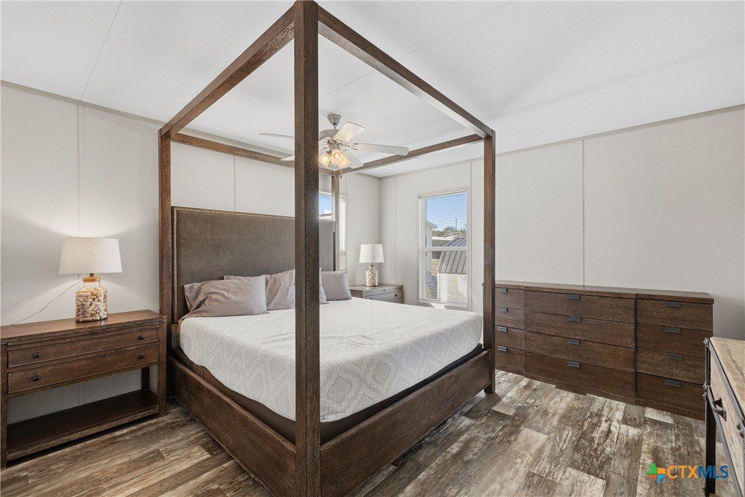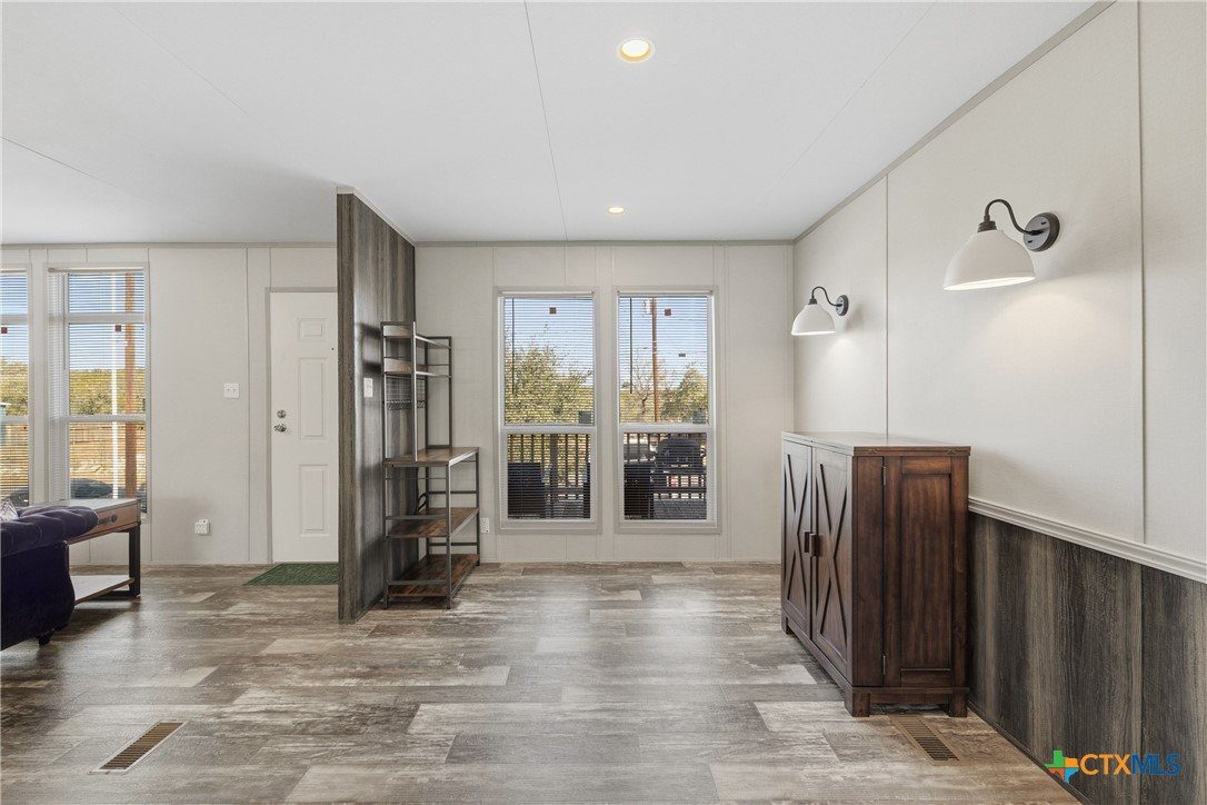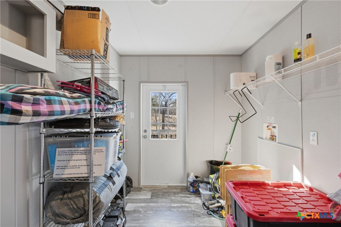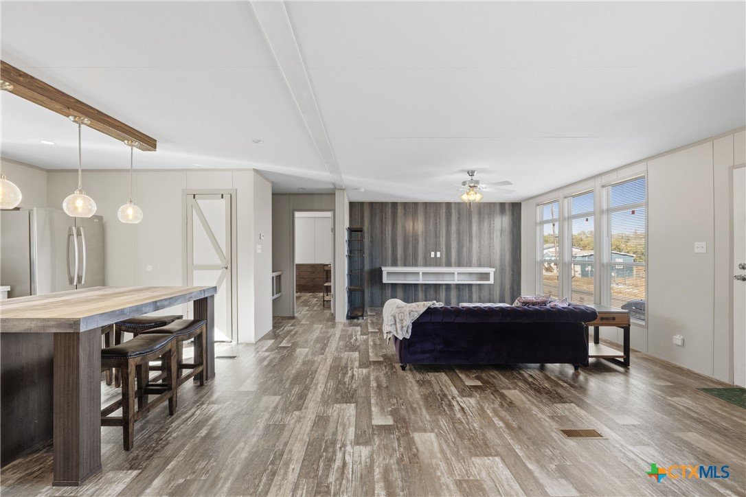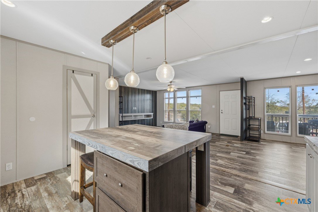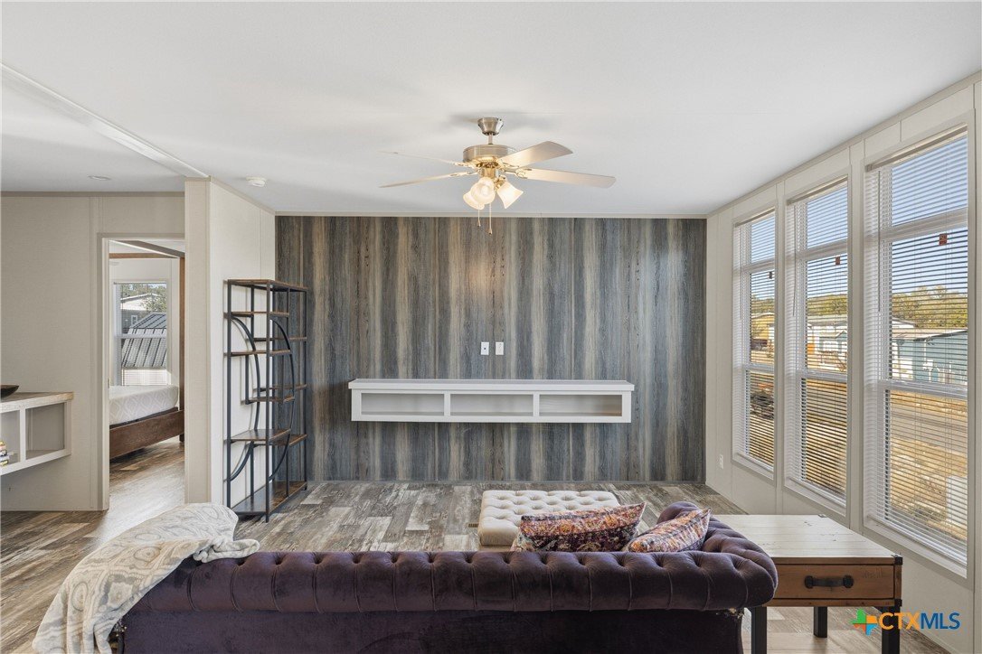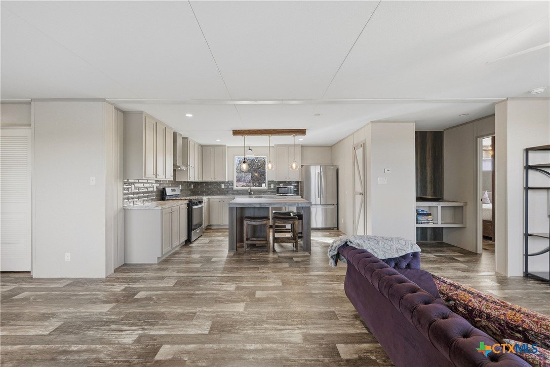 Tucked away in a quiet, no-through-traffic neighborhood just minutes from the heart of Johnson City, this beautifully updated and maintained 2023 manufactured home offers the perfect blend of privacy, comfort, and convenience. Set on a spacious lot shaded by mature oak trees, the home enjoys a peaceful setting with lovely views of the LCRA nature park from the front deck—an ideal spot to relax and take in the surroundings. Inside, the open and airy layout feels welcoming and functional, with thoughtful details throughout and a move-in-ready finish. With 1,568 square feet, three bedrooms, and two full baths, the home offers comfortable living spaces designed for everyday ease. The absence of carpet, combined with modern finishes, adds to the clean, low-maintenance appeal. Recent upgrades include a new water heater, propane heating, gas cooking, and a water softener system—enhancing both comfort and efficiency. Whether you’re looking for a peaceful primary residence or a well-kept Hill Country retreat close to town, this property delivers quiet living without sacrificing access to Johnson City’s shops, dining, and local attractions.