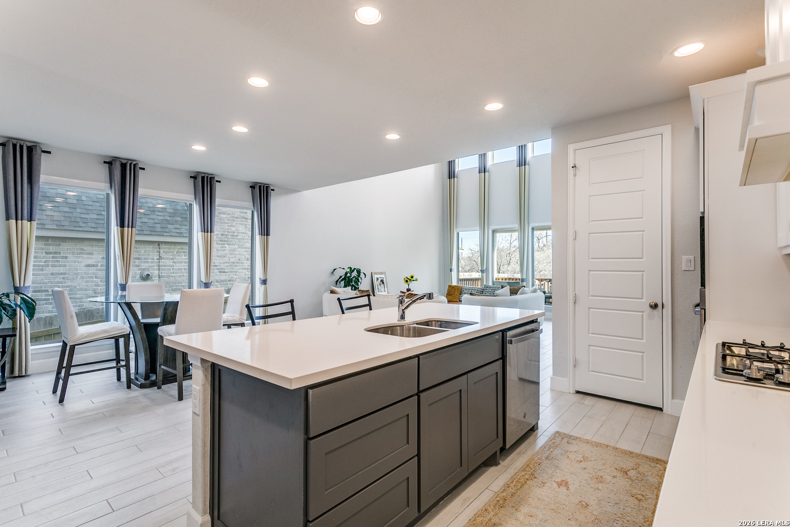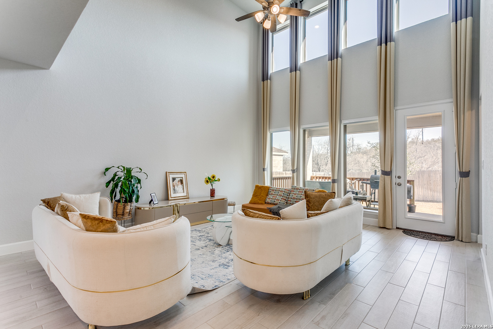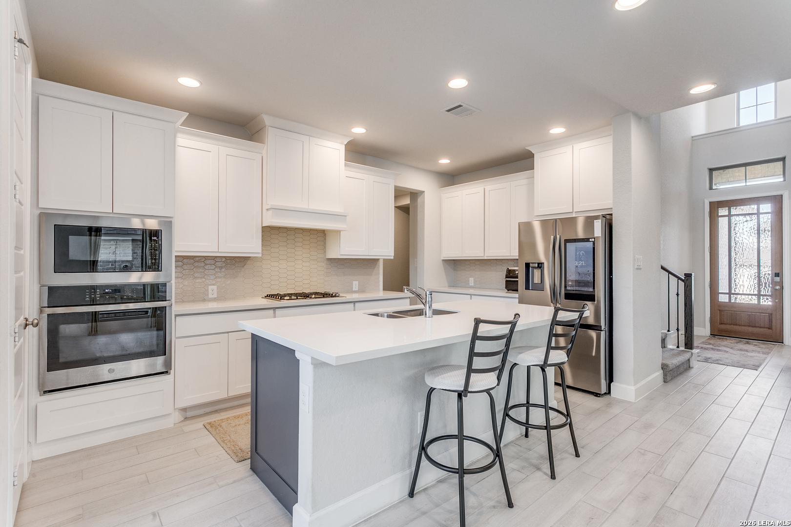 Stunning 2 story Perry Home in Arcadia Ridge, only 2 years old, offering 4 bedrooms plus a private office and an ideal layout for both everyday living and entertaining. Two bedrooms are located downstairs, including the spacious primary suite with a large soaking tub, separate shower, and dual vanities. The open floor plan is filled with incredible natural light, highlighted by soaring double ceilings and extra windows. The dream kitchen features a large island, built in appliances, and gas cooking, all overlooking the main living and dining areas. Upstairs you will find two additional bedrooms, a full bath, and a generous playroom or second living space. Situated at the entrance of a cul-de-sac, this greenbelt lot offers added privacy with minimal traffic. Enjoy the large, covered patio and peaceful outdoor setting. Built by Perry Homes, one of the most sought-after builders in the subdivision, known for quality construction and elevated design. Quick commute to shopping, restaurants and Lackland AFB.