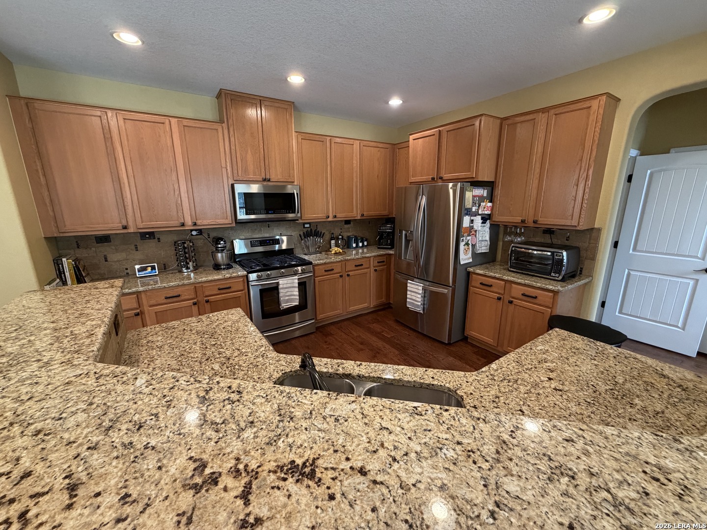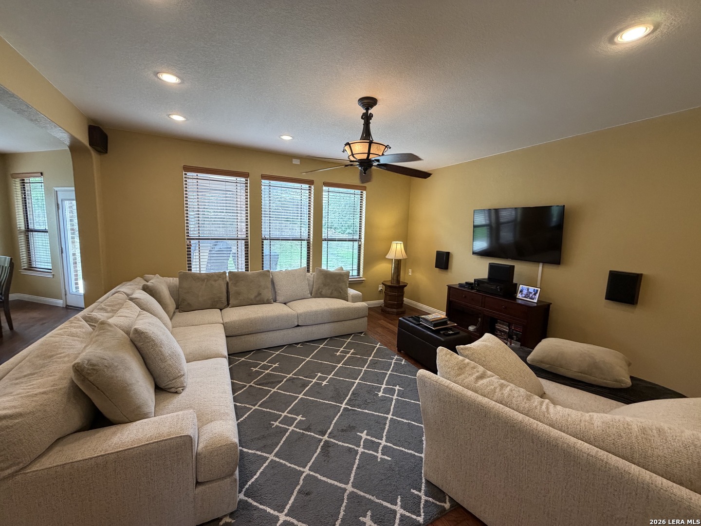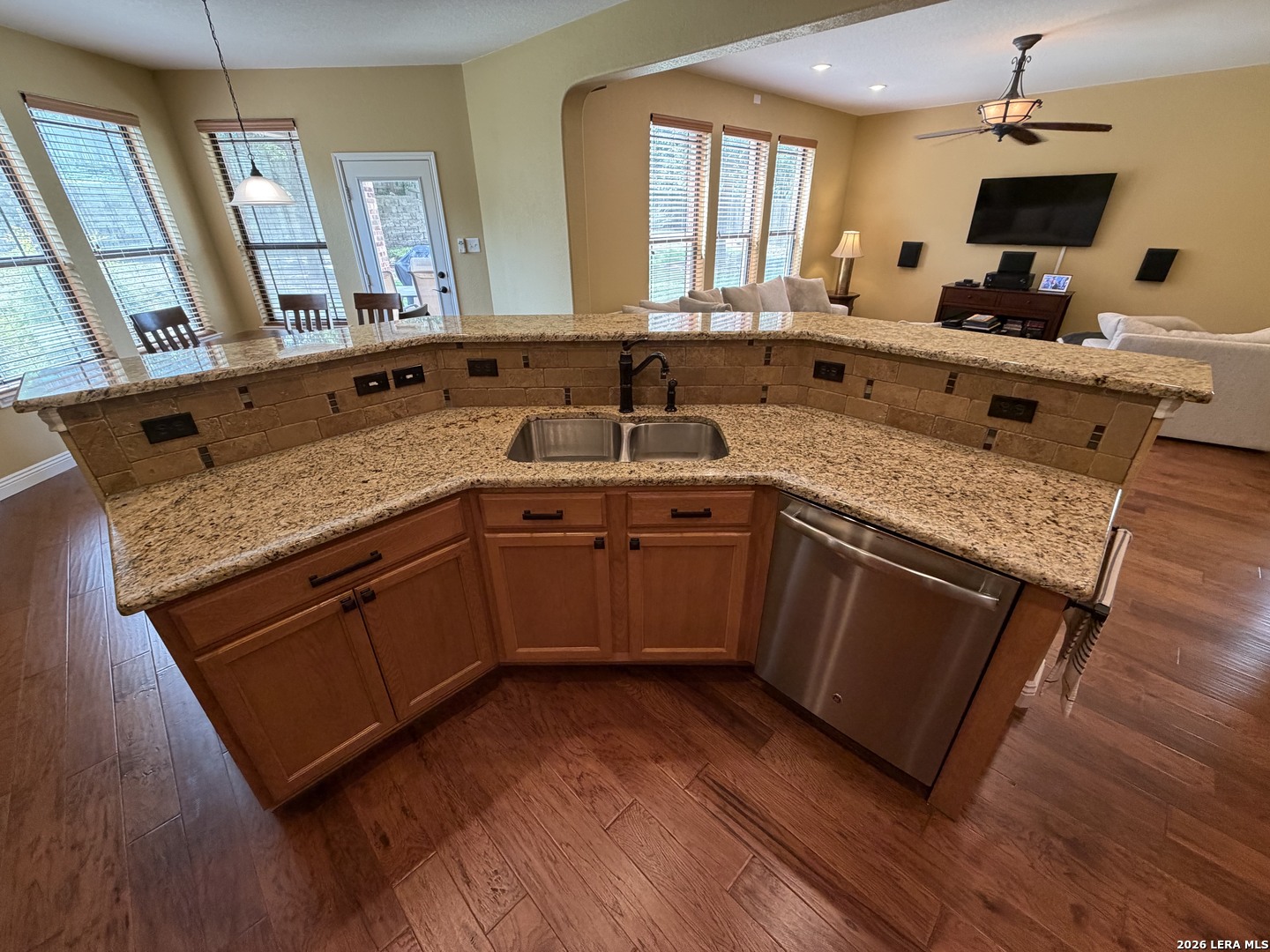INPECCABLY MAINTAINED! 4bd/2.5ba Masterpiece in heart of Stone Oak built on a .21-acre homesite at the end of a cul-de-sac! Surround yourself w/rich hand scraped hardwood floors, upgraded ceiling fans in every room & tons of recessed lighting. Office w/French doors & Separate Dining! Oil rubbed bronze plumbing fixtures, lighting fixtures & door hardware through-out. 8ft entry door! Kitchen features breakfast nook upgraded granite counter tops, upgraded backsplash, ss appliances, under cabinet wine glass rack, abundant cabinet space & gas cooking! Upstairs loft! HUGE King suite w/attached nursery/office space, separate shower/garden tub & dbl. vanities. BIG bedrooms w/large walk-in closets. Backyard retreat includes extended covered patio, mature trees, 6 box planters w/irrigation. NEISD Schools including Barbara Bush Middle school directly across the street from community & Reagan High School. Just down the street from HEB and plenty of shopping. FANTASTIC Stone Oak location!