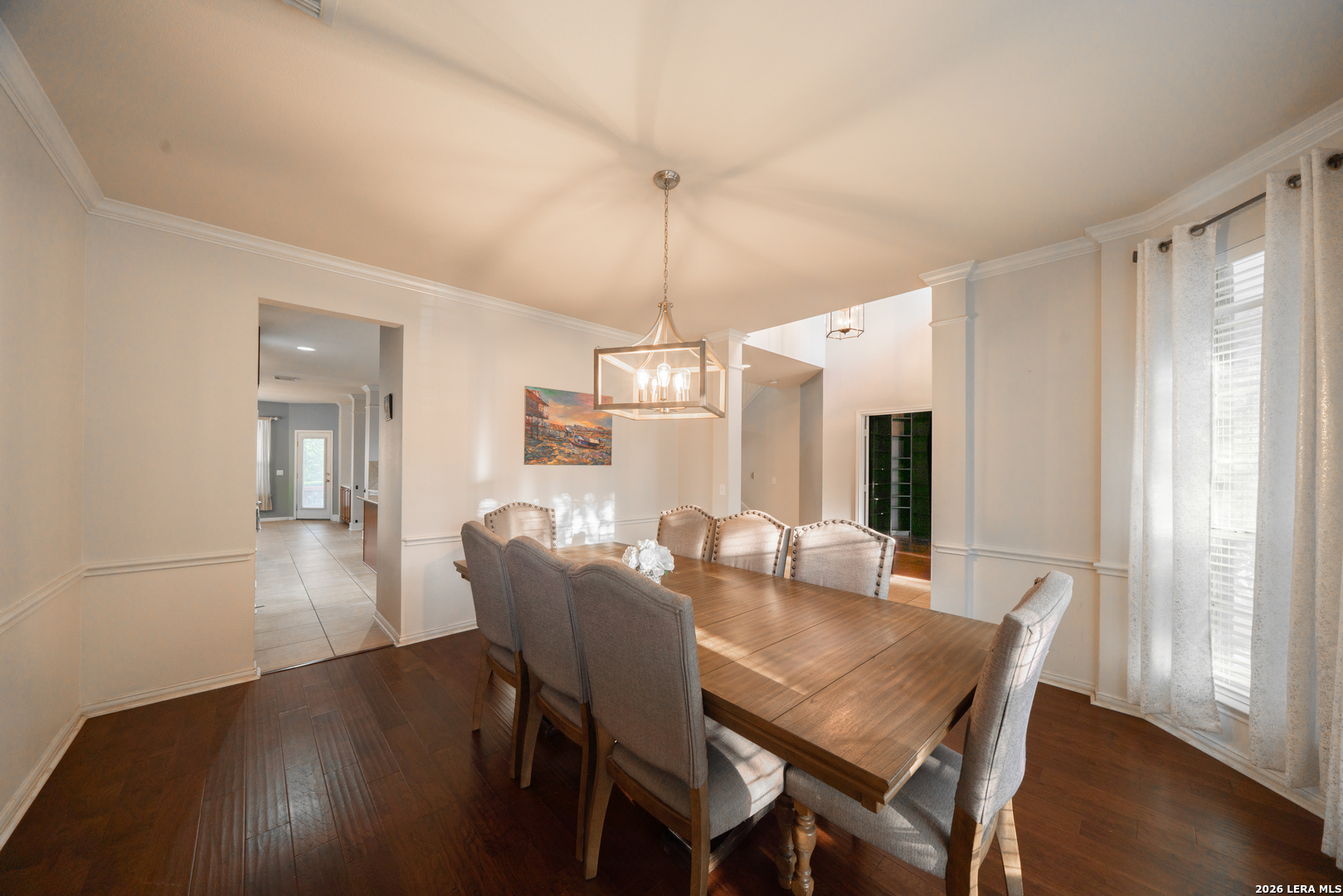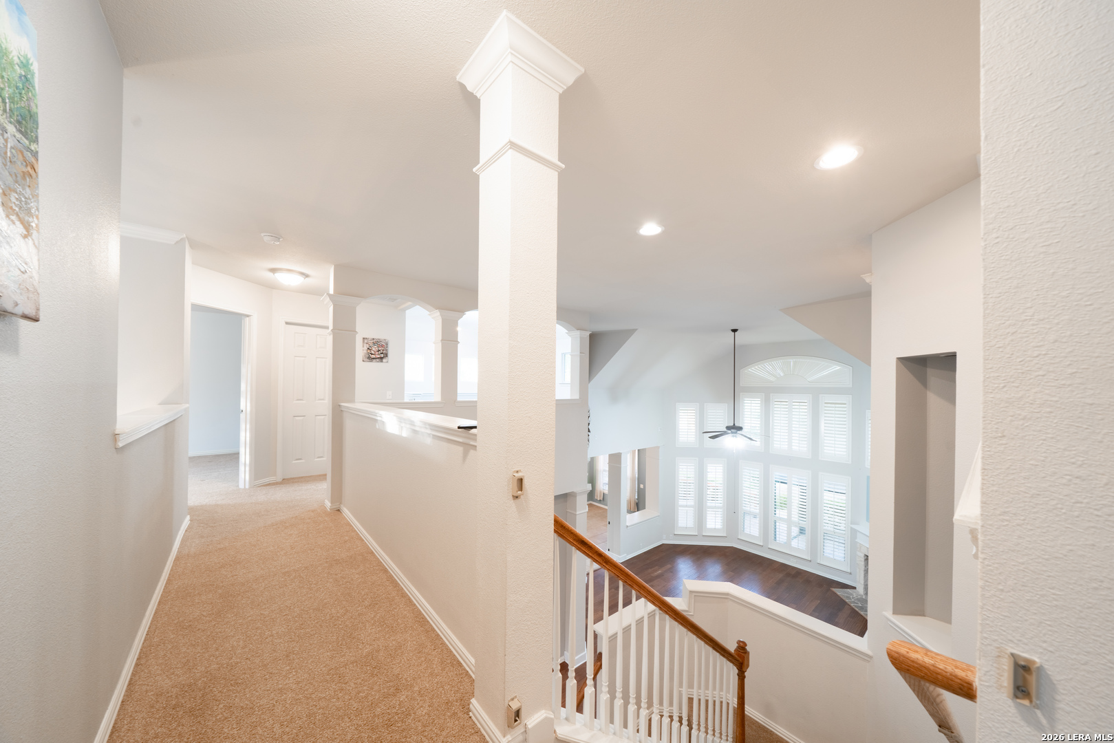 Welcome to this beautifully appointed two-story residence located in the highly desirable Hills at Iron Horse Canyon community, known for its highly sought after school district. Nestled among mature trees this property offers both charm and privacy. Thoughtfully designed with both elegance and functionality in mind, this home offers 4 bedrooms, 3.5 bathrooms, a dedicated office, formal dining room, and an impressive media room, perfect for modern living and entertaining. The spacious living area features high ceilings and a stunning rock fireplace, creating a warm yet grand focal point. The island kitchen is well-equipped for both everyday living and hosting, offering ample counter space and a seamless flow into the main living area and formal dining. The primary bedroom provides a relaxing retreat with an updated en-suite bathroom featuring a garden tub, separate standing shower, dual vanity sinks, and generous walk-in closets. Upstairs, additional bedrooms and the media room provide flexible space for families, guests, or recreation. Step outside to a backyard designed for both relaxation and entertaining, with multiple outdoor sitting areas, a covered patio, and a tranquil koi pond, all backing to a serene greenbelt that offers privacy and peaceful views. A well-equipped shed with added electricity provides excellent space for storage, hobbies, or projects. Additional highlights include a tandem 3-car garage, offering ample space for vehicles, storage, or a workshop setup. Recent updates add peace of mind, including a roof installed in 2016, both HVAC units replaced within the last few years, newer water heaters and garage wired with 100 amp 220V plug to charge an electric vehicle. With its blend of thoughtful design, spacious layout, mature landscaping, valuable upgrades, and prime location within a top-rated school district, this home presents an exceptional opportunity to enjoy comfort and elevated living in one of the area's most sought-after communities.