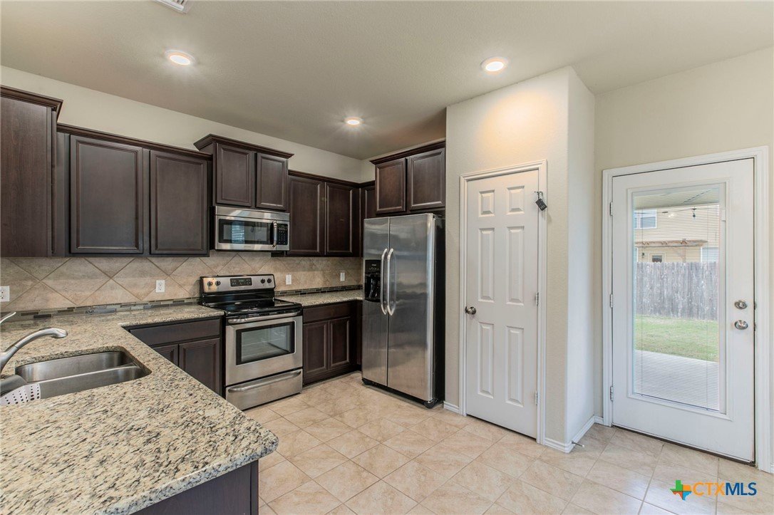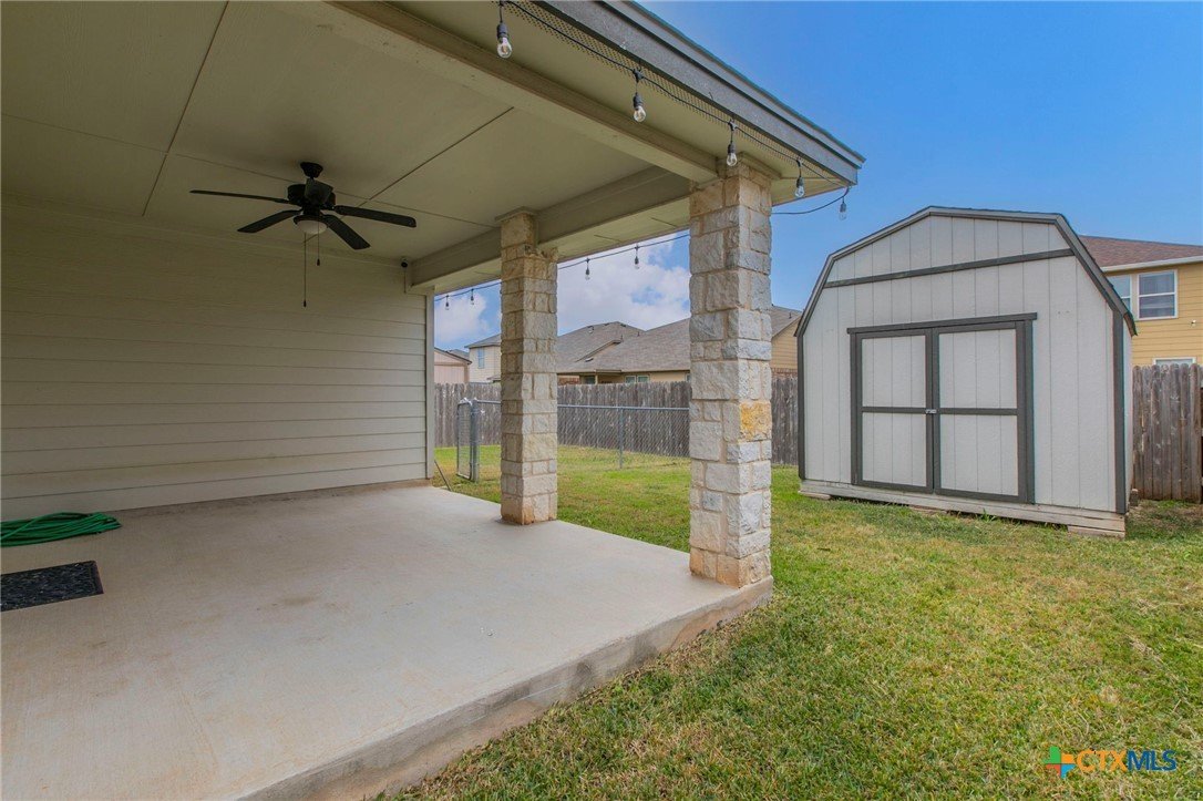 Welcome to this beautifully maintained 3-bedroom, 2-bath home, perfectly designed for comfort and convenience. Featuring a desirable split floorplan, the open concept living, dining, and kitchen areas create an inviting space for everyday living and entertaining. The kitchen is a chef’s delight with stainless steel appliances, granite countertops, and a spacious pantry. The living area flows seamlessly into the dining space, making gatherings effortless and has surround sound! Two generously sized guest bedrooms provide plenty of room, while the private master suite offers a spa-like retreat with dual vanities, a soaking tub, and a separate shower. Step outside to enjoy the covered back patio, ideal for relaxing evenings, along with a large storage unit and cross-fenced yard—perfect for furry friends. Located in the sought-after Belton School District, this home also offers access to a community pool and park. Don’t miss the chance to make this move-in ready home yours—you’ll be impressed by all it has to offer!