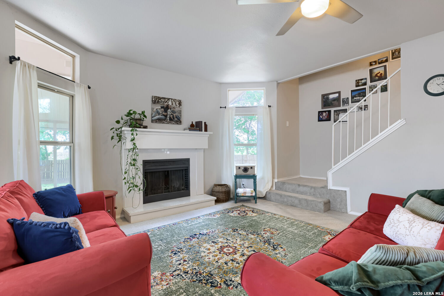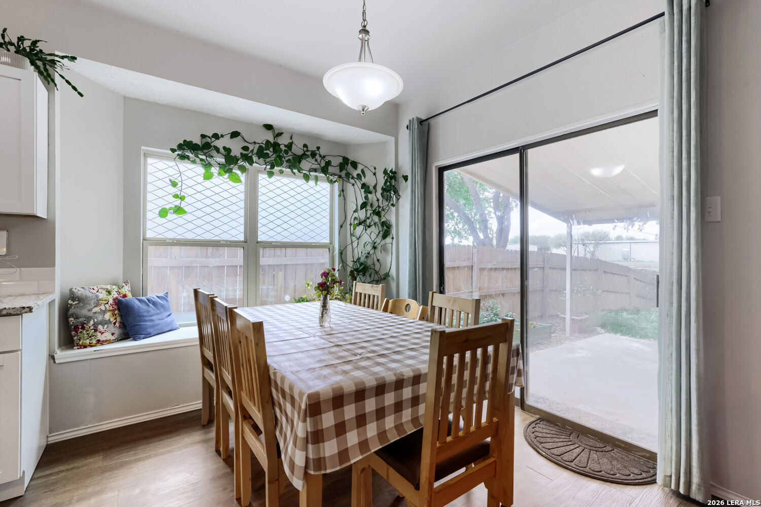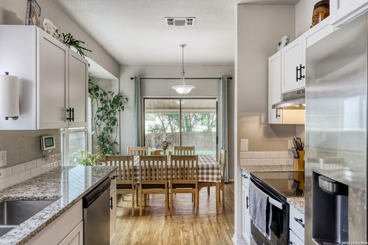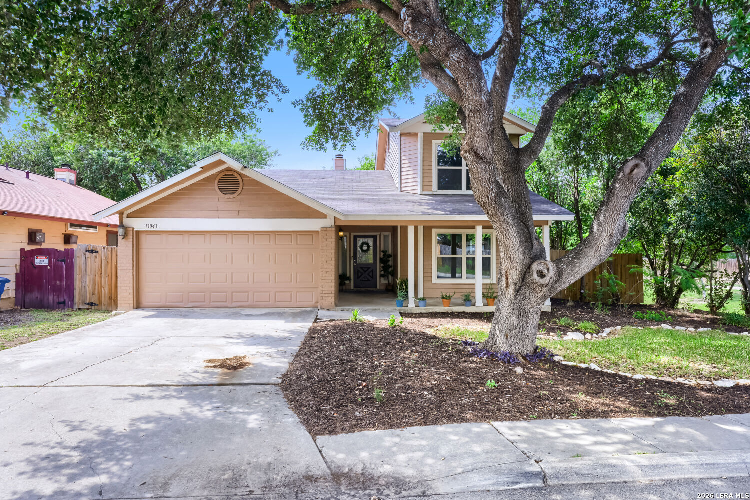 Discover comfort, convenience, and modern updates at 13043 Feather Ridge, a charming San Antonio home located right next door to a beautiful city park with no back neighbors. This move in ready property features a primary bedroom on the main level, a woodburning fireplace, and stylish luxury vinyl plank flooring. The functional galley kitchen is designed for efficiency and style, offering granite countertops, newer cabinetry, stainless steel appliances, and a classic subway tile backsplash. A large utility room/pantry provides exceptional storage space rarely found at this price point. Additional highlights include a large closet under the stairs, digital thermostat, some updated plumbing, warranty on the roof and foundation, and a 2 year old water heater for added peace of mind. The home also features a 2 car garage and a spacious covered patio, perfect for outdoor dining, entertaining, or relaxing in the shade. The backyard is set up for both fun and function with a sandbox, thornless blackberry bushes, and an already producing vegetable and flower garden. The front yard is beautifully landscaped with drought tolerant established perennials for easy upkeep and curb appeal. With direct access to the city park, this home offers a lifestyle of convenience and outdoor enjoyment while still being close to IH35, Sams Club, Ikea, restaurants, and a beautiful library.