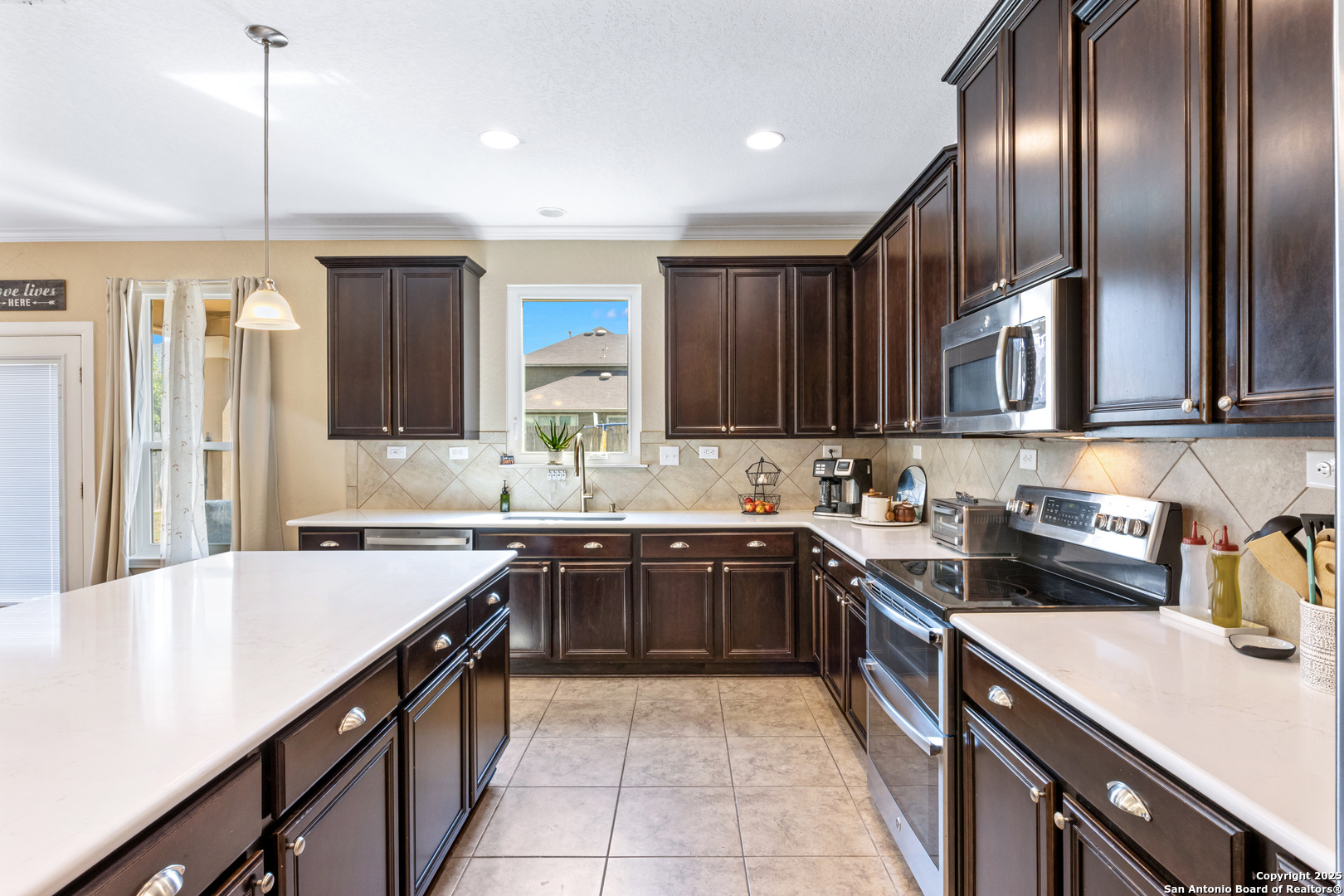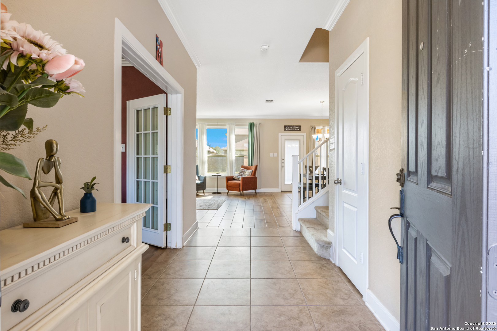 Located in the heart of Alamo Ranch, this beautifully upgraded home is tucked inside the highly sought-after Cobblestone gated community. Perfectly positioned near top-rated Northside ISD schools, major retailers, restaurants, and quick access to Loop 1604, this property offers both convenience and comfort. From the moment you arrive, you'll notice the stunning curb appeal with brick and stone accents, along with brand-new energy-efficient windows that elevate the home's look and performance. Inside, the inviting open layout features new tile flooring throughout the first floor. To the left of the entry, a spacious study filled with natural light makes the perfect home office. The open concept living and dining area flows seamlessly into the updated kitchen, which showcases brand-new quartz countertops, abundant cabinet and counter space, and appliances that are just two years old and all are included with the home. A convenient half bath is located downstairs for guests, along with an under-the-stairs storage closet for added space. As you make your way upstairs, a large loft offers the perfect spot for a second living area, media room, or game room. The primary suite boasts generous space, with his-and-hers walk-in closets, and a fully updated bath with a brand-new double vanity and shower/tub combo. Two additional spacious bedrooms, both with walk-in closets, share another beautifully remodeled bathroom. The backyard is a blank canvas ready for your personal touch, already featuring a covered patio and a brand-new fence on one side. Major upgrades provide peace of mind, including a freshly painted exterior and interior, a roof replacement completed at the end of 2023, and 25 paid-off solar panels that keep the average electric bill around only $20 per month. Combined with brand-new windows throughout, this home is truly super energy efficient, saving you money month after month. The property also comes with a water softener, a water heater that is only three years old, and the best part-many of these new upgrades include transferable warranties for the new owner. With community amenities that include a pool, playscape, and sports court, this home offers the perfect blend of style, efficiency, and peace of mind. Don't miss out on this rare opportunity, schedule your showing today!