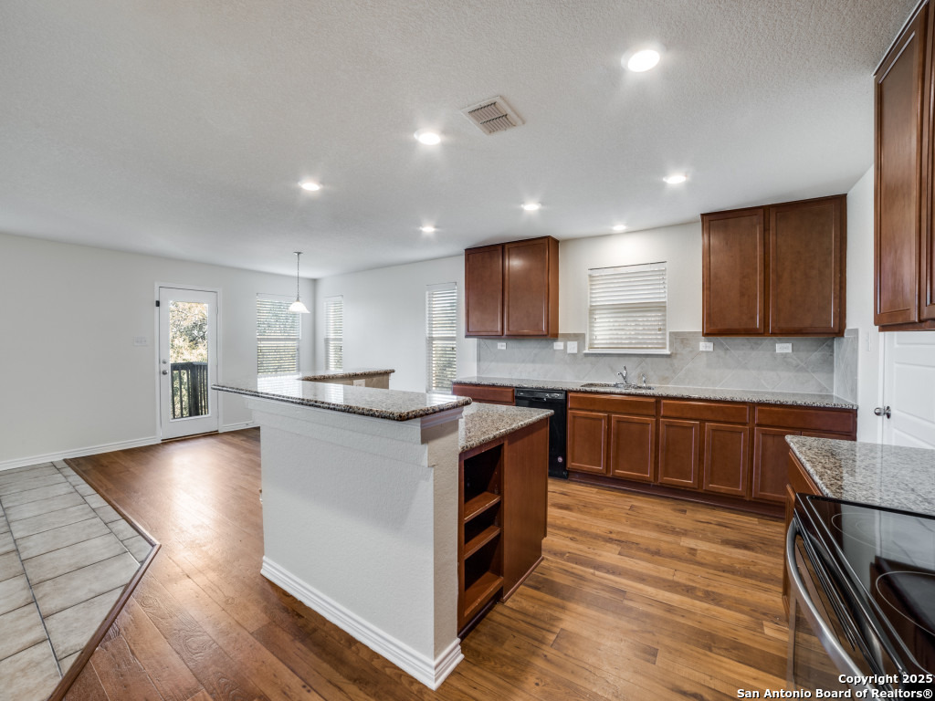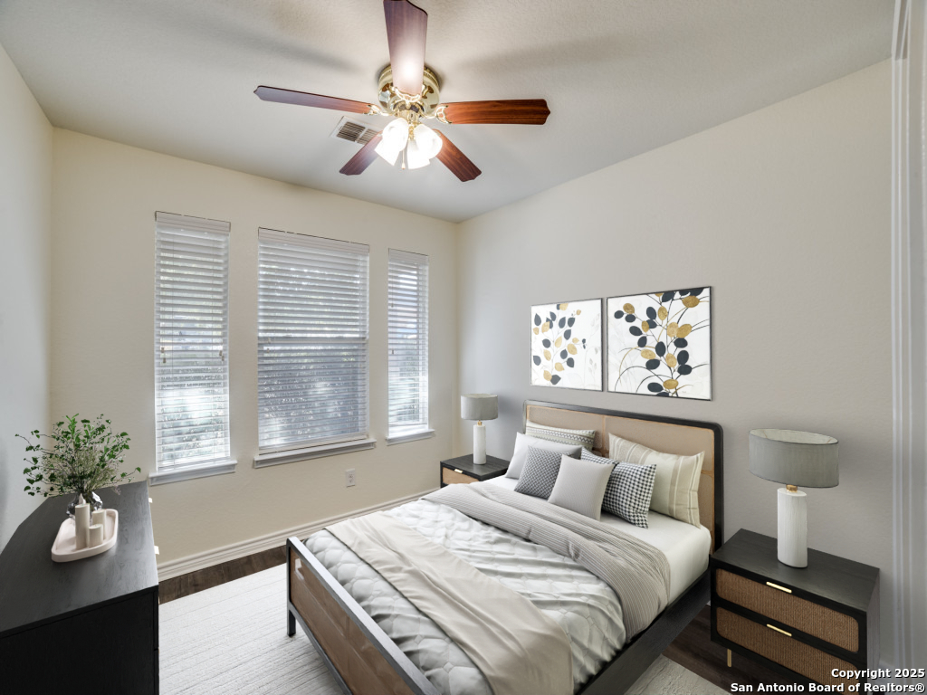 Welcome to this spacious and beautifully maintained home located on a true greenbelt lot in a quiet, cozy cul-de-sac within a desirable gated community. Offering 5 bedrooms and 3.5 bathrooms, this home features a highly functional layout with a secondary bedroom and full bathroom downstairs-perfect for guests or multigenerational living. Enjoy no carpet throughout, with ceramic tile and luxury plank vinyl flooring flowing through the entire home. The large, open-concept kitchen boasts an oversized island, abundant counter space, and ample cabinet storage-ideal for entertaining and everyday living. Expansive windows fill the home with natural light, enhancing the open floor plan and high ceilings. Upstairs, you'll find a roomy game room along with four additional bedrooms and two full bathrooms. Generous walk-in closets and well-designed spaces provide comfort for everyone. Step outside to your private backyard oasis backing to a peaceful greenbelt-perfect for relaxing or enjoying nature. Community amenities include a pool, and the home is conveniently located just minutes from Costco, Walmart, major shopping, dining, and offers easy access to the highway for a smooth commute. A rare combination of space, and location-this home is a must-see!