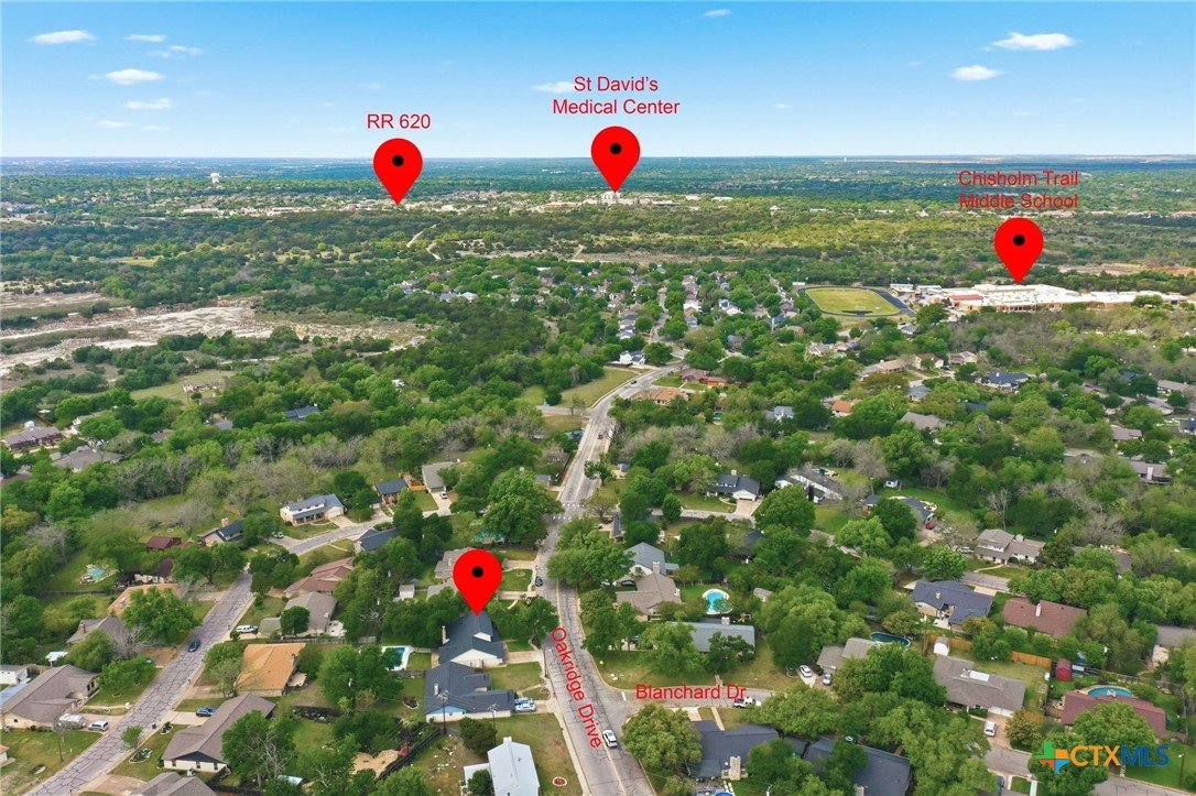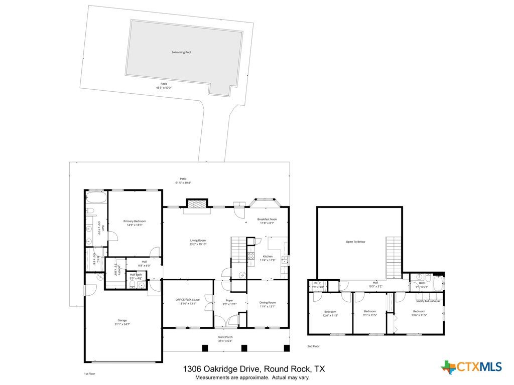 Here is your chance to own this great 2 story home in the award winning BEST Neighborhood in Round Rock. The home offers 4 bedrooms, 2.5 bath, 2 living, 2 dining, beautiful wood-look flooring throughout and an in-ground pool waiting for you to take a plunge off the diving board. Notice the long and inviting covered front porch just waiting for your rocking chairs. The 2nd living room has tall vaulted ceiling & wood burning fireplace. As you enter the entryway, the front living area is staged as an office Built-in bay window seat in breakfast area. Primary bedroom on main floor featuring full bath, granite double vanity & walk-in closet. Indoor utility on main floor w/extra storage. 2 A/C units. Beautiful mature shade trees. Murphy bed in 4th bedroom can convey. All 3 levels RRISD schools within walking distance in neighborhood. Showings will start on Friday, April 10th. Open House 4/10 from 5:00 to 7:00 p.m. and Saturday, April 11th from 10:00 a.m. to 3:00 p.m. Documents will be uploaded into the MLS this week.