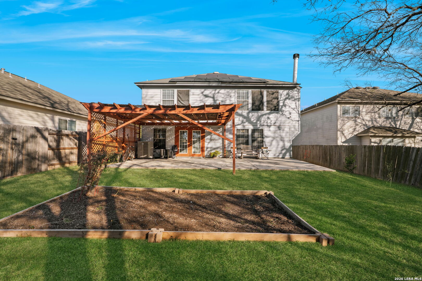 ** OPEN HOUSE on Saturday, 01/31/2026 from 12-3pm and Sunday, 02/01/2026 from 1-3pm ** This two-story home in San Antonio offers thoughtful upgrades, functional living spaces, and a desirable location with no back neighbors. Upgrades include solar panels and a water softener, adding efficiency and long-term value. The main level features a comfortable living room with a wood-burning fireplace, a dedicated formal dining room, a large pantry. The kitchen is designed for both everyday use and entertaining, featuring a kitchen island with breakfast bar and a stylish backsplash. All bedrooms are located upstairs, providing separation between living and resting areas. The primary bedroom is generously sized and includes a walk-in closet. An upstairs area that can be used as game room or home office. The backyard is designed for outdoor enjoyment and privacy, complete with a patio slab, wooden pergola, garden bed, and privacy fence. The front of the home provides direct access to a park and dog park, enhancing everyday convenience. Ideally situated with easy access to Loop 1604, close to HEB, and offering a short commute to Lackland Air Force Base, this home is also located within the award-winning Northside ISD. Refrigerator and security cameras are excluded from the sale.