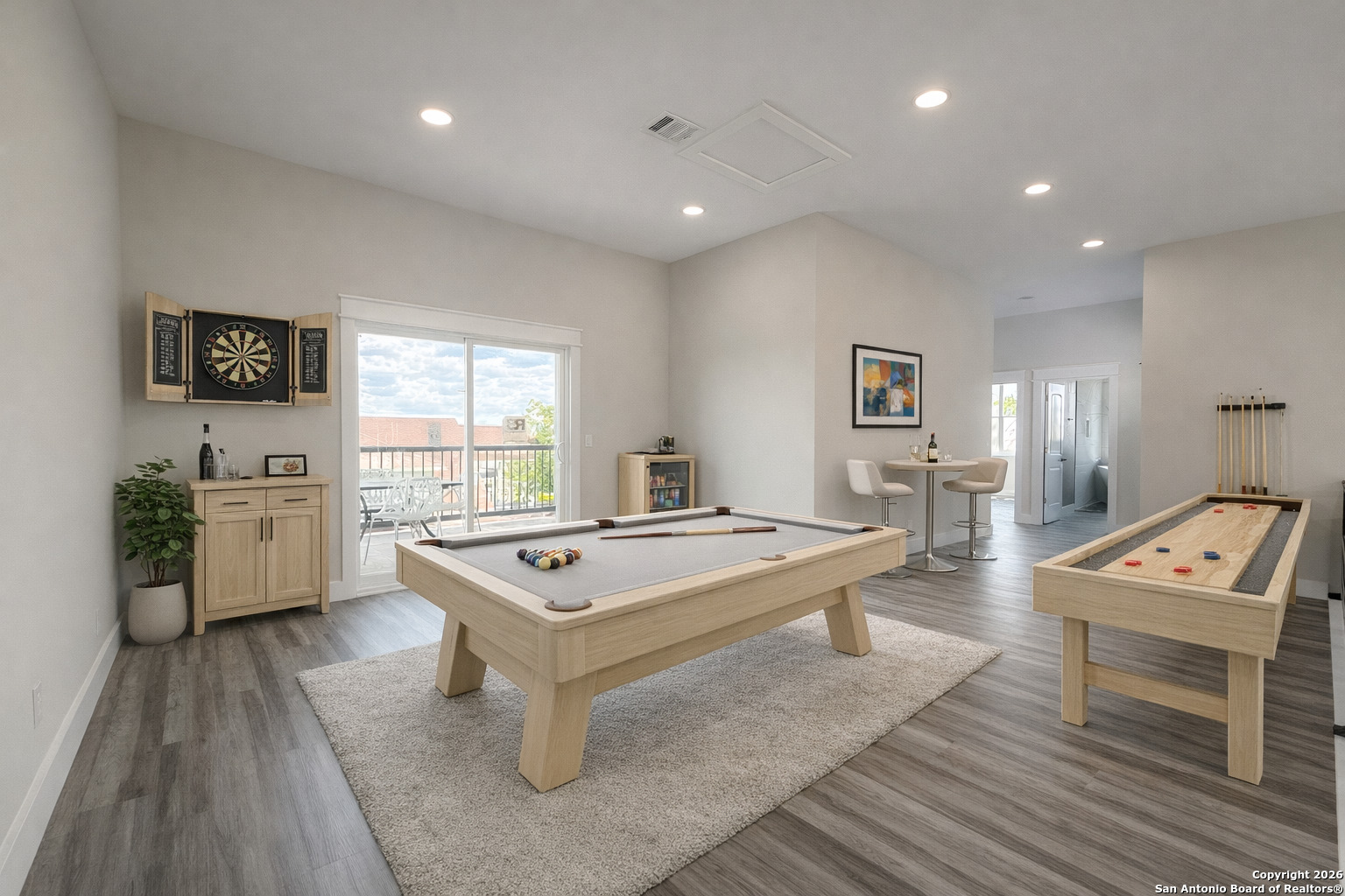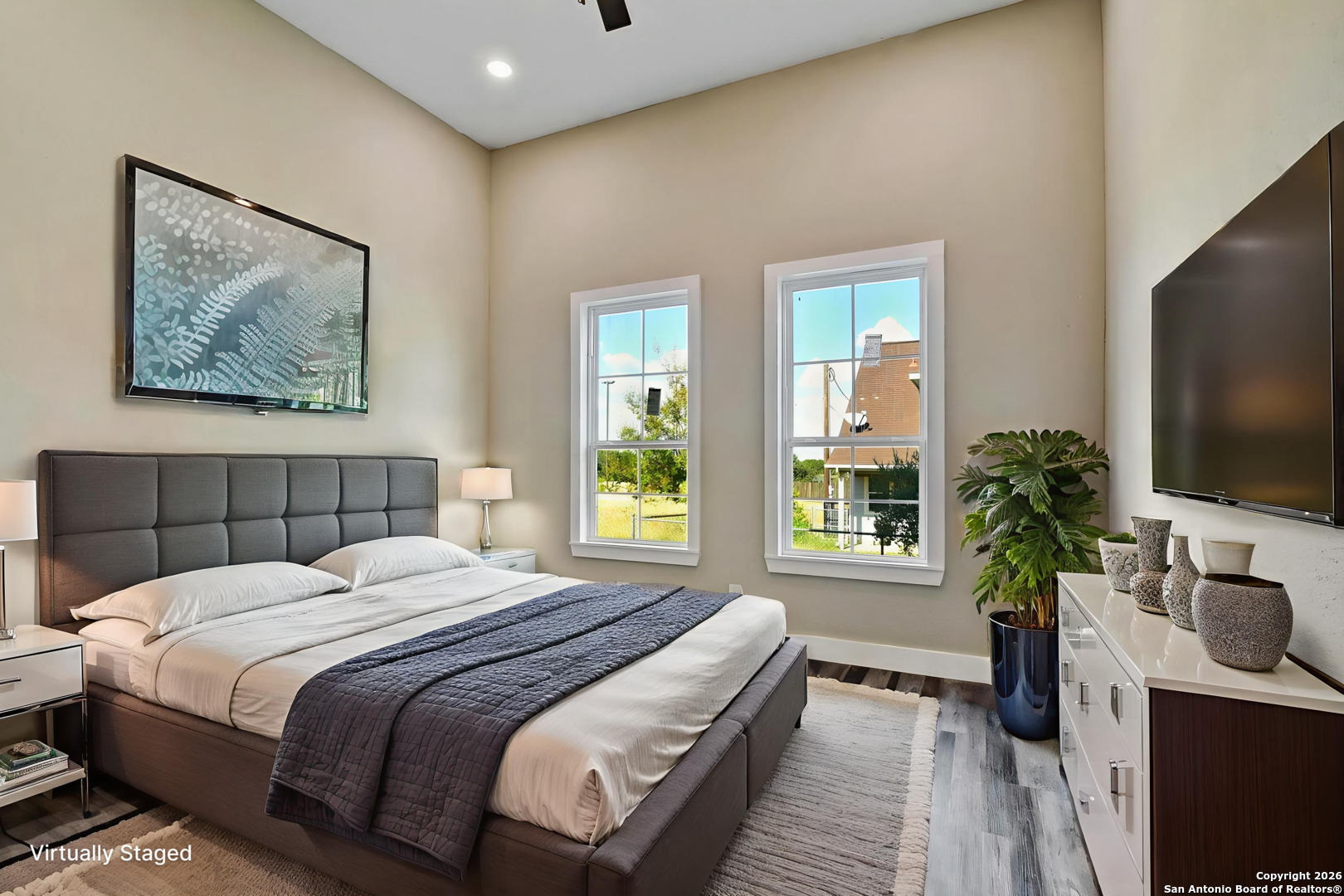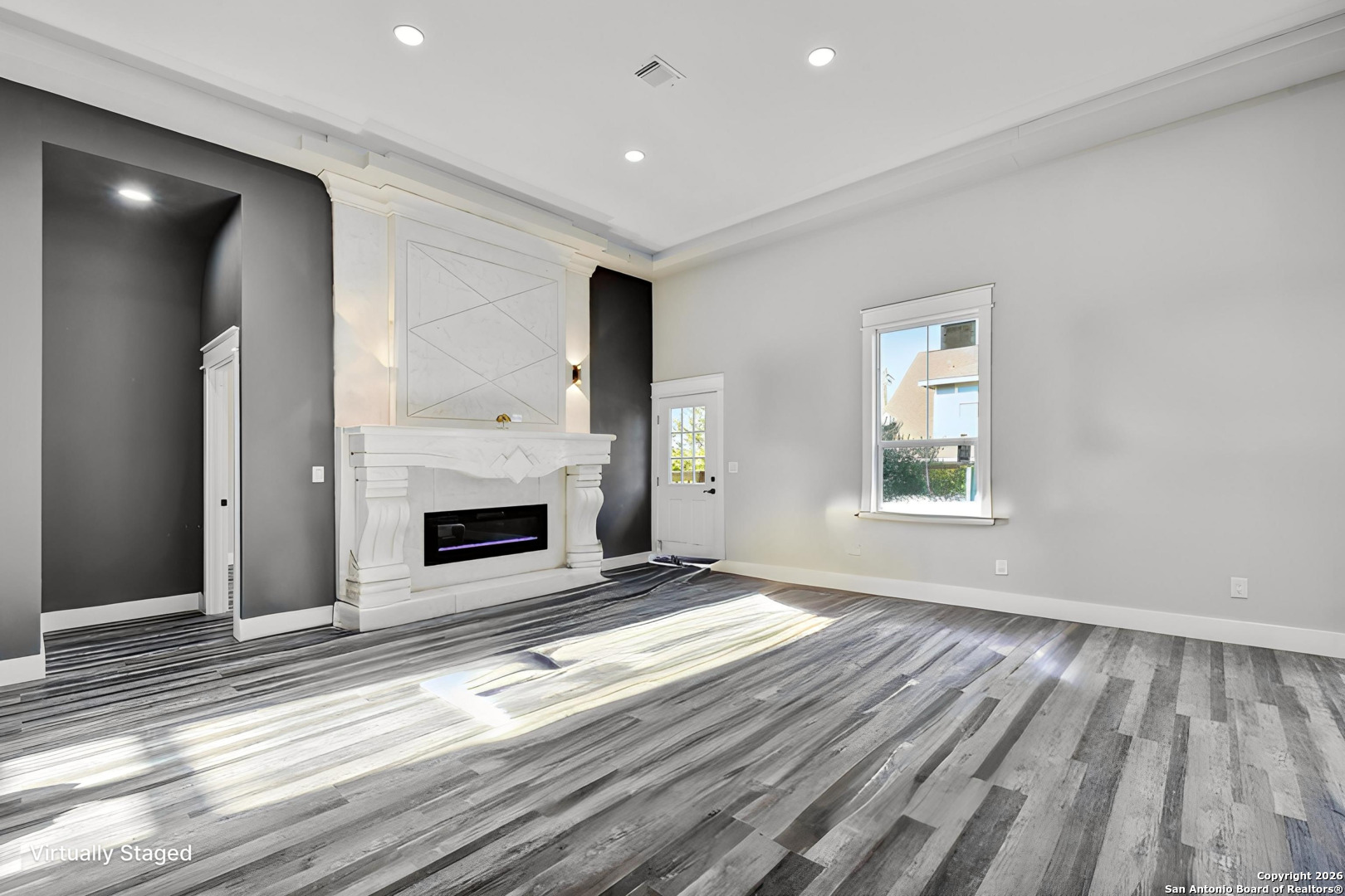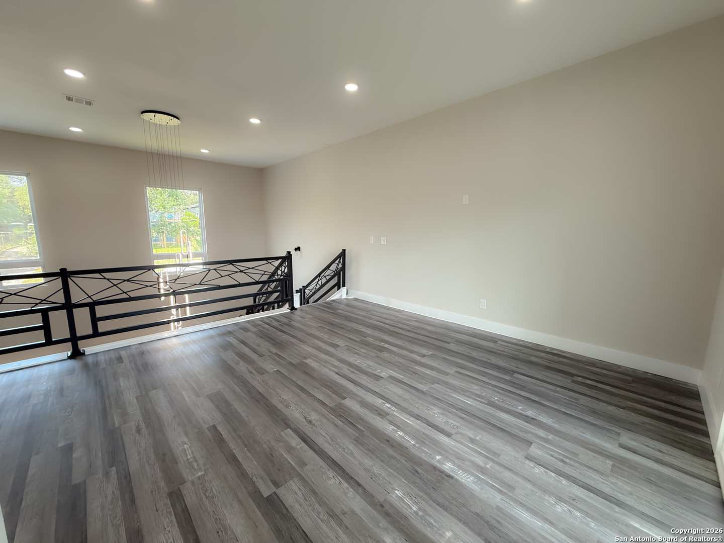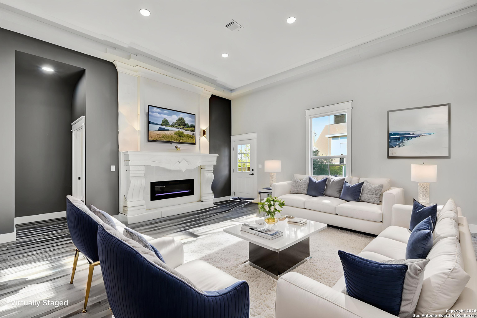 Discover modern luxury just steps from Canyon Lake at 131 Friendlywood, Canyon Lake, TX. This stunning new construction home, built in 2024 and never lived in, offers beautiful lake views and access to neighborhood amenities-perfectly blending style, comfort, and location. A covered second-floor balcony provides the ideal spot to enjoy peaceful lake vistas, while the grand entry welcomes you into a dramatic first floor with soaring 13-foot ceilings. The open-concept design seamlessly connects the living, dining, and kitchen spaces, creating an entertainer's dream atmosphere enhanced by a sleek linear electric fireplace, curved staircase, custom wood wall paneling, and a stylish wet bar. The elegant kitchen shines with chic cabinetry, quartz countertops, ample prep space, and a striking waterfall island-designed for both everyday living and hosting guests. This thoughtfully designed home features three bedrooms, two and a half bathrooms, a versatile game room or loft, walk-in pantry, dedicated laundry room, oversized garage, and a low-maintenance yard-offering both functionality and modern appeal. A rare opportunity to own a brand-new, contemporary home near Canyon Lake with views, amenities, and exceptional design throughout.