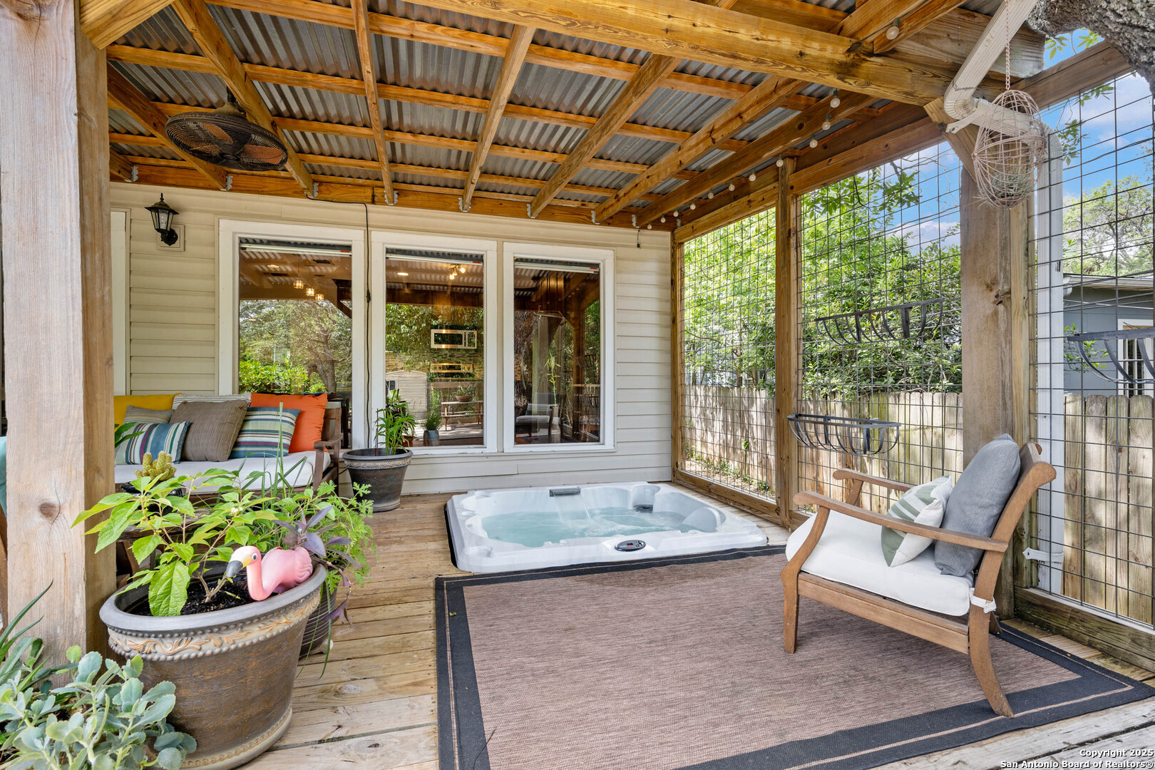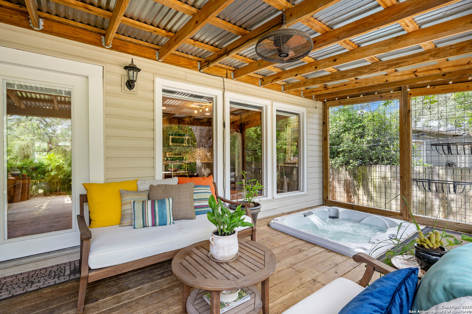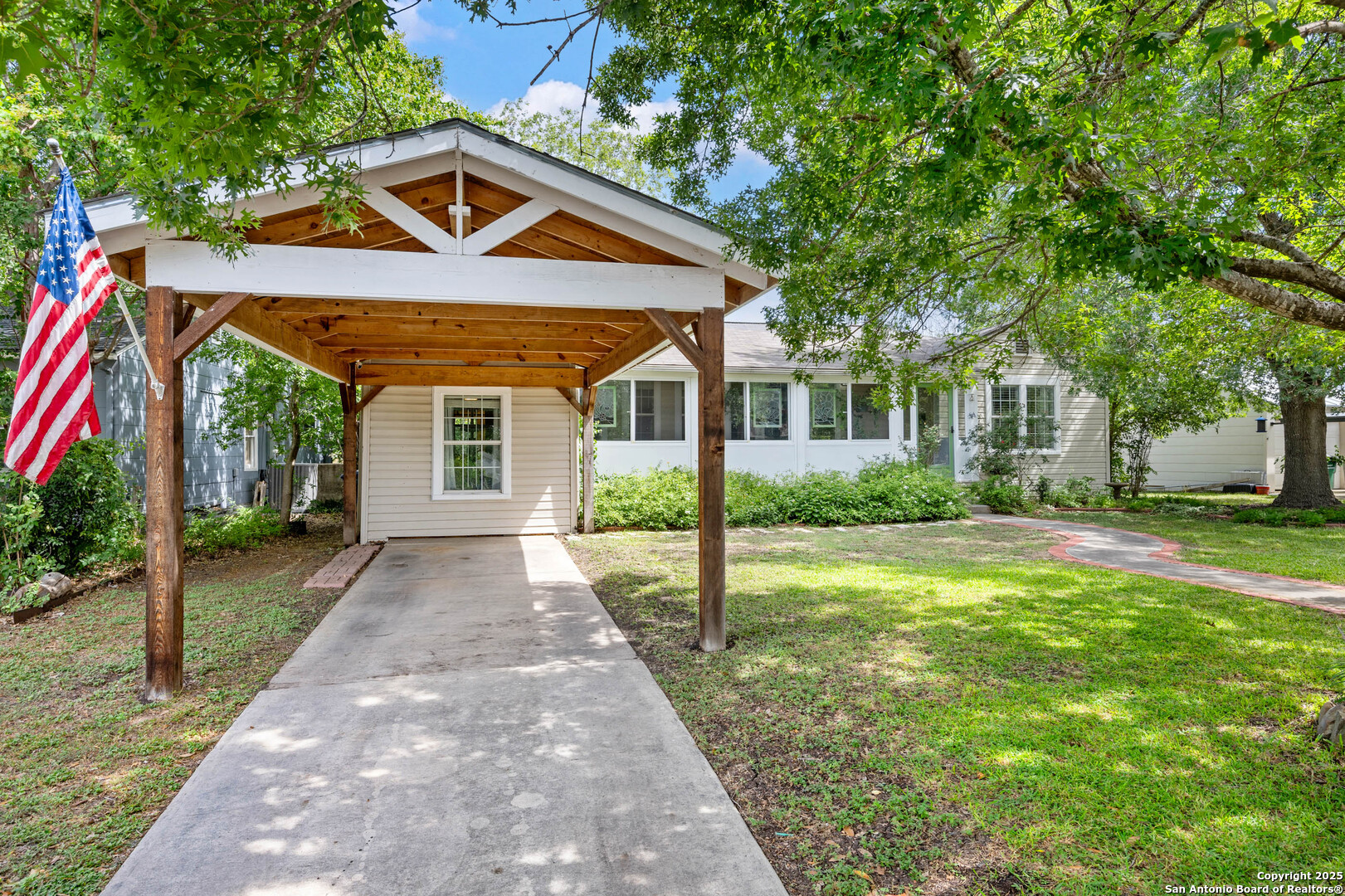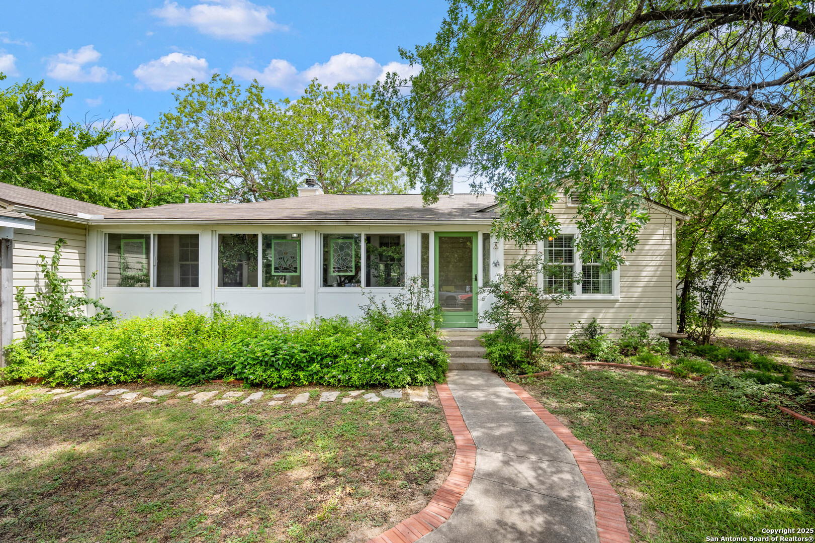 ***ASSUMABLE VA LOAN 2.78 % with $319,000 balance to qualified VA buyers*** Nestled in the highly desirable Terrell Hills neighborhood, this stunning single-story home offers 4 bedrooms and 3 bathrooms on a generous 1/3-acre lot. An enclosed front porch welcomes you into the home, providing a charming entrance. The large entry foyer opens into the living room, which features beautiful wood flooring and a cozy fireplace, creating a warm and inviting atmosphere. The open dining room is perfectly positioned next to the kitchen, with easy access to the back patio for seamless indoor-outdoor living. The kitchen is a chef's dream, with abundant cabinetry, granite countertops, stainless steel appliances, an island for extra prep space and storage, and a breakfast bar for casual dining. The kitchen's many windows offer views into the expansive backyard, allowing natural light to fill the space. The private primary bedroom suite provides a peaceful retreat with a double vanity, tub/shower combo, and a spacious walk-in closet. Nicely sized secondary bedrooms offer comfort and flexibility, with guest bathrooms conveniently located nearby. Step outside to the oversized covered deck, built in hot tub / spa ideal for entertaining or relaxing, which leads to a level backyard with lush greenery. A garden shed offers additional storage space for tools and gardening supplies. This home is ideally located with easy access to Hwy 281 and I-410, just minutes from the airport, the San Antonio Zoo, local shopping, and exceptional dining options.