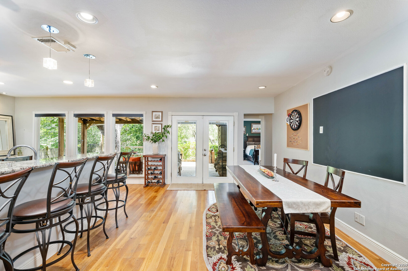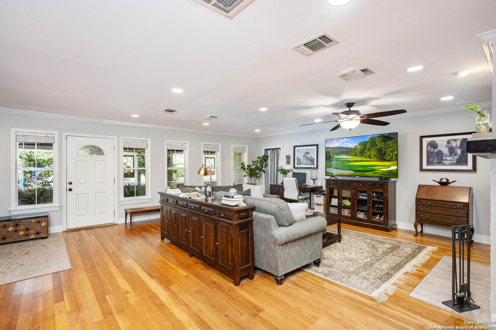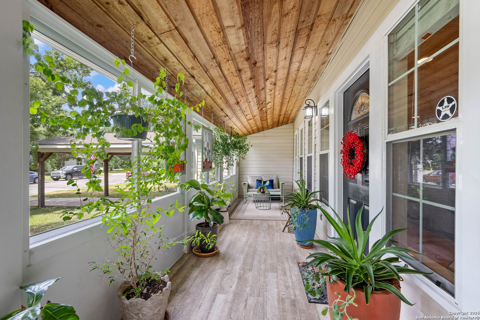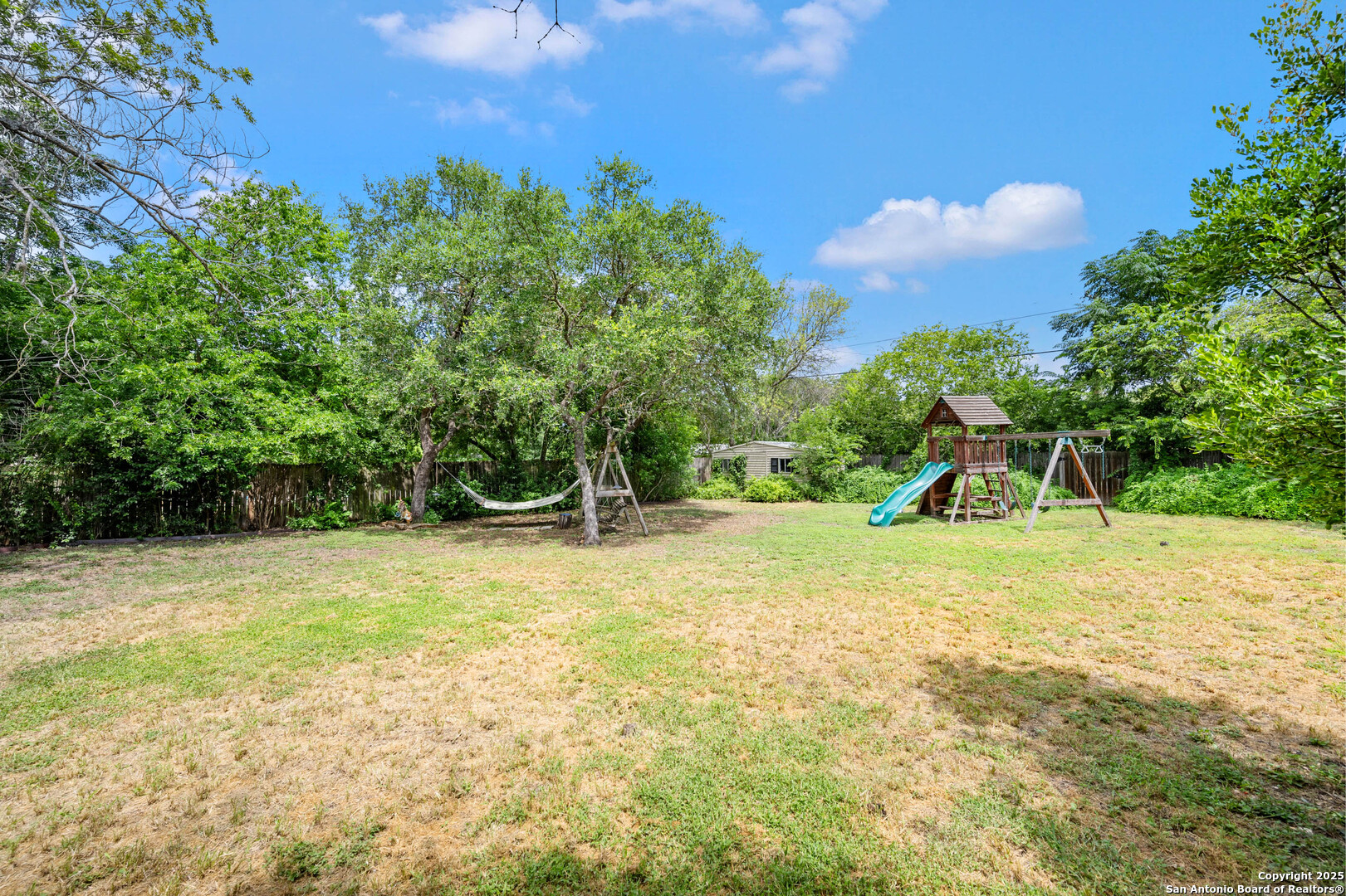 ***ASSUMABLE VA LOAN 2.78 % with $319,000 balance to qualified VA buyers*** Nestled in the highly desirable Terrell Hills neighborhood, this stunning single-story home offers 4 bedrooms and 3 bathrooms on a generous 1/3-acre lot. An enclosed front porch welcomes you into the home, providing a charming entrance. The large entry foyer opens into the living room, which features beautiful wood flooring and a cozy fireplace, creating a warm and inviting atmosphere. The open dining room is perfectly positioned next to the kitchen, with easy access to the back patio for seamless indoor-outdoor living. The kitchen is a chef's dream, with abundant cabinetry, granite countertops, stainless steel appliances, an island for extra prep space and storage, and a breakfast bar for casual dining. The kitchen's many windows offer views into the expansive backyard, allowing natural light to fill the space. The private primary bedroom suite provides a peaceful retreat with a double vanity, tub/shower combo, and a spacious walk-in closet. Nicely sized secondary bedrooms offer comfort and flexibility, with guest bathrooms conveniently located nearby. Step outside to the oversized covered deck, built in hot tub / spa ideal for entertaining or relaxing, which leads to a level backyard with lush greenery. A garden shed offers additional storage space for tools and gardening supplies. This home is ideally located with easy access to Hwy 281 and I-410, just minutes from the airport, the San Antonio Zoo, local shopping, and exceptional dining options.