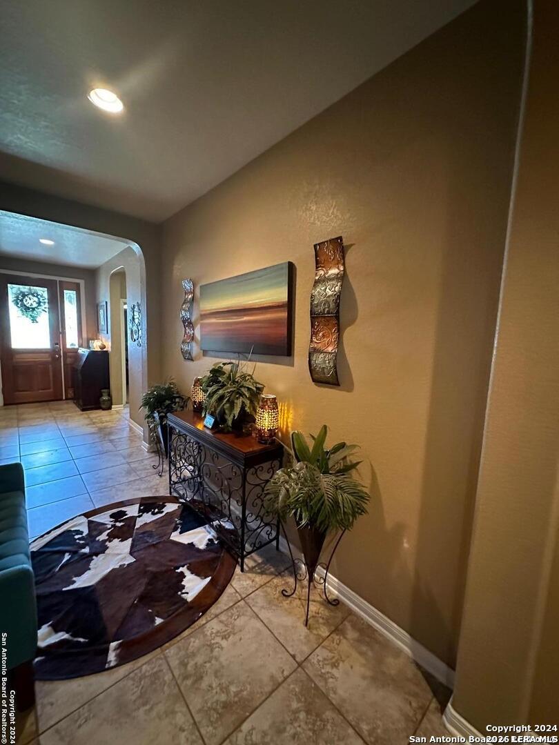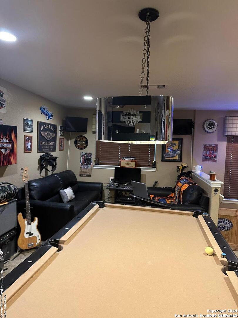 Welcome to this exquisite 4-bedroom, 3-bathroom residence nestled within a prestigious, gated community ensuring privacy and security. Outside of the city limits. This two-story home offers a harmonious blend of elegance and functionality, designed for both comfort and style. A grand entryway with high ceilings and a welcoming atmosphere. An expansive open-concept living room with large windows that flood the space with natural light. Ideal for both relaxed family gatherings and elegant entertaining. A chef's dream kitchen equipped with state-of-the-art appliances, including a beer keg and wine bar, a large island with seating, and generous cabinet space. Custom wood and glass door to the pantry. Granite counter tops. The kitchen flows seamlessly into two dining areas for easy meal service and entertaining. This space is perfect for both casual meals and formal dinners, with a design that emphasizes comfort and sophistication. A luxurious Primary bedroom with ample space, large windows, and a walk-in closet. The suite provides a private retreat with easy access to a spacious en-suite bathroom. Primary bathroom features a double vanity, a soaking tub, and a separate walk-in shower, creating a spa-like experience. Two more generously sized bedrooms, each with their own closet space and access to a full bathroom. Located on the first floor. Full bathroom, ensuring convenience and comfort for the additional bedrooms, also equipped with double vanities and a linen closet, ensuring ample space for family or guest. Step up into the ultimate entertainment haven located on the upper floor of this stunning home. The game room is designed to offer endless fun and relaxation for all ages, combining stylish decor with high-tech features to create an unforgettable experience. High-quality soundproofing ensures that the noise from the game room stays contained, so you can enjoy your games and activities without disrupting the rest of the house. This generously sized game room offers ample space for a variety of activities and is thoughtfully designed with an open layout to accommodate multiple game stations and lounging areas. Fourth bedroom and full bath also located upstairs. High-quality flooring throughout the home, 18 inch travertine tiles in hallway, dining, bathrooms and kitchen. Custom wood blinds in every room. Ceiling fans installed through-out the home. Alarm system, full household intercom and sound system. A spacious driveway leads to a large, attached garage with ample space for multiple vehicles. This home boast of 9ft ceilings. A beautifully landscaped backyard, perfect for outdoor activities and entertaining. The area includes an extended patio with large hot tub, full stone pizza oven and fire place entertainment in the back yard. Custom wood door to the back patio. Side yard fenced for additional gardening and storage. There is also a fully furnished option on this home.