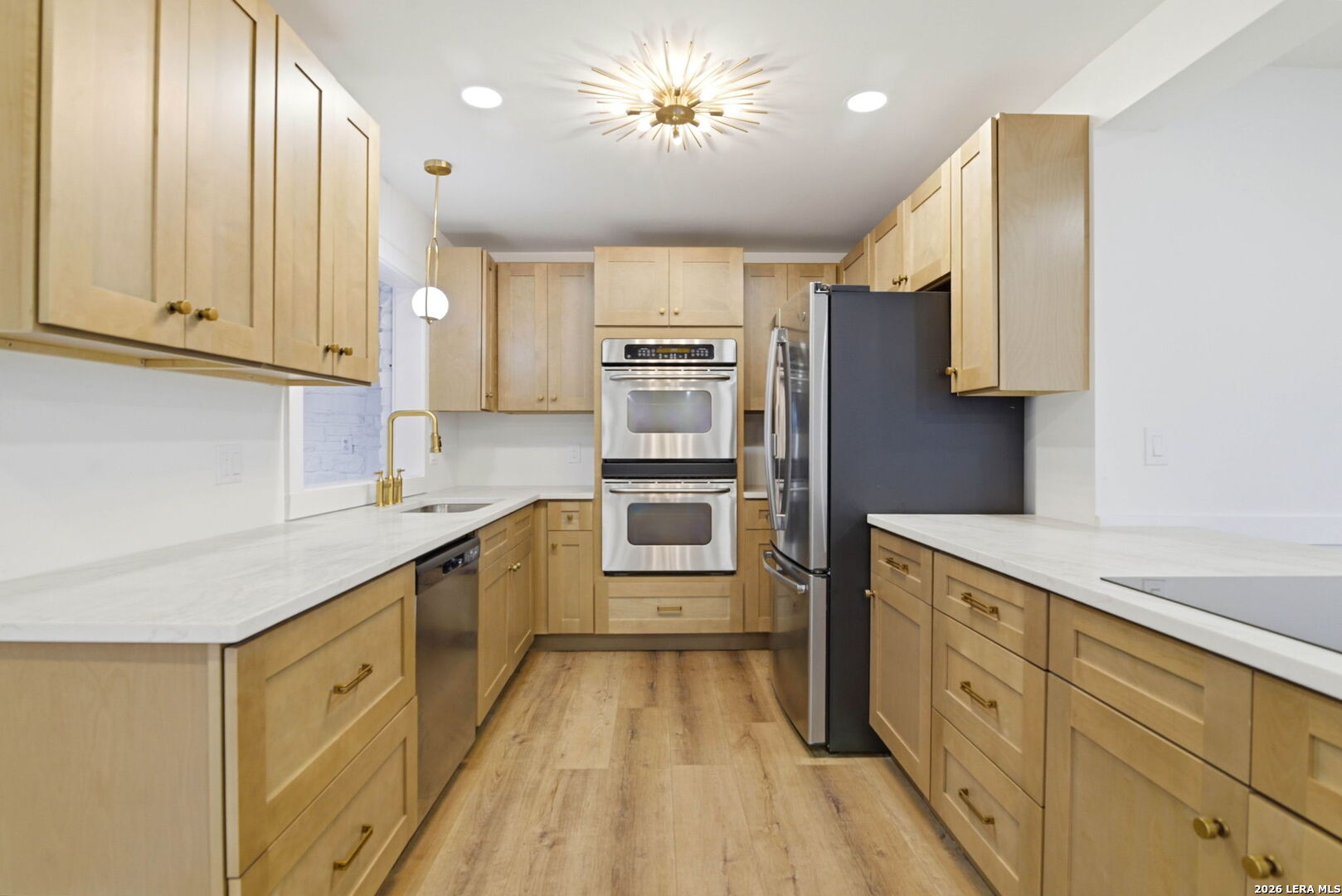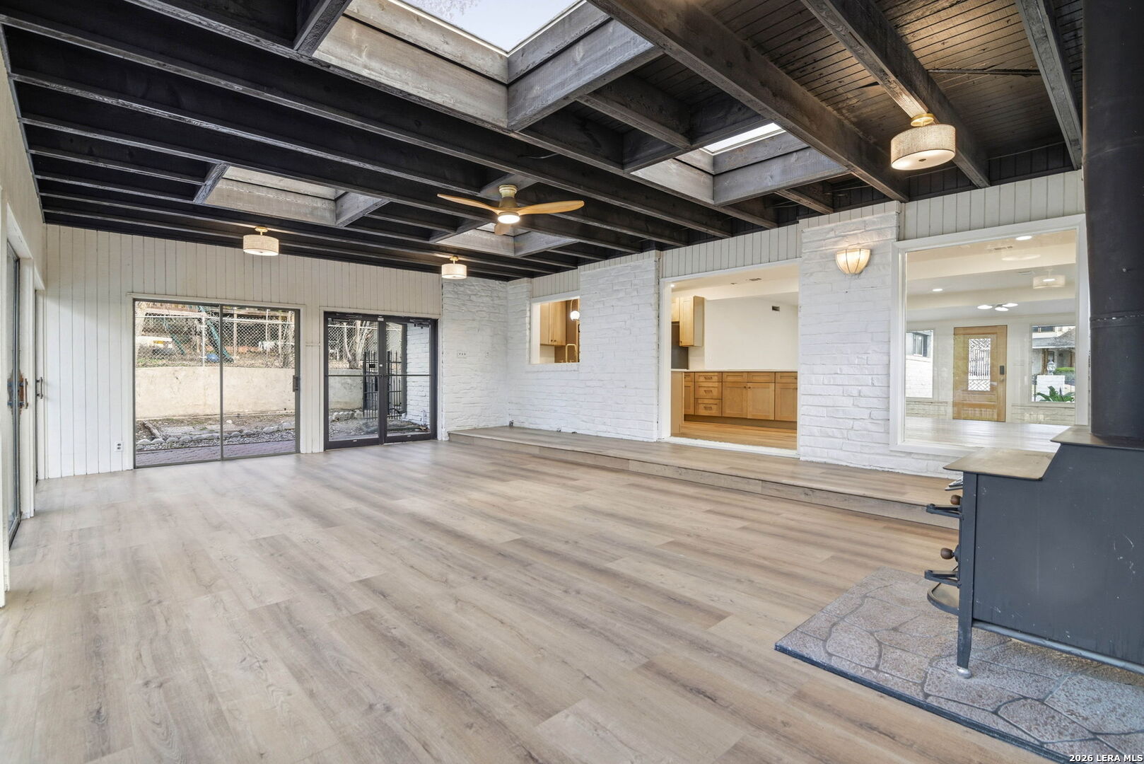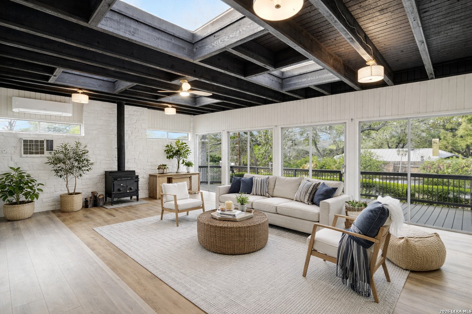 Beautifully remodeled single-story home in the highly coveted Terrell Hills neighborhood. This thoughtfully designed residence features an inviting open floor plan with the kitchen positioned at the front of the home, seamlessly flowing into the main living areas, perfect for both everyday living and entertaining. The kitchen showcases custom cabinetry and quality finishes that complement the home's clean, modern design. Natural light fills the home, leading into a charming sunroom that opens directly to the outdoor wrap-around deck and pool area, creating a seamless indoor-outdoor lifestyle. The living space is anchored by a cozy fireplace, adding warmth and character. This one-level home offers 4 spacious bedrooms and 2 beautifully updated bathrooms, combining comfort, functionality, and style. Situated on a quiet street in a desirable neighborhood, the property provides both privacy and convenience while maintaining a refined, welcoming atmosphere.