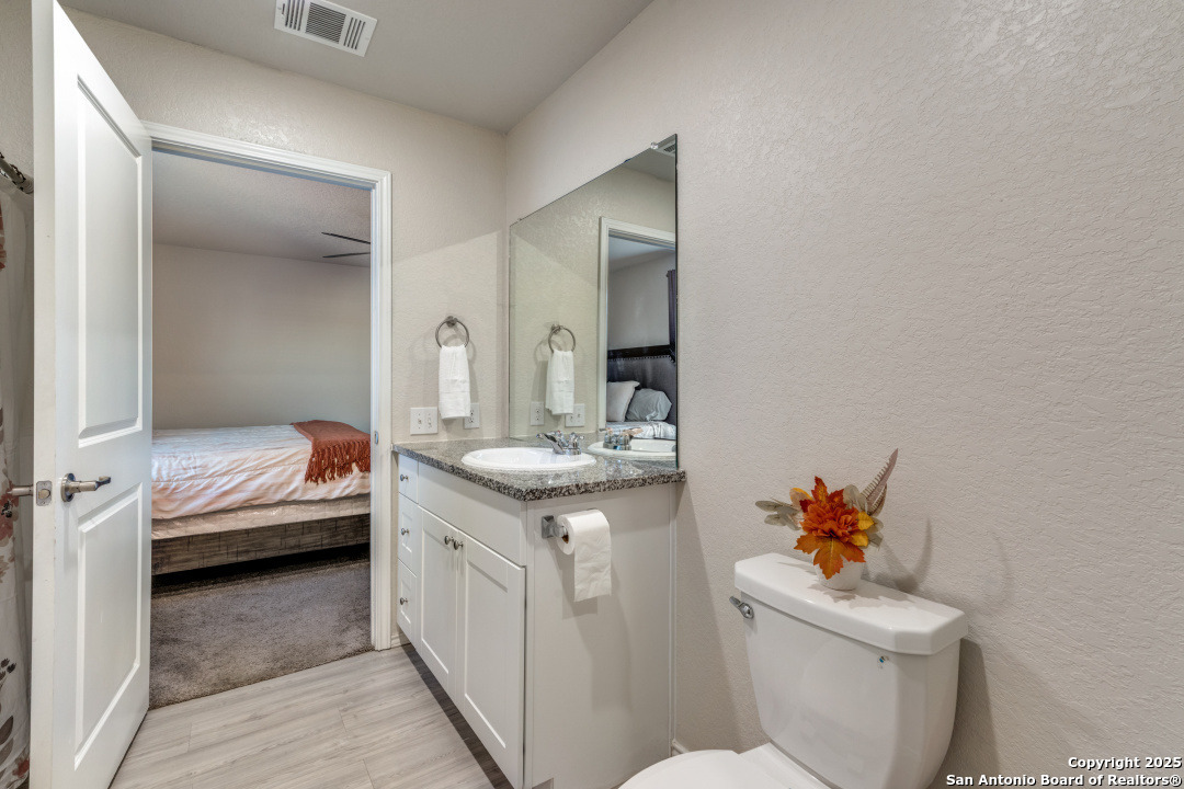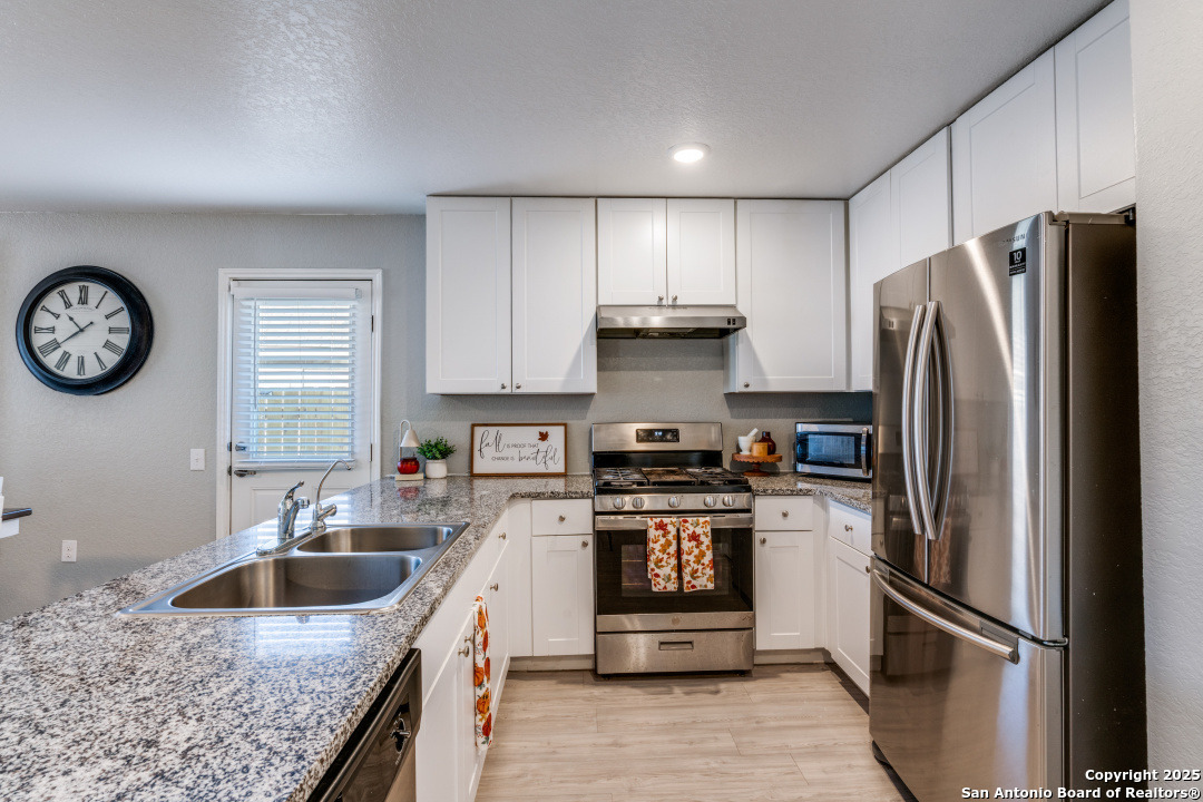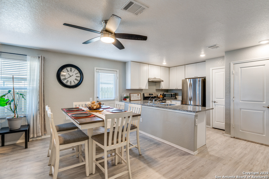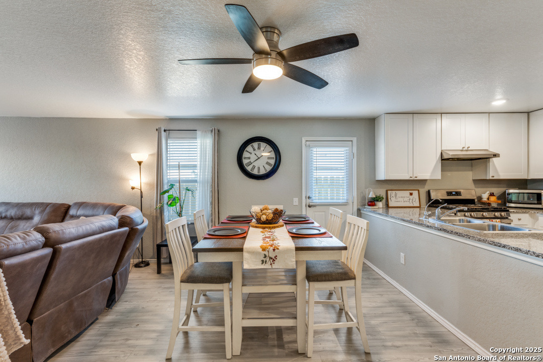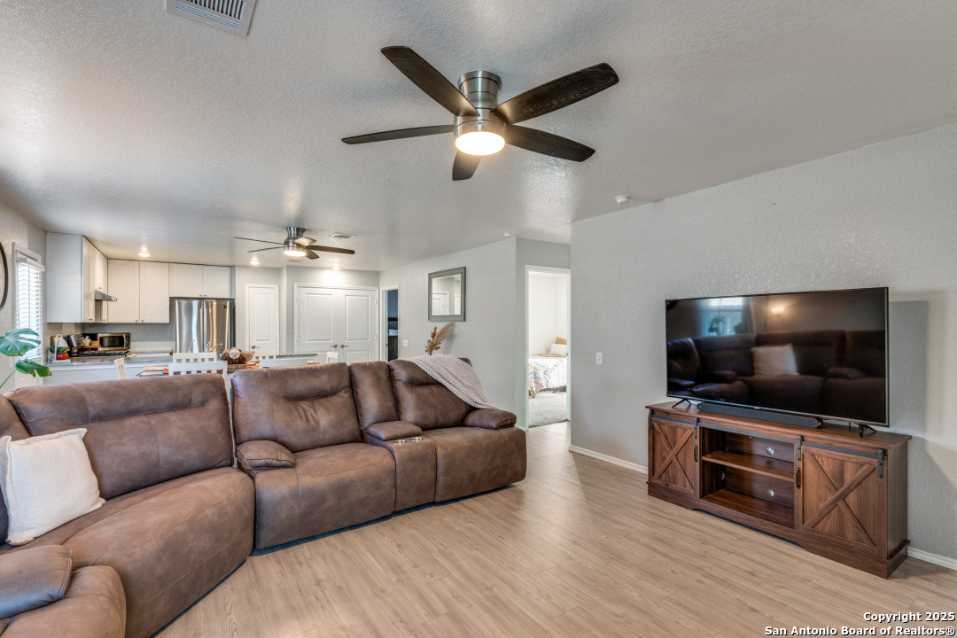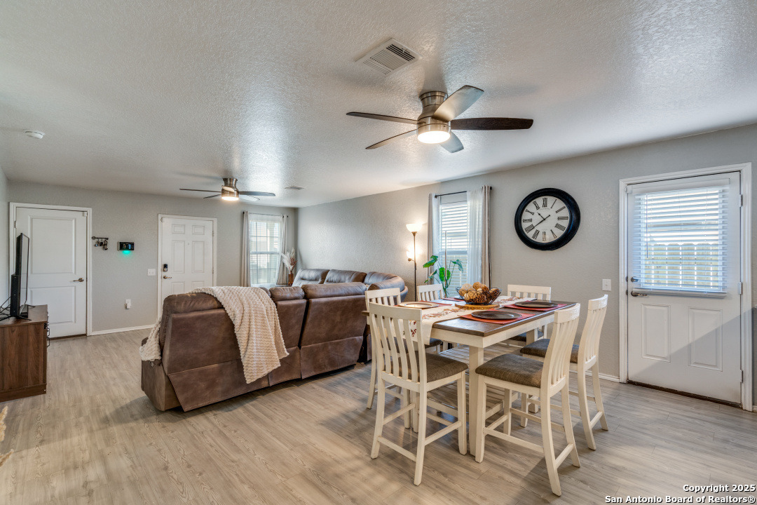 Seller is offering $5,000 BUYER INCENTIVES-an excellent opportunity to reduce closing costs or buy down your rate. Like-new and move-in ready, this beautifully maintained 3-bedroom, 2-bath home (built in 2020) offers modern comfort, energy efficiency, and a highly functional open-concept layout. The bright kitchen features stainless steel appliances, gas cooking, and granite countertops that opens into the dining and living areas-ideal for everyday living. The private primary suite is located in the back of the home and includes a spacious walk-in closet and full ensuite bath. Bedrooms 2 and 3 are comfortably sized and share a clean second full bath. A two-car garage and interior laundry room add convenience and storage. Energy-efficient features include fully paid-off solar panels and a tankless gas water heater, providing lower utility costs and long-term savings. All appliances convey, making this home truly move-in ready. Located in a community with a pool and park, and offering quick access to JBSA Lackland, Kelly, Brooks City Base, Palo Alto College, Texas A&M-San Antonio, and Downtown. A clean, modern, low-maintenance home with exceptional value and a prime location.