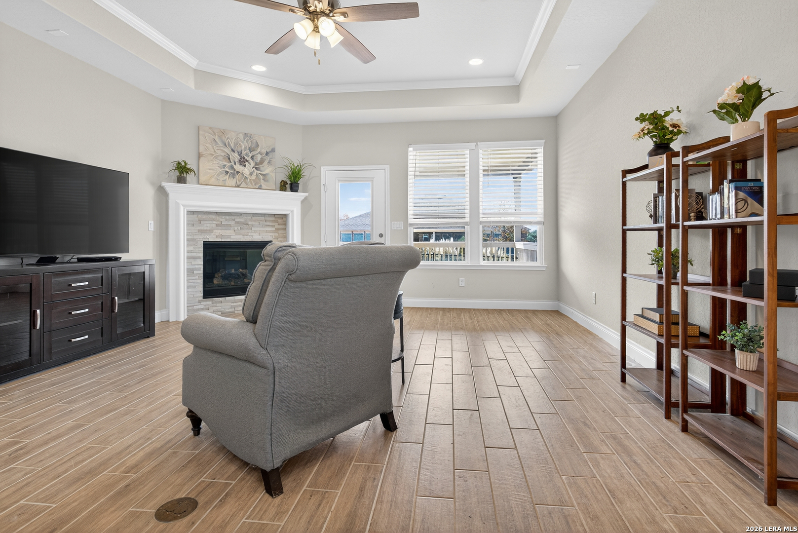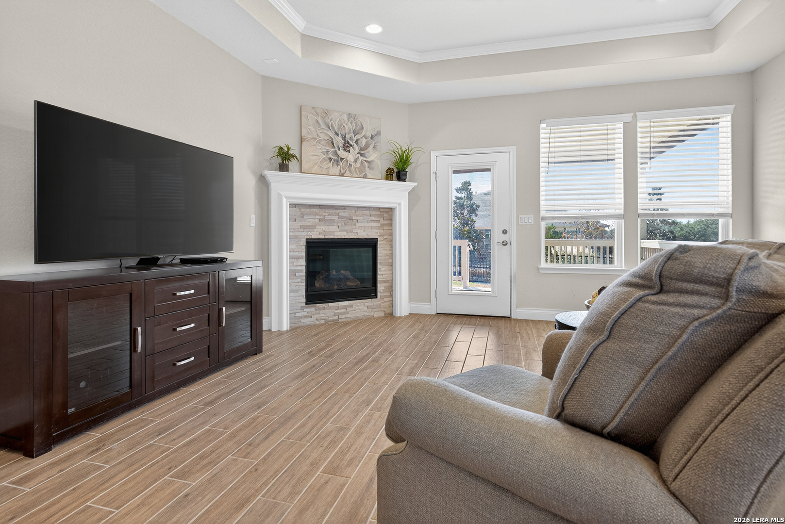 CUL-DE-SAC QUIET!! Welcome to peaceful, easy living in the highly sought-after Del Webb 55+ community-where privacy and comfort truly shine. Ideally positioned on a premium cul-de-sac lot with beautiful Hill Country views, this meticulously maintained single-story home offers the quiet retreat so many buyers are searching for. With 2 bedrooms, 2 baths, and a dedicated office, the flexible layout provides space for guests, hobbies, or a comfortable work-from-home setup. The gourmet kitchen features granite countertops, gas cooking, and a butler's pantry, opening to a light-filled living area with high ceilings and a cozy gas fireplace-perfect for relaxing evenings. The spacious primary suite offers a private escape with a well-appointed ensuite bath designed for comfort and ease. Step outside to enjoy your private backyard with custom iron fencing and patio shades-ideal for morning coffee or peaceful sunsets. Enjoy the "lock and leave" lifestyle plus resort-style amenities including pools, a fitness center, and daily activities-all in a quiet cul-de-sac setting designed for relaxed retirement living. SEE THIS ONE TODAY!!