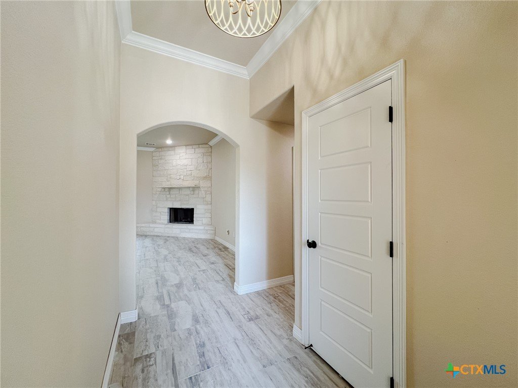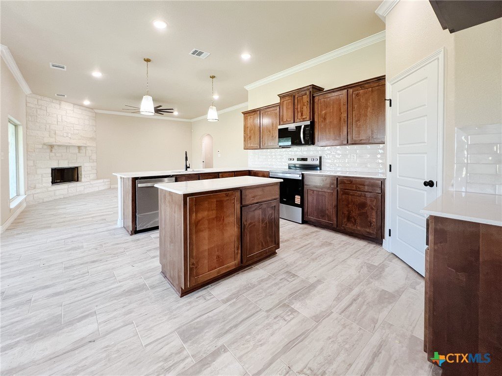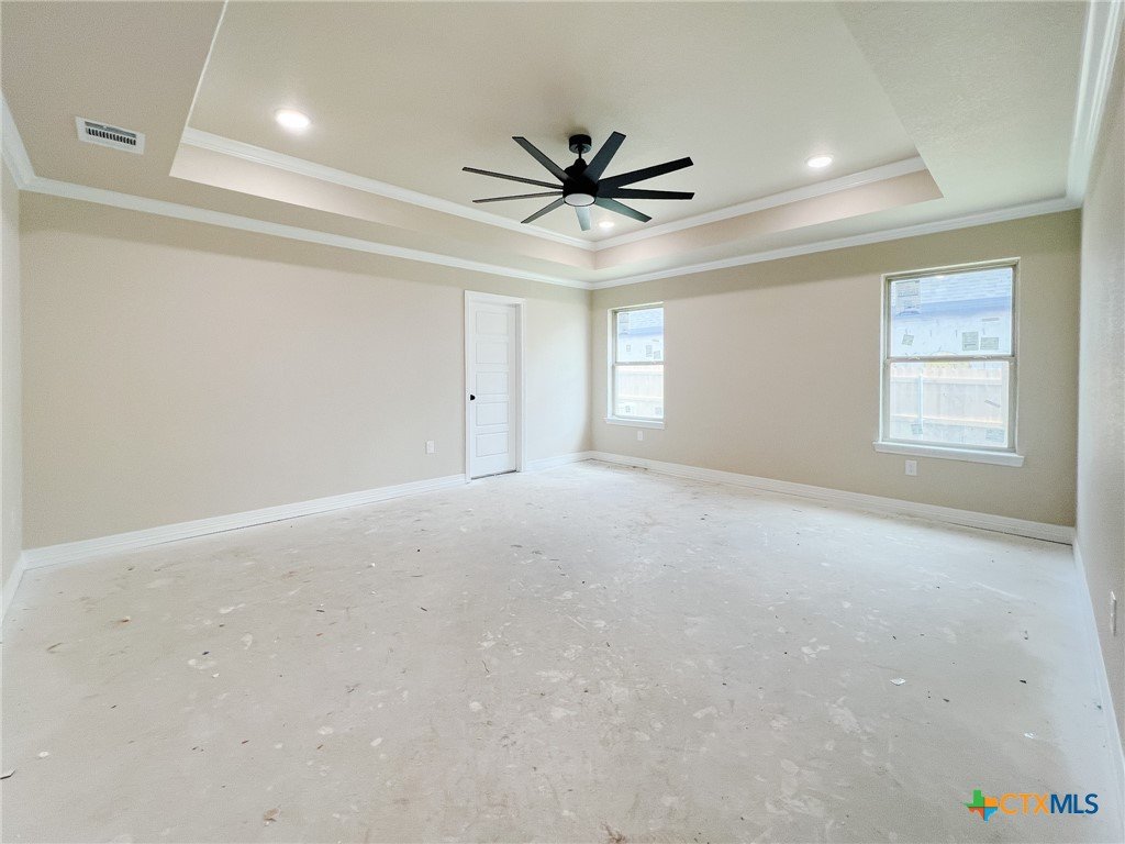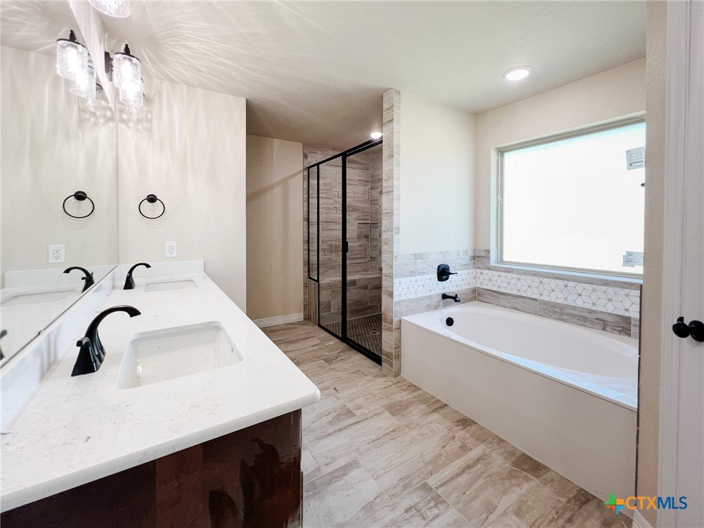 The Cozumel plan offers a welcoming 2,134 sq ft of thoughtfully designed space. This 4BR/2.5BA home is perfect for families who cherish intimate settings and refined elegance. The inviting living area features a majestic stone fireplace that creates a warm ambiance, while a large picture window offers tranquil views of the fenced backyard. The gourmet kitchen, a centerpiece of the home, is equipped with modern appliances and exquisite cabinetry, providing a perfect space for culinary adventures and gatherings. The dining area opens to a covered patio, ideal for alfresco dining. The owner’s suite serves as a serene retreat with a luxurious bath featuring a garden tub, a separate tile shower, and a generous walk-in closet.